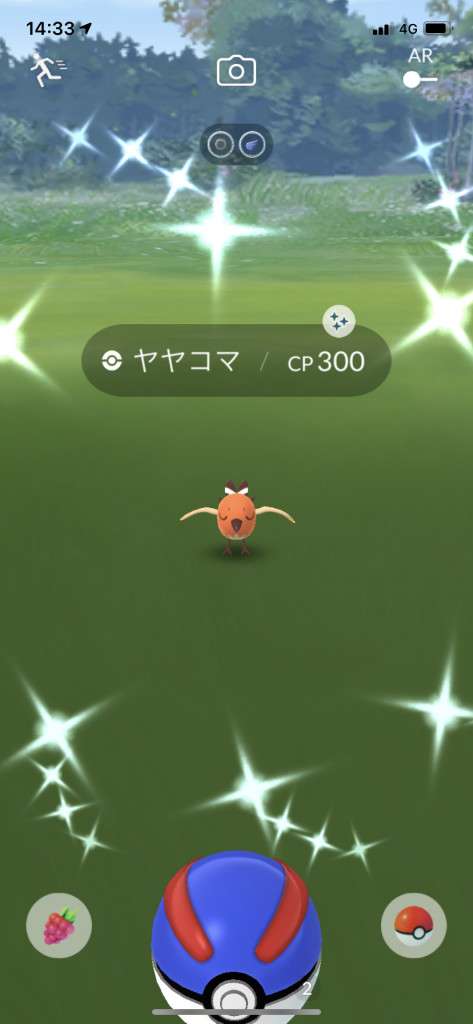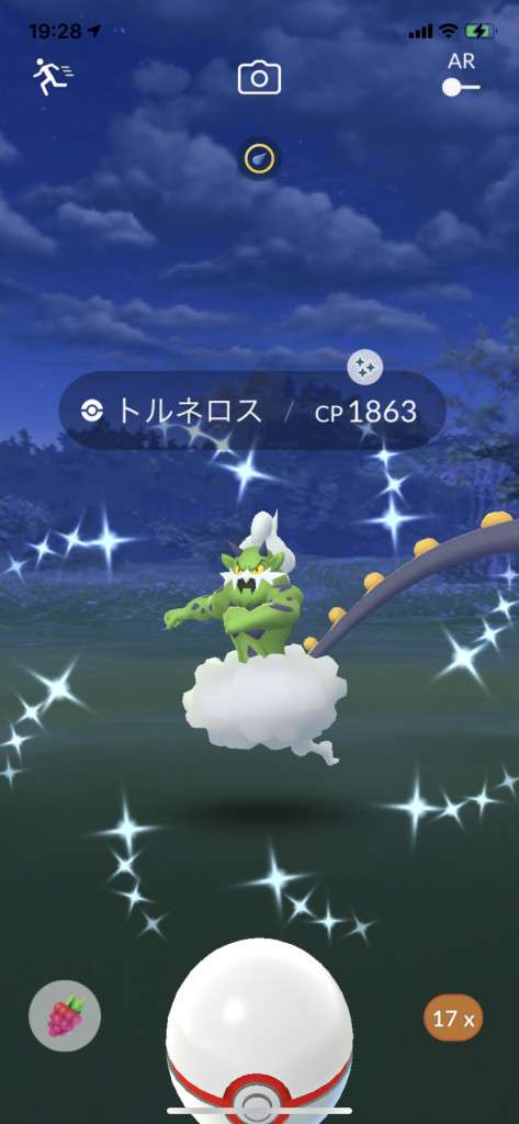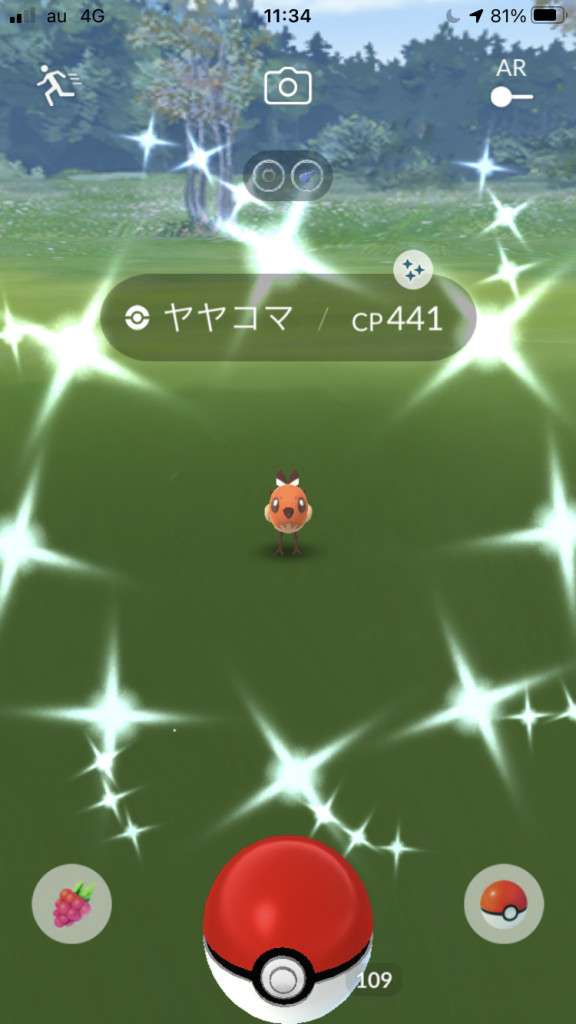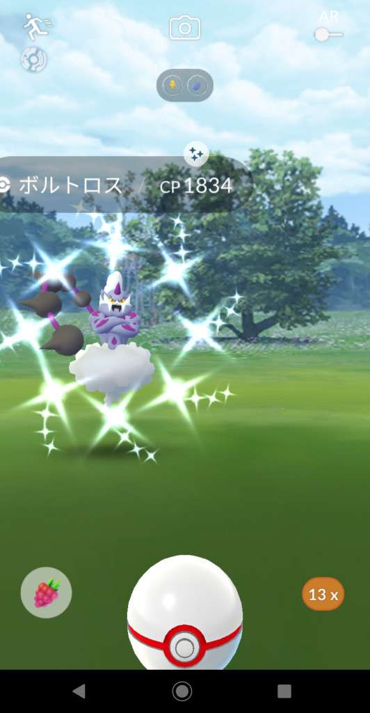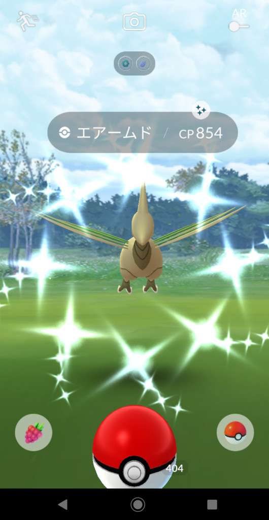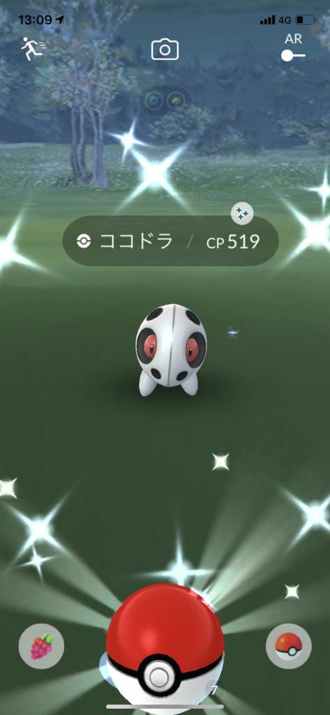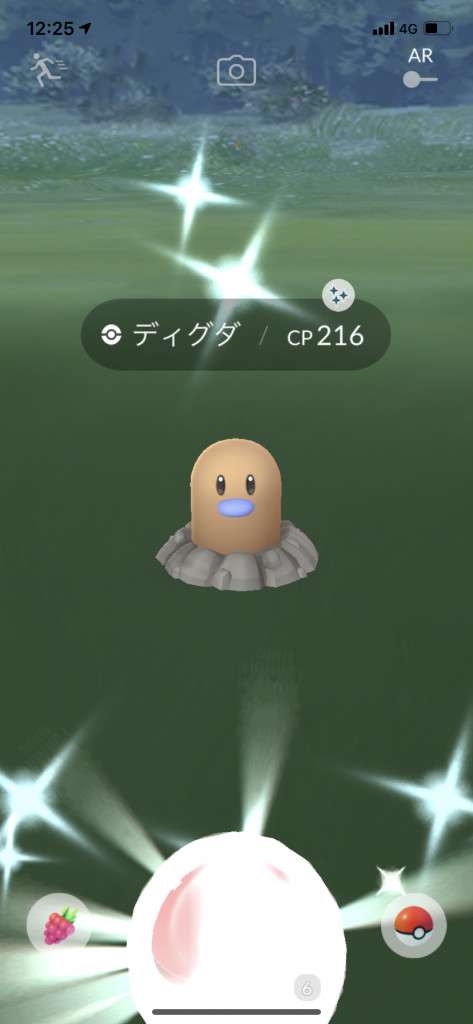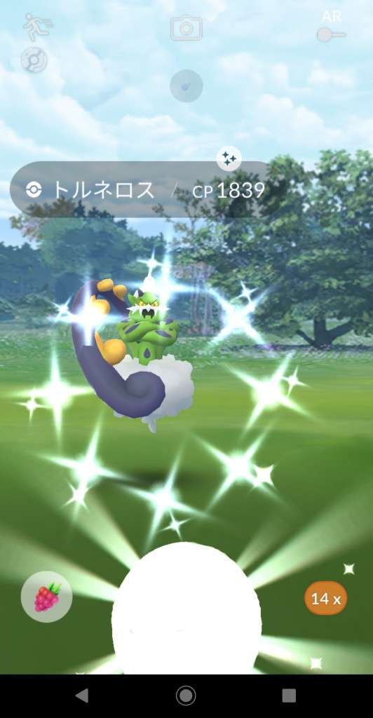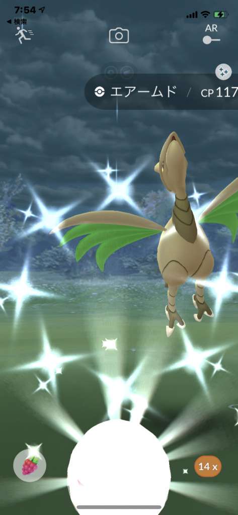 ・色違い出現したら、右上「AR+」のON・OFF切り替えで、タイミング良く写るまで何回も挑戦
