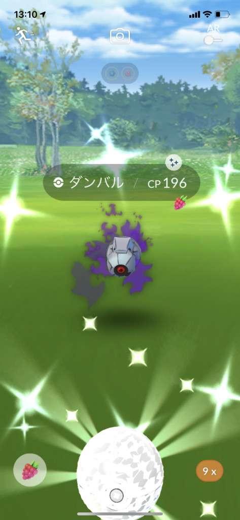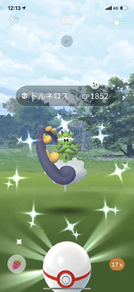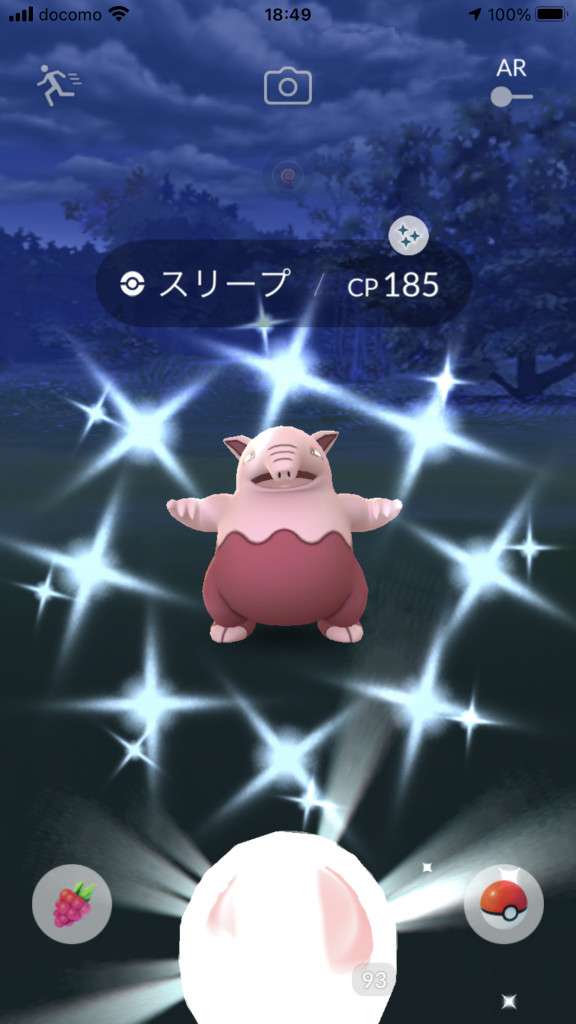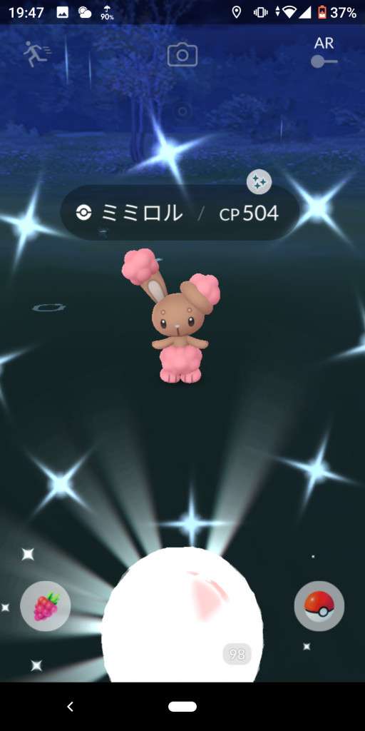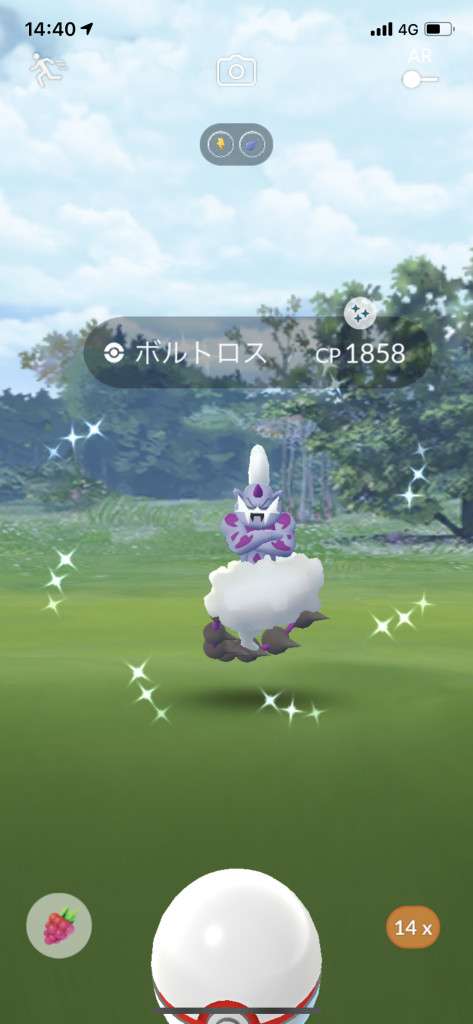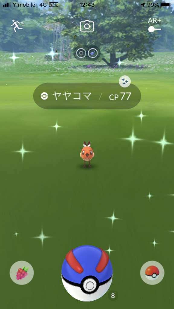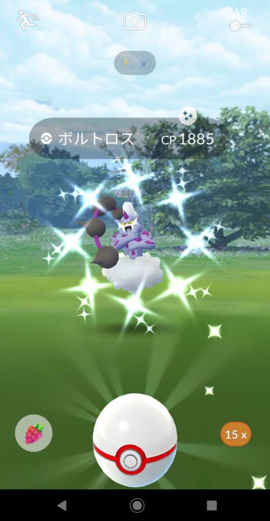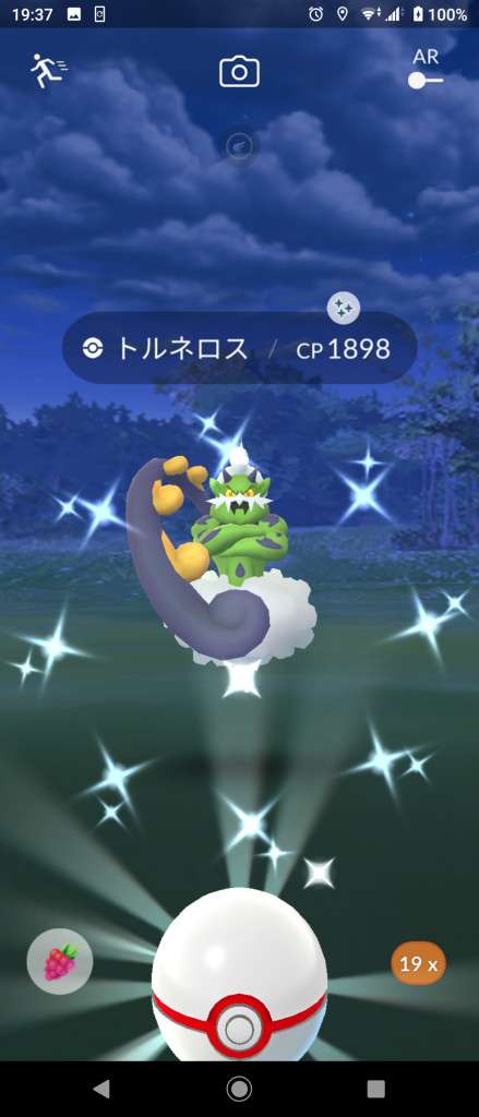 ・色違い出現したら、右上「AR+」のON・OFF切り替えで、タイミング良く写るまで何回も挑戦