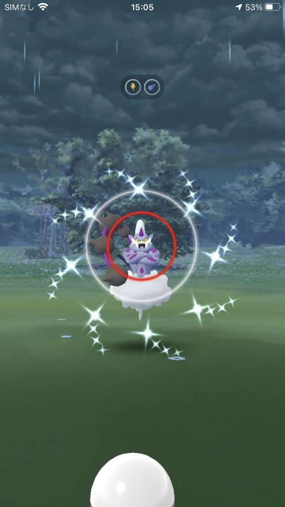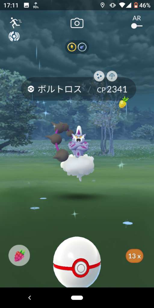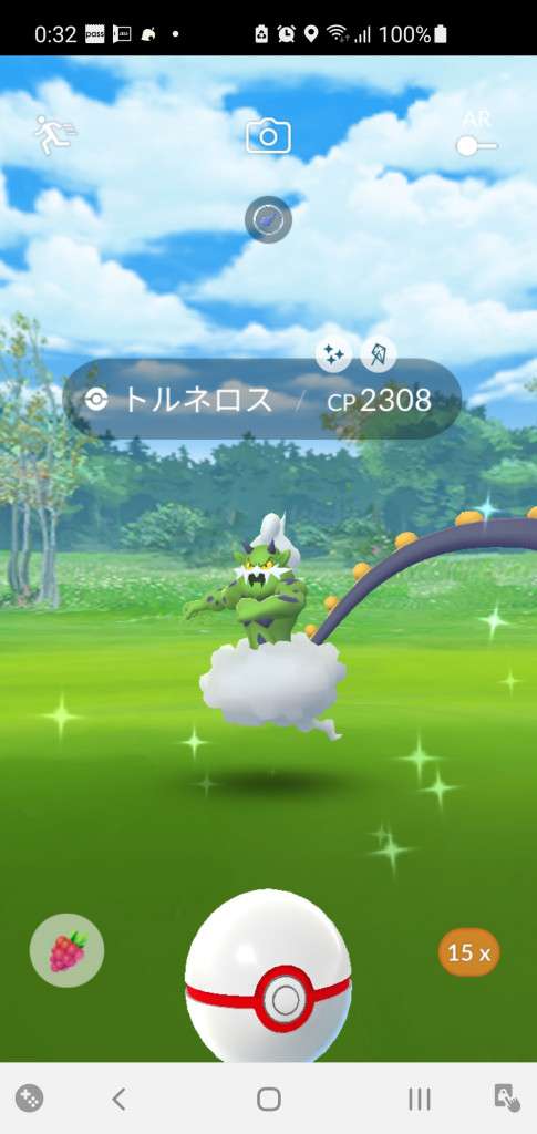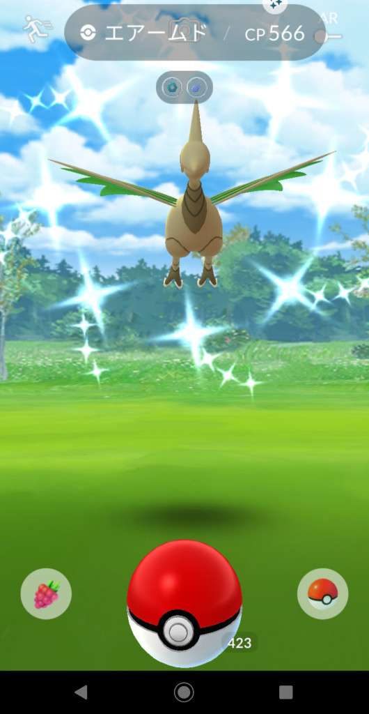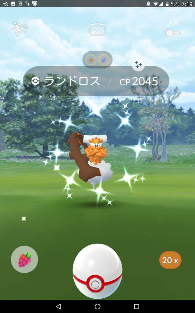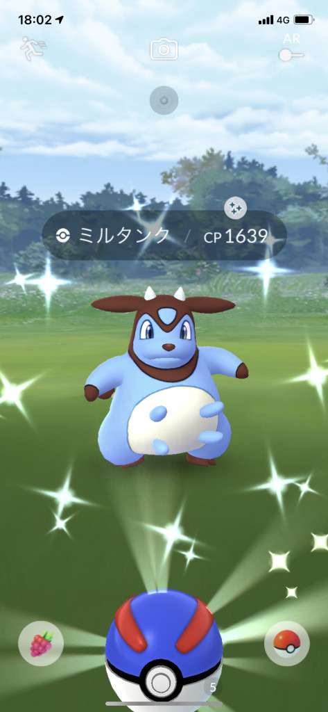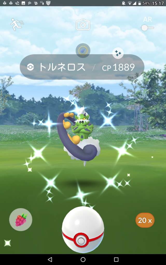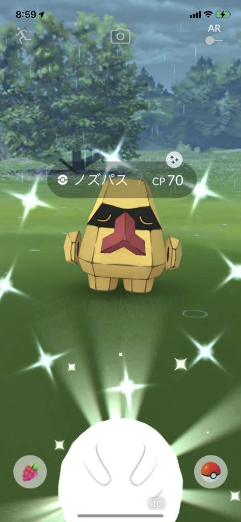 ・色違い出現したら、右上「AR+」のON・OFF切り替えで、タイミング良く写るまで何回も挑戦