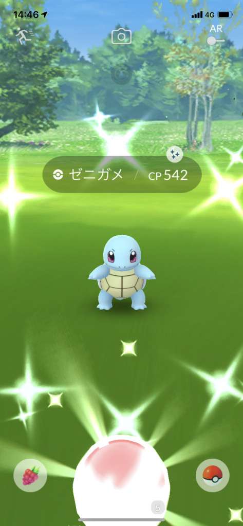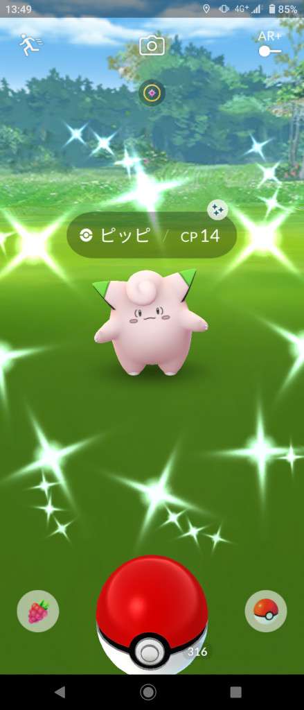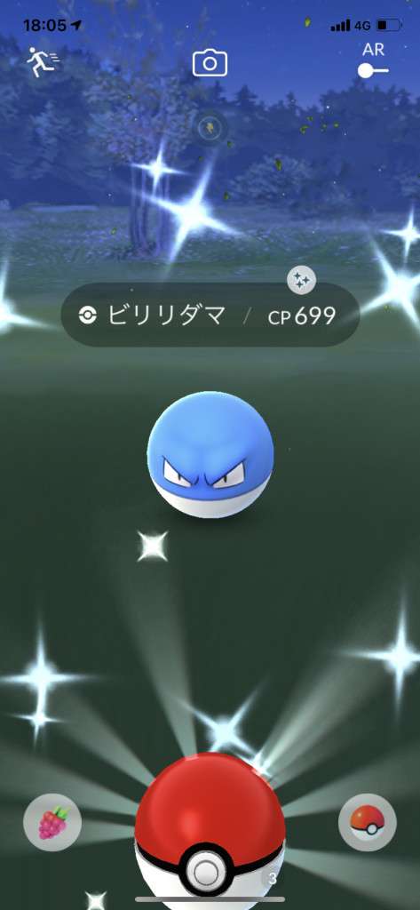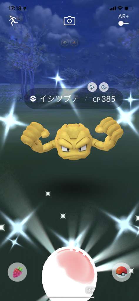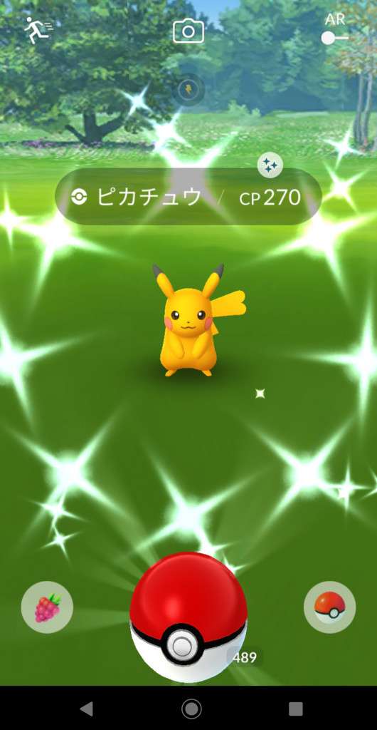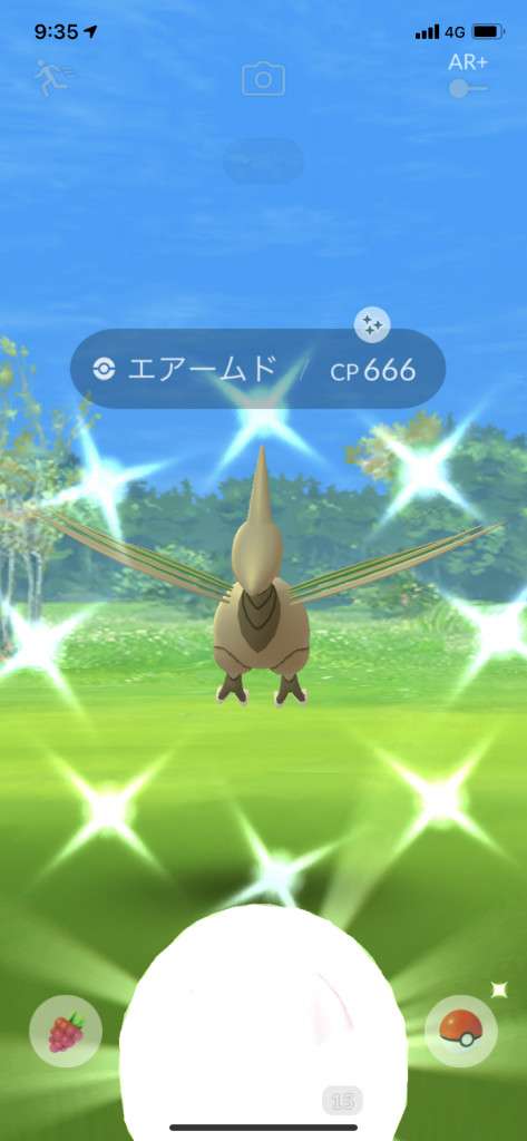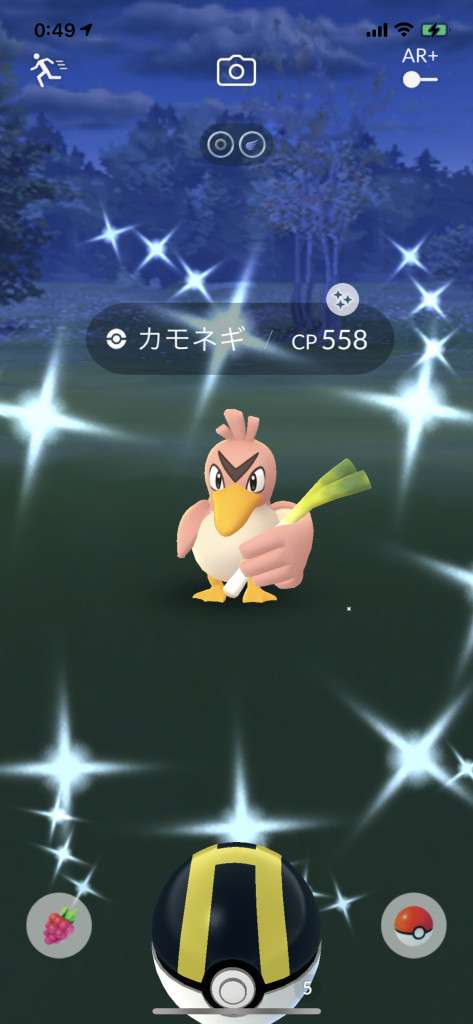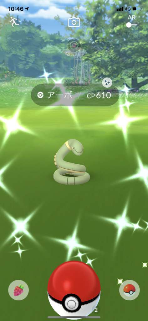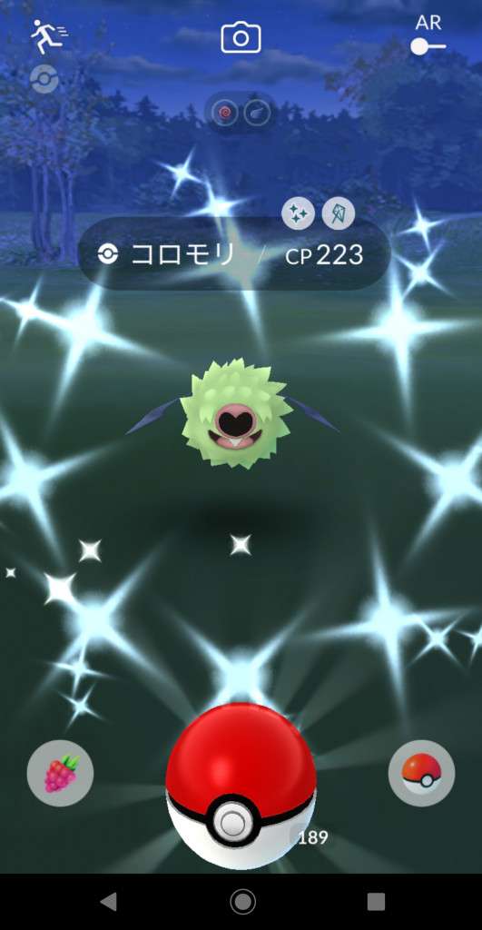 ・色違い出現したら、右上「AR+」のON・OFF切り替えで、タイミング良く写るまで何回も挑戦