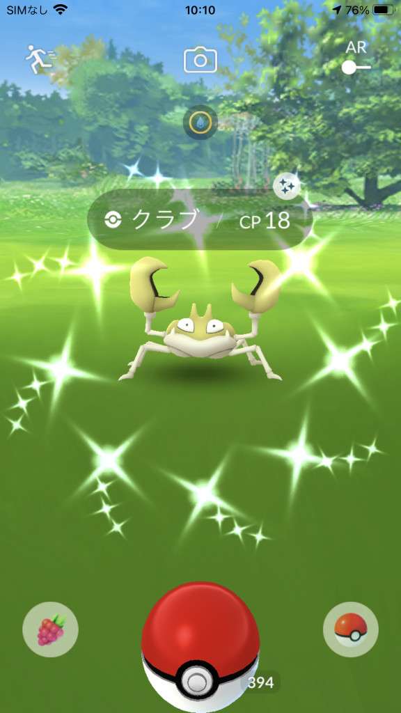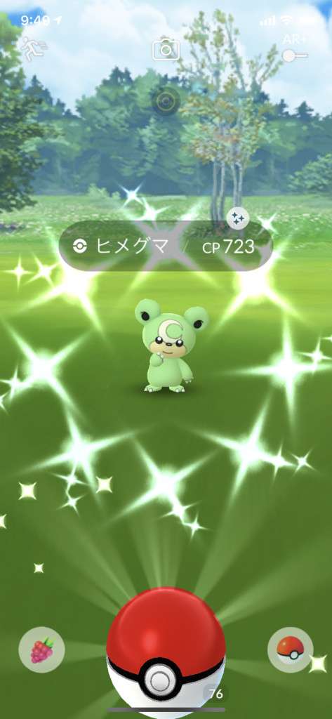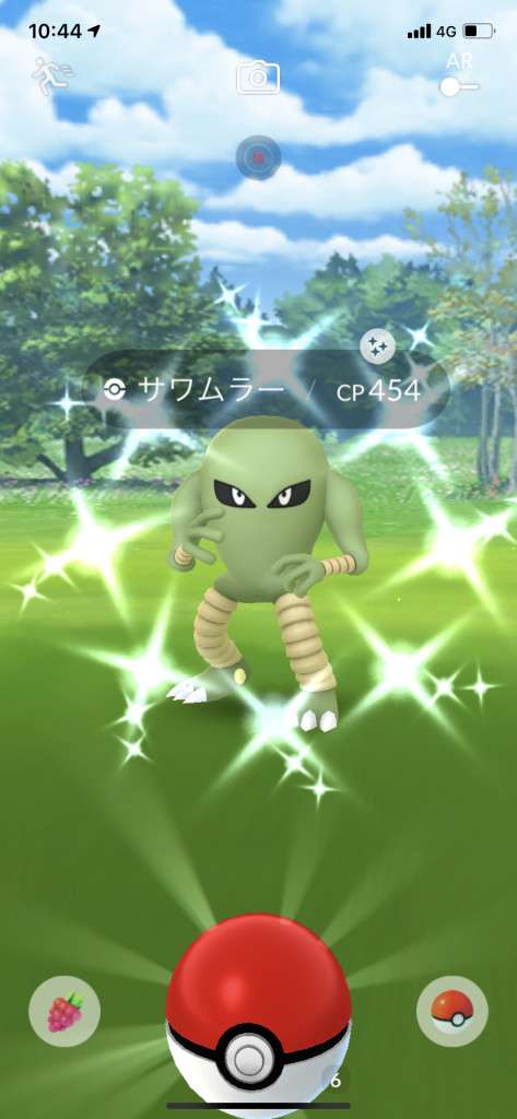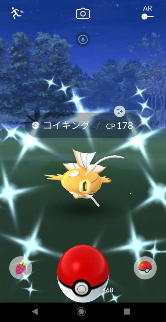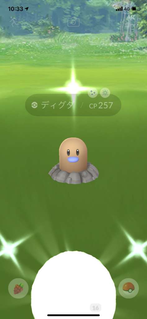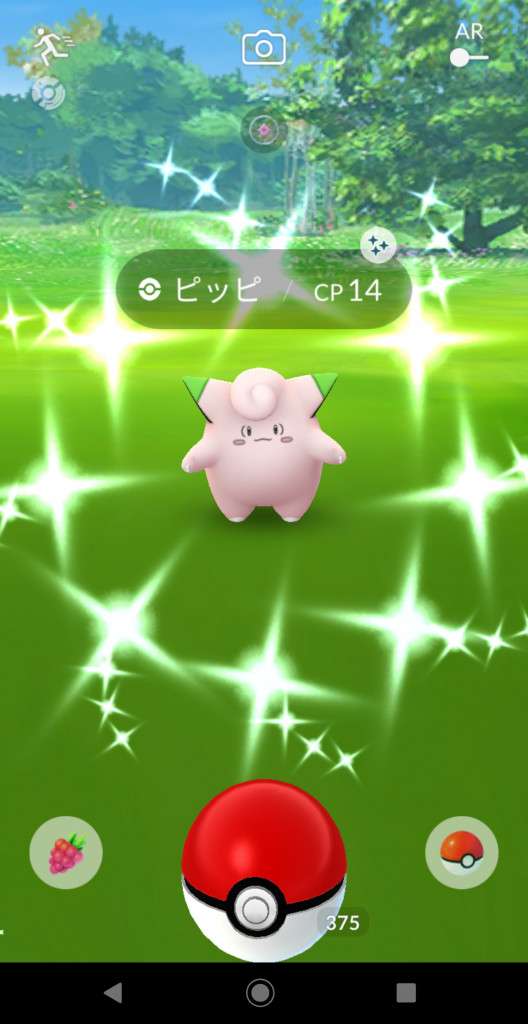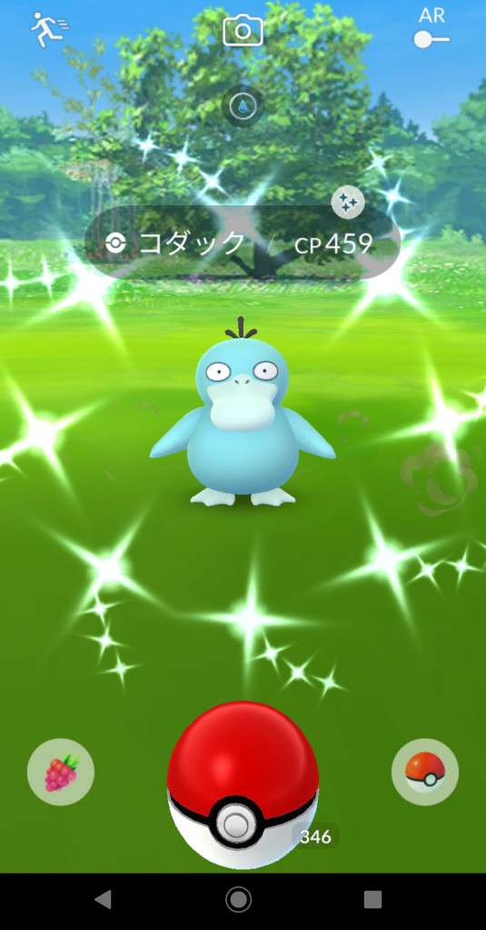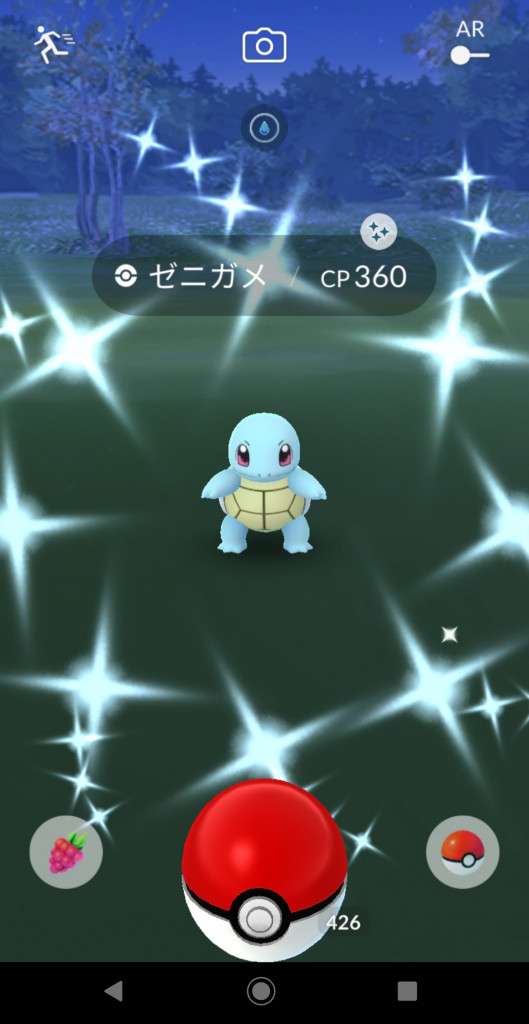 ・色違い出現したら、右上「AR+」のON・OFF切り替えで、タイミング良く写るまで何回も挑戦