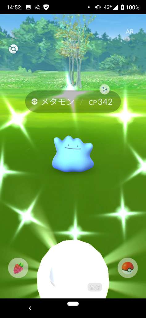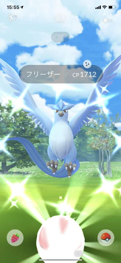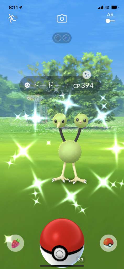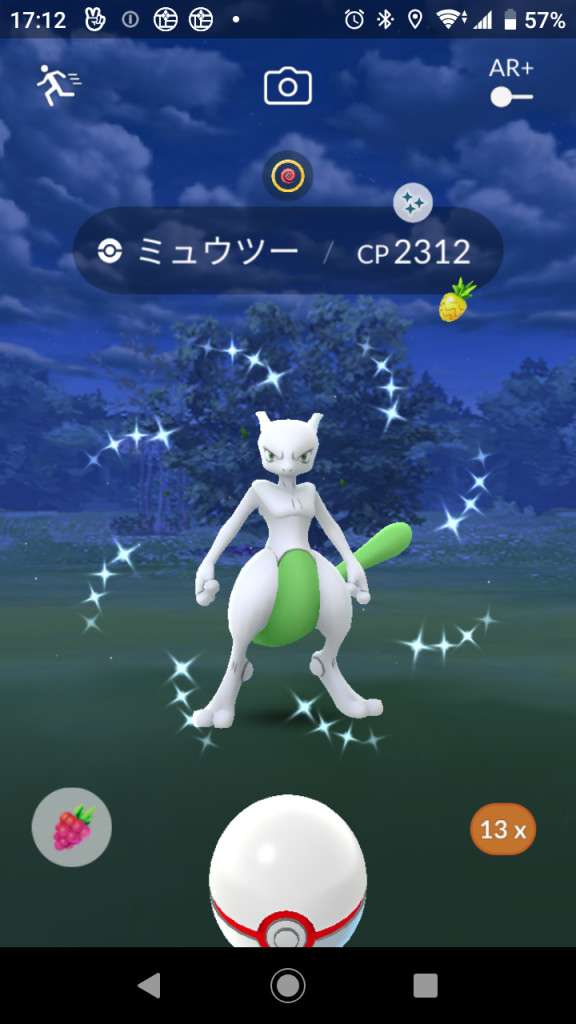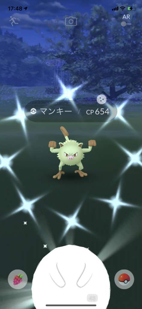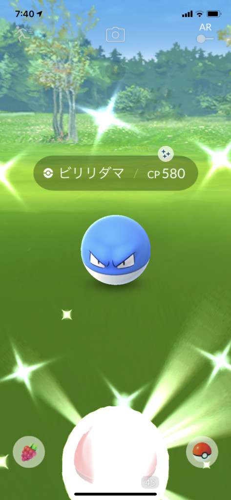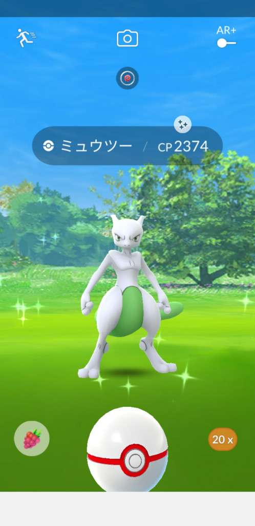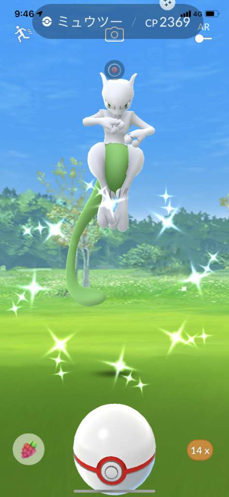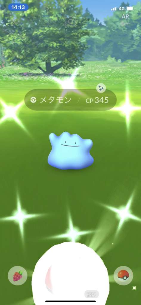 ・色違い出現したら、右上「AR+」のON・OFF切り替えで、タイミング良く写るまで何回も挑戦
