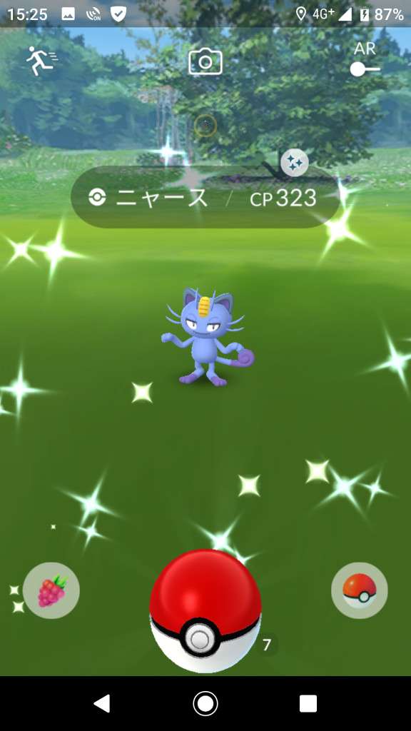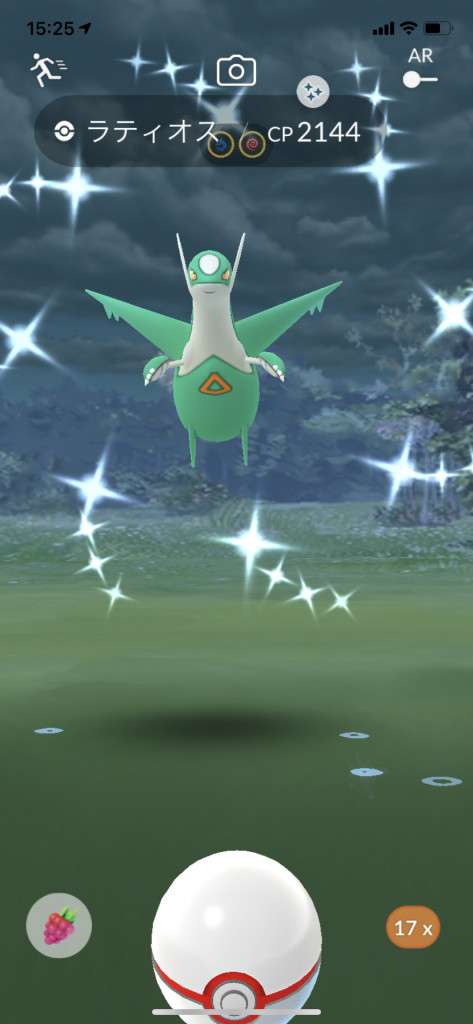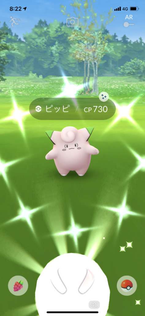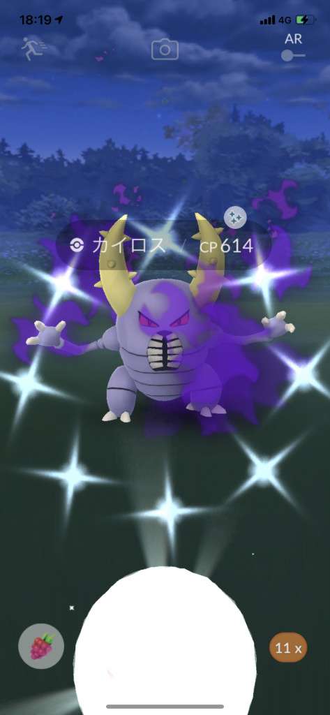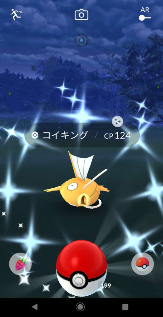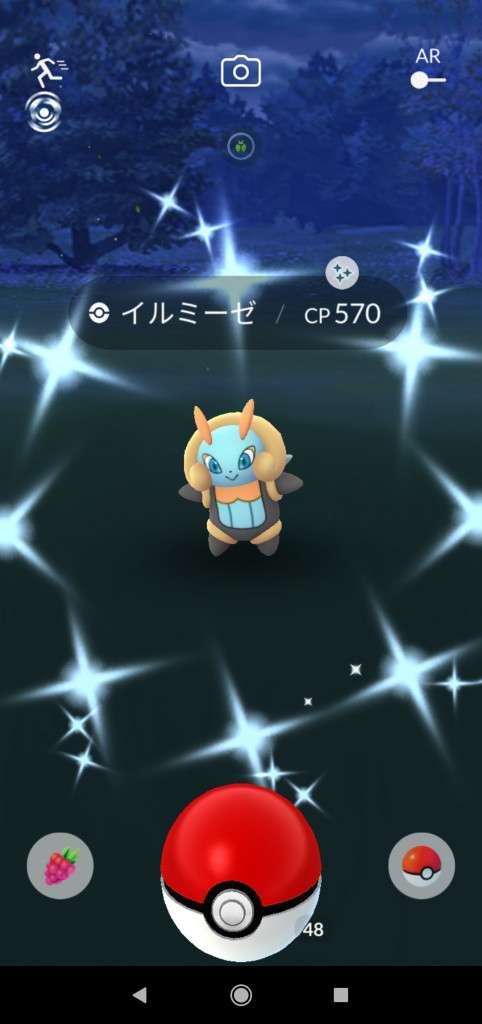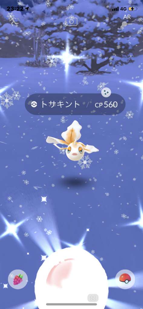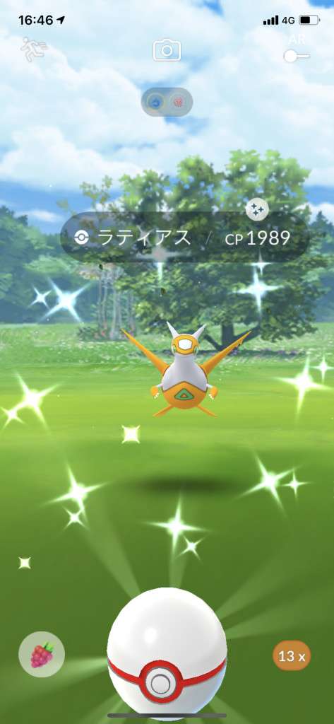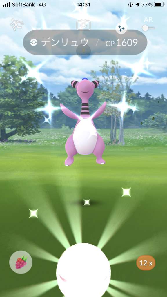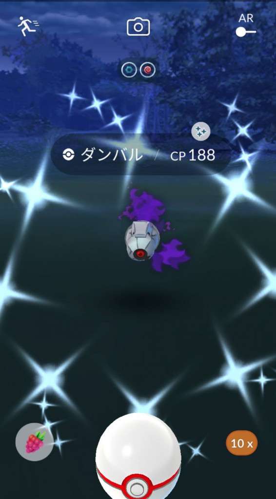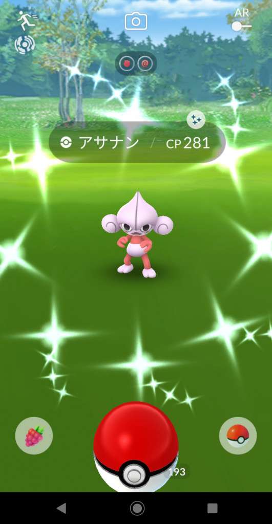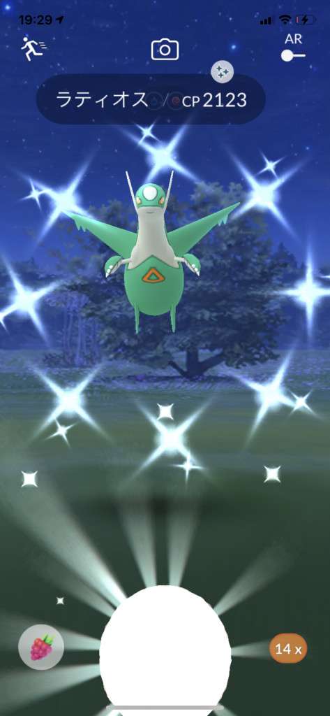 ・色違い出現したら、右上「AR+」のON・OFF切り替えで、タイミング良く写るまで何回も挑戦