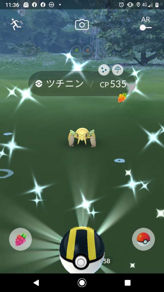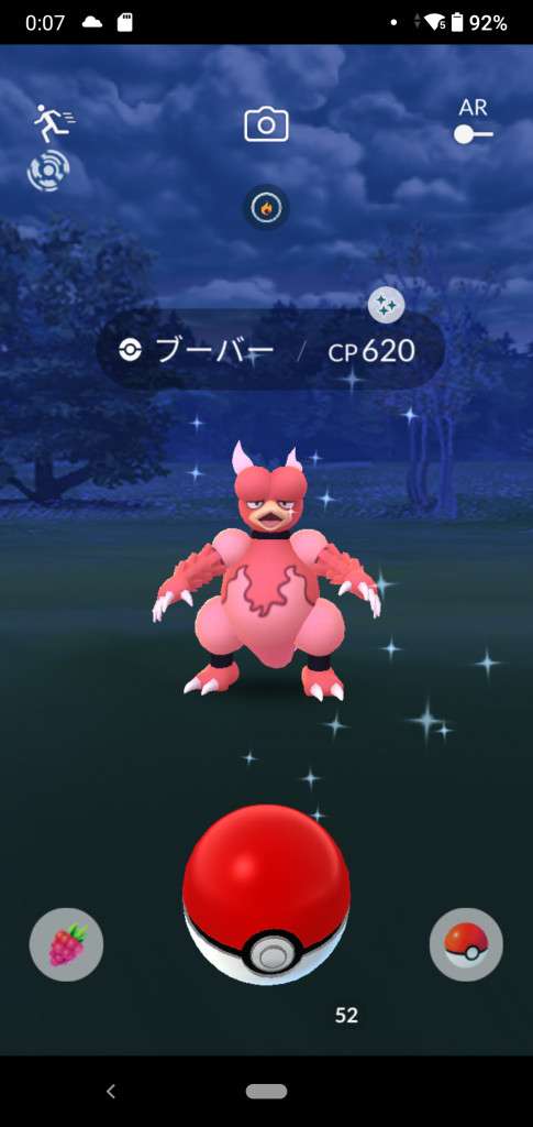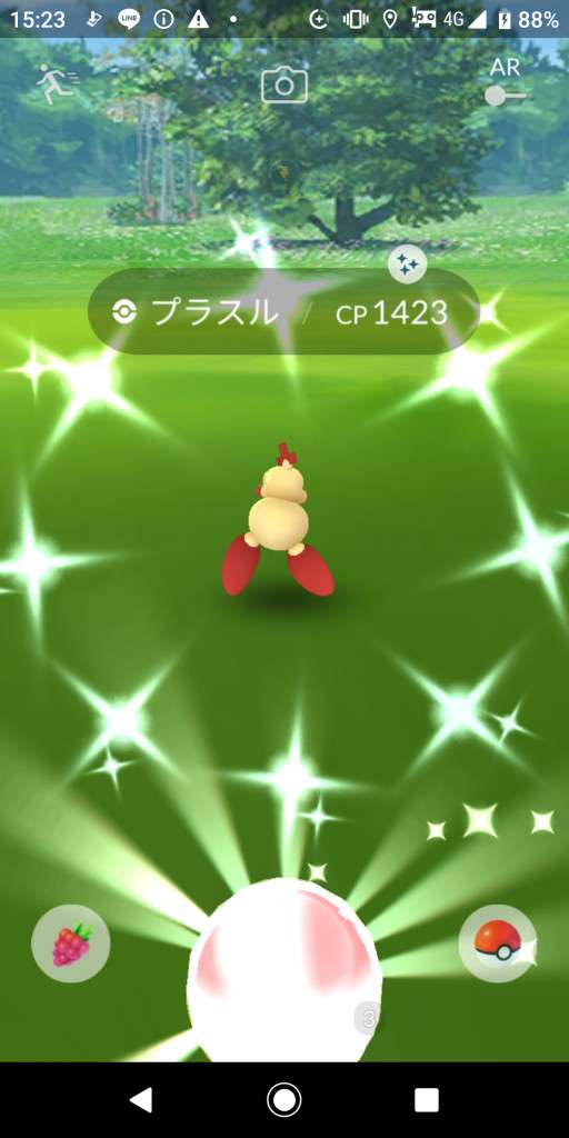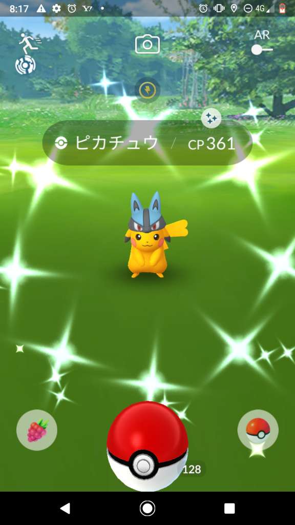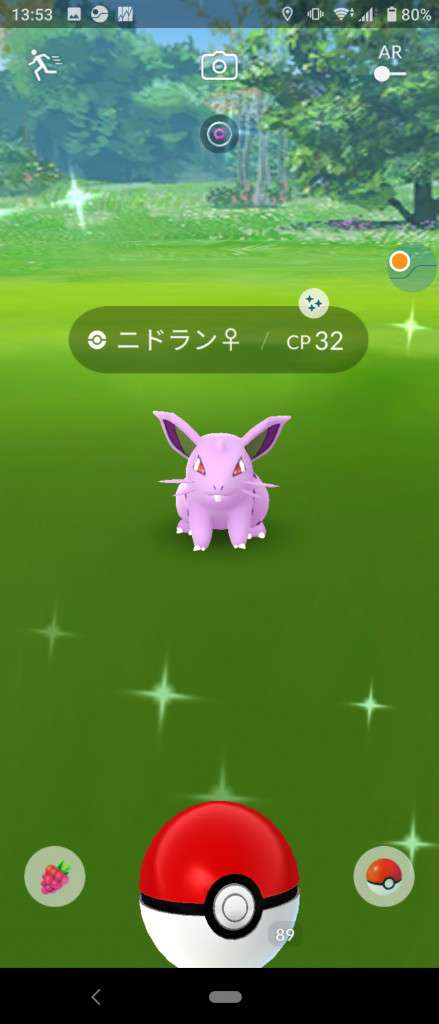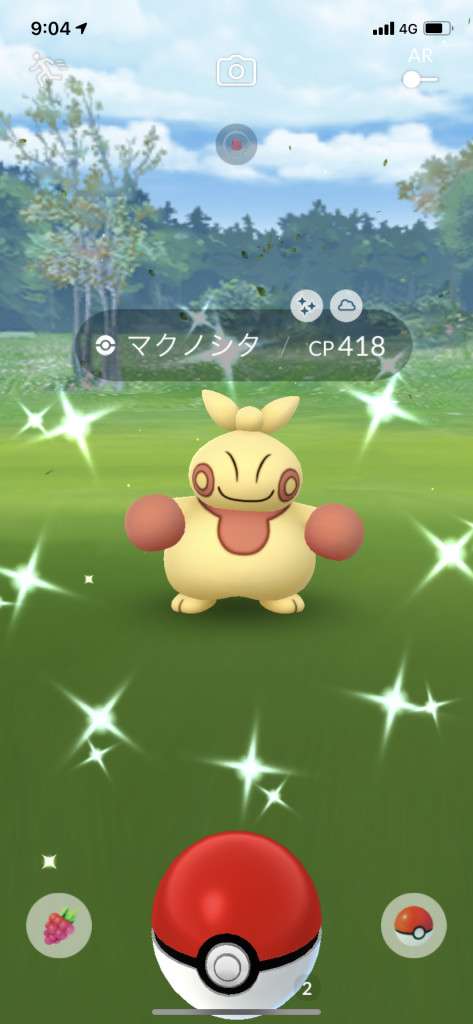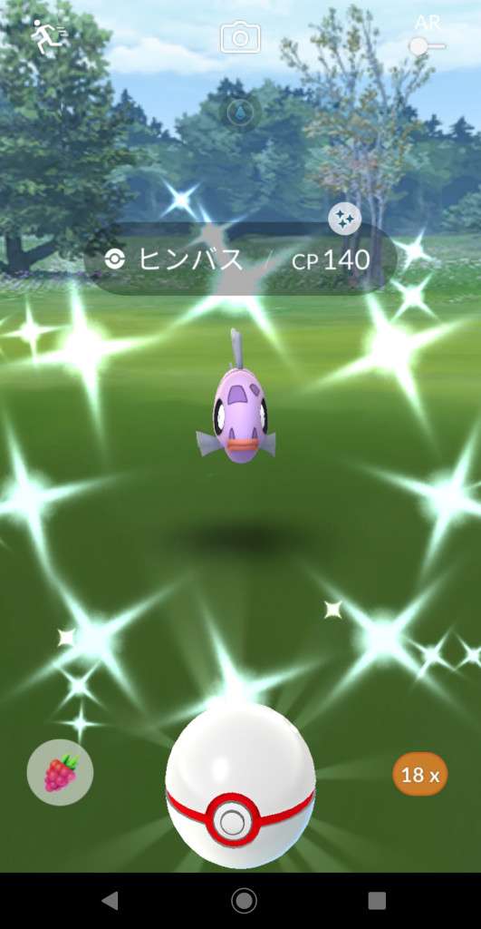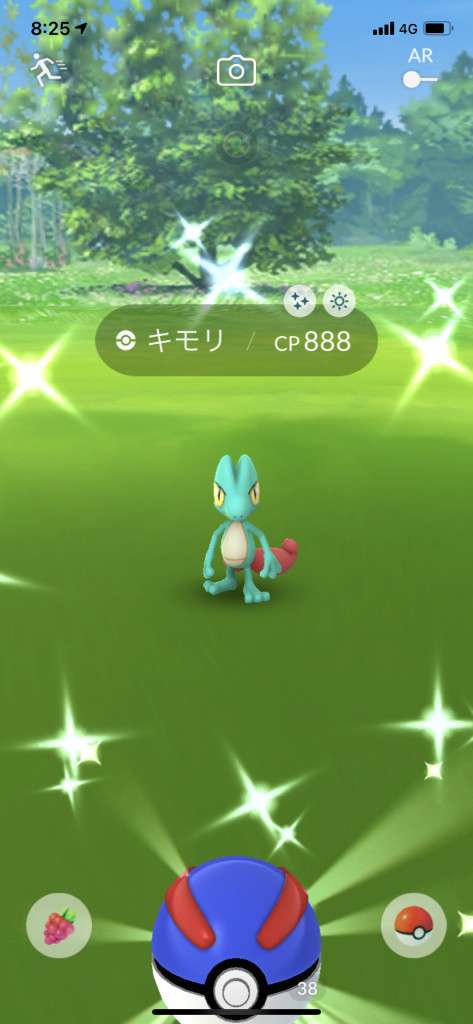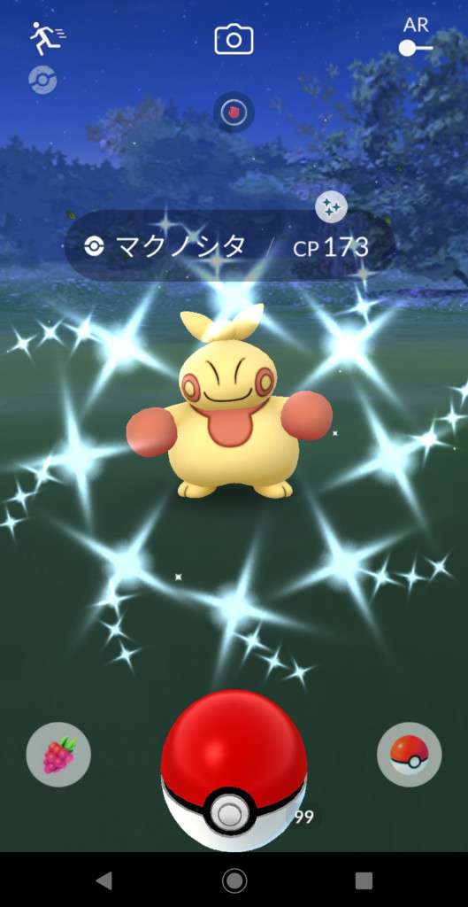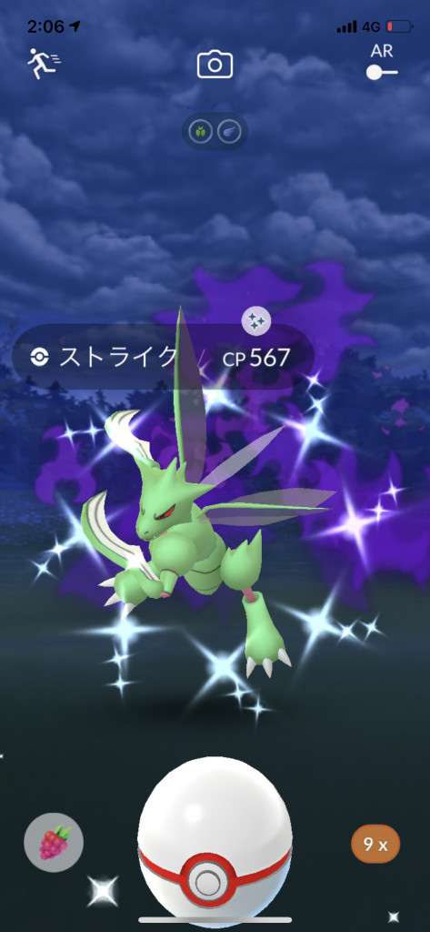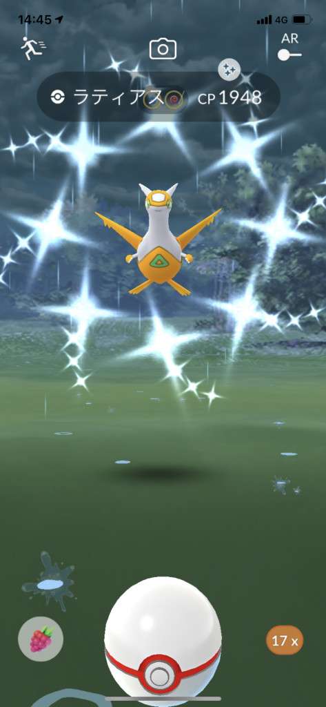 ・色違い出現したら、右上「AR+」のON・OFF切り替えで、タイミング良く写るまで何回も挑戦