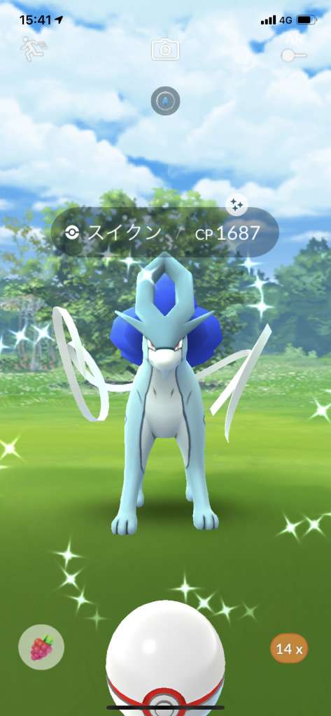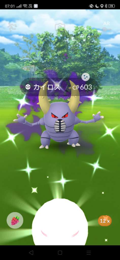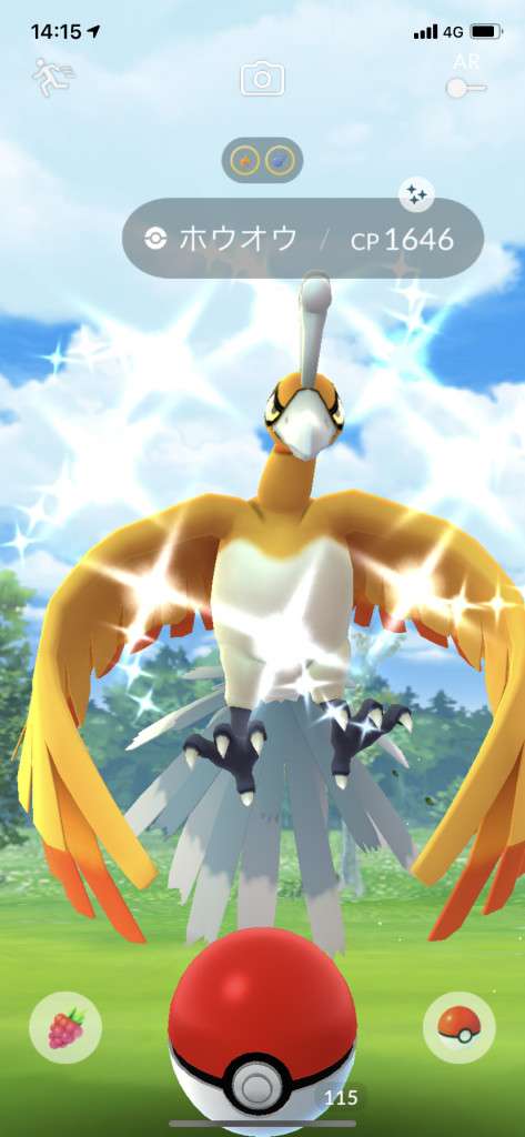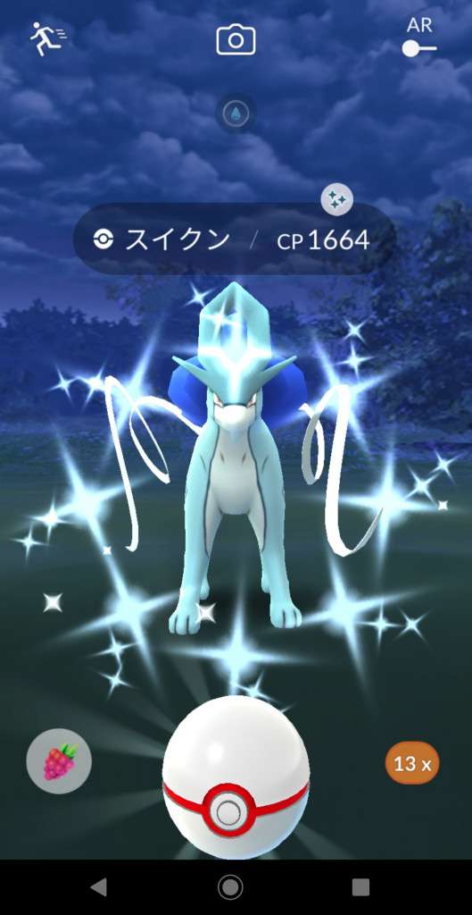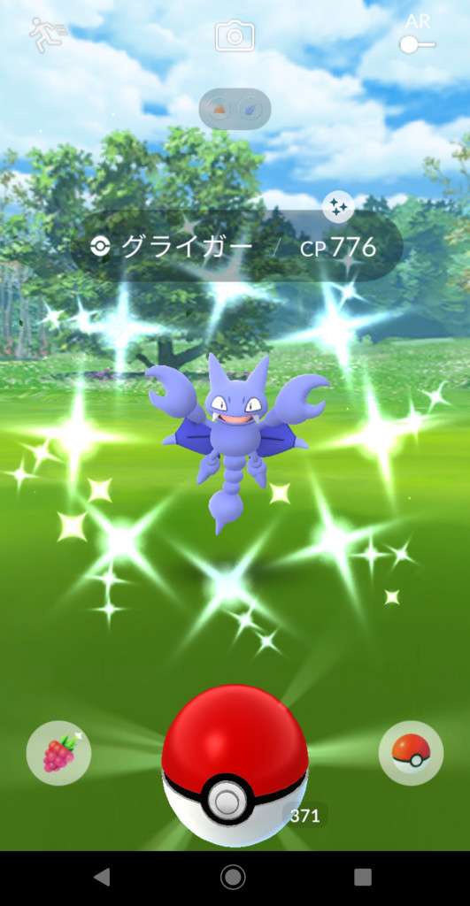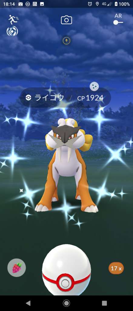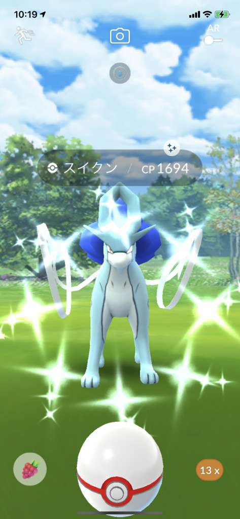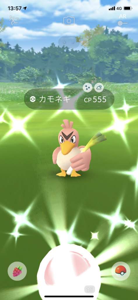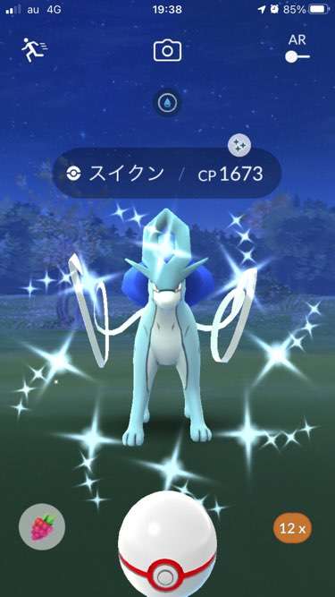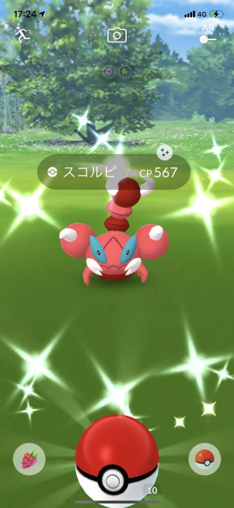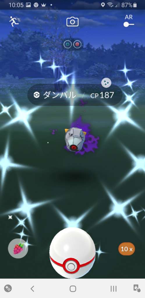 ・色違い出現したら、右上「AR+」のON・OFF切り替えで、タイミング良く写るまで何回も挑戦