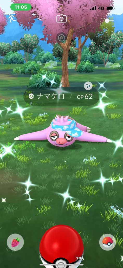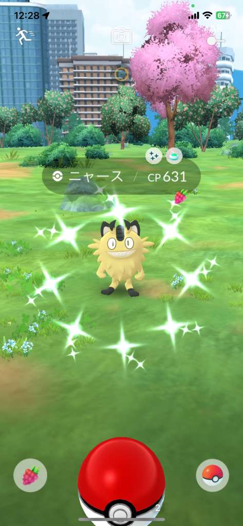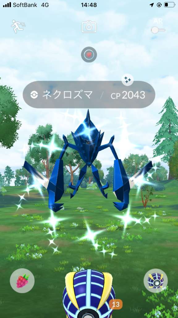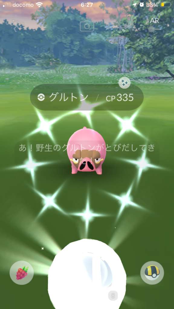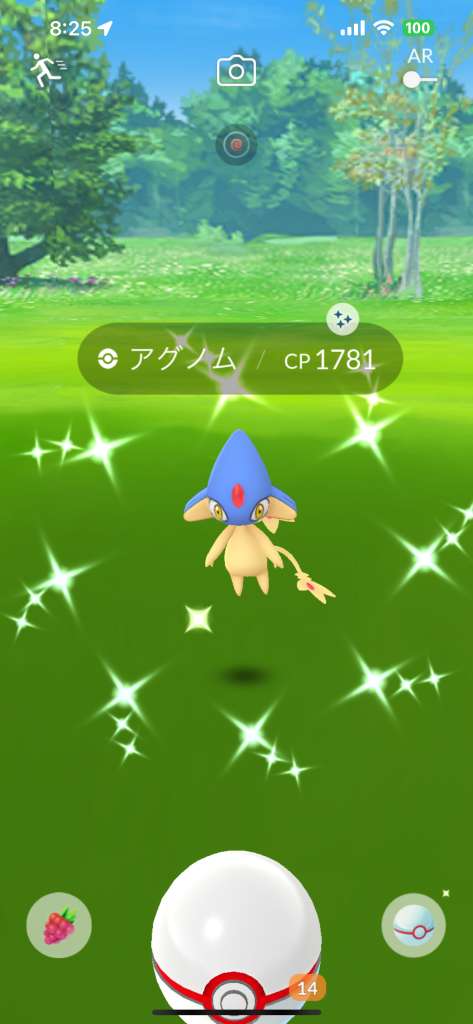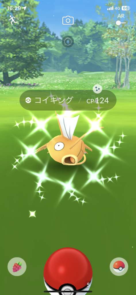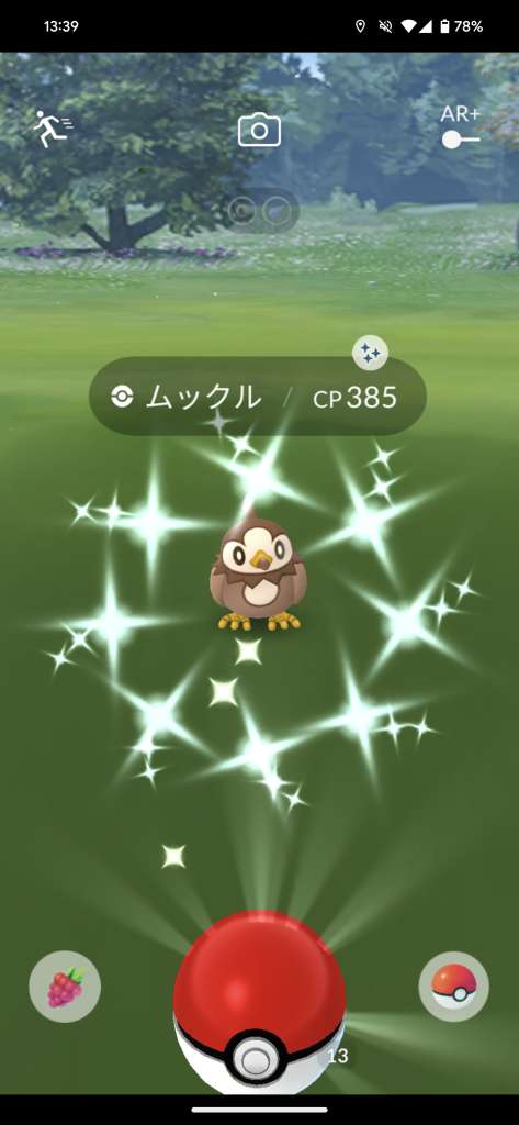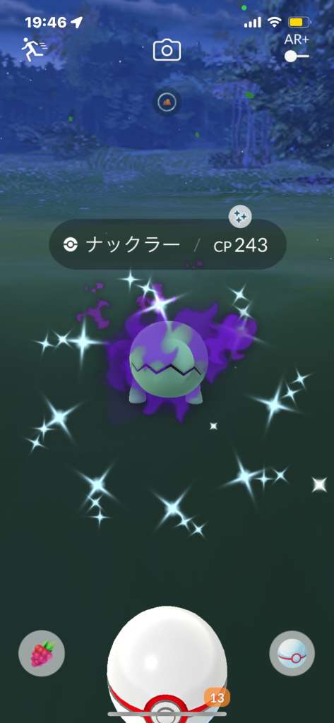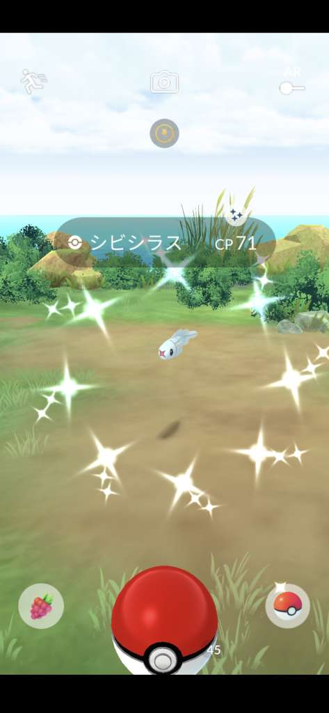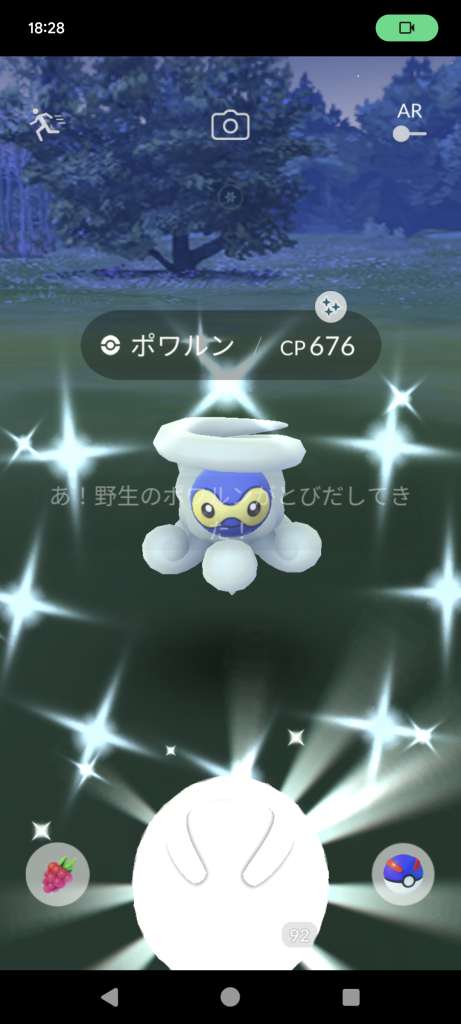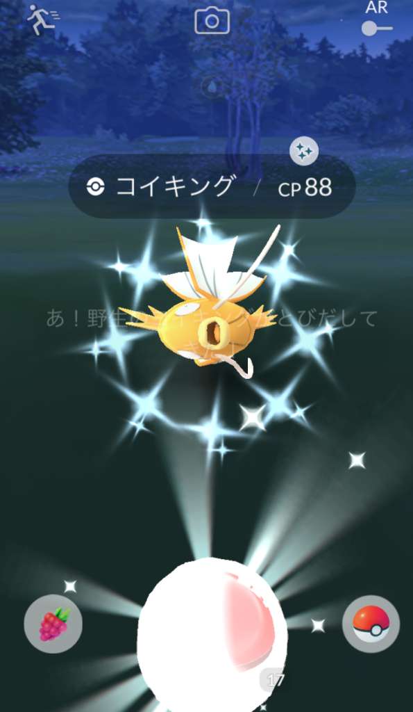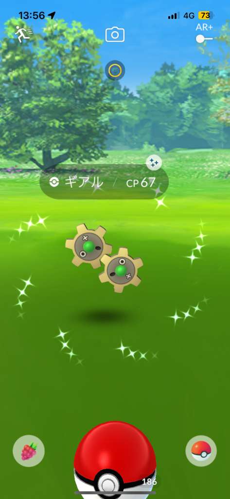 ・色違い出現したら、右上「AR+」のON・OFF切り替えで、タイミング良く写るまで何回も挑戦