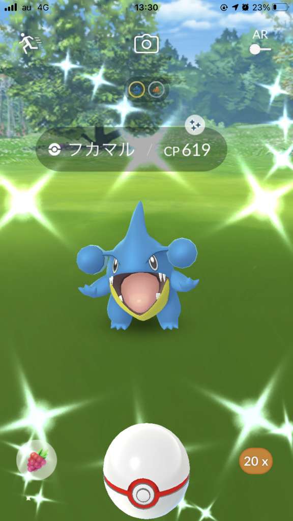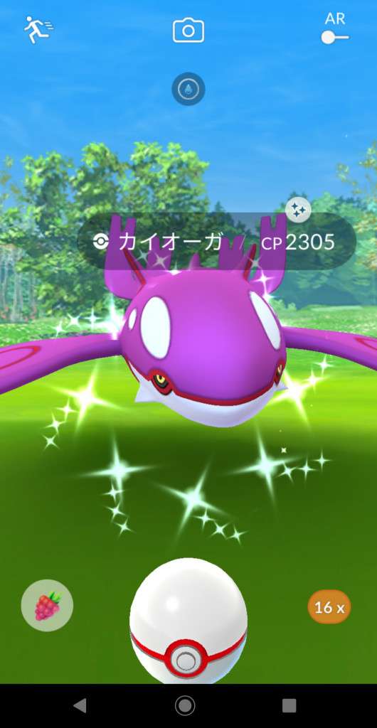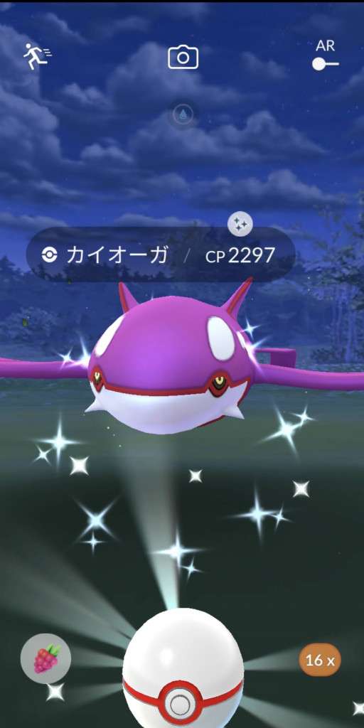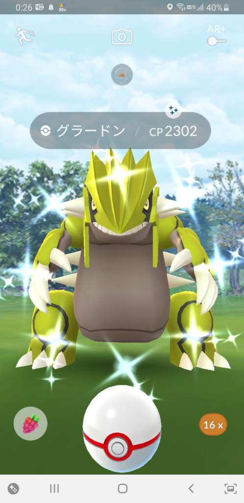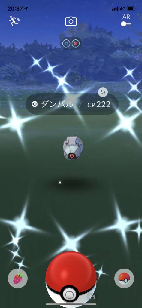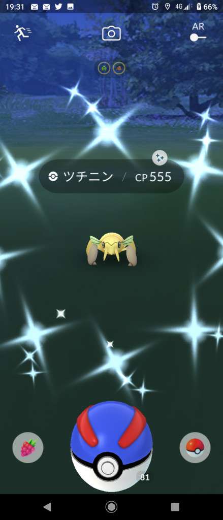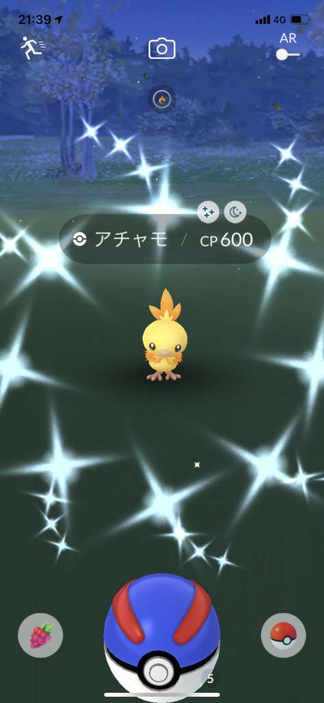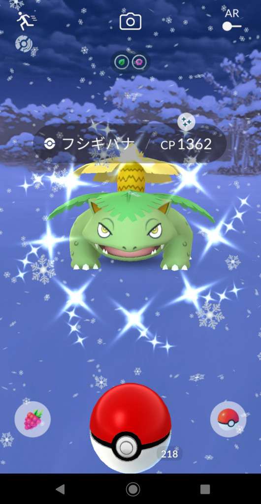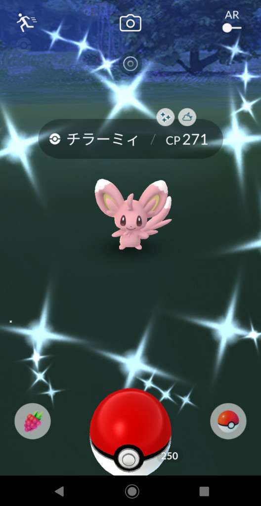 ・色違い出現したら、右上「AR+」のON・OFF切り替えで、タイミング良く写るまで何回も挑戦