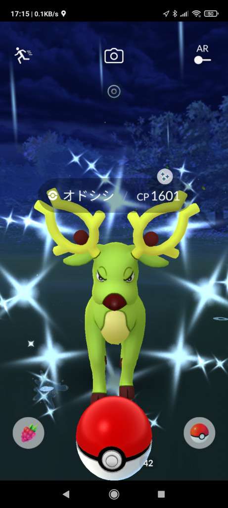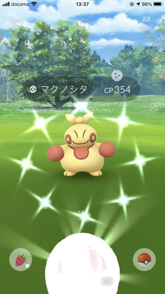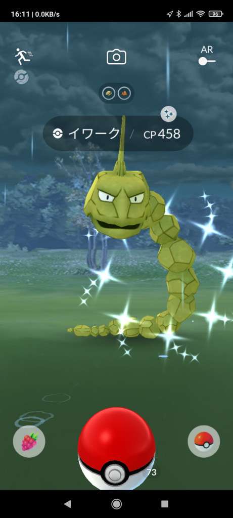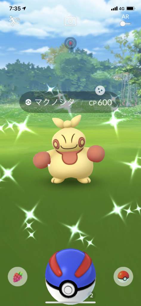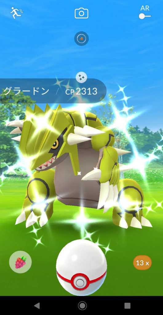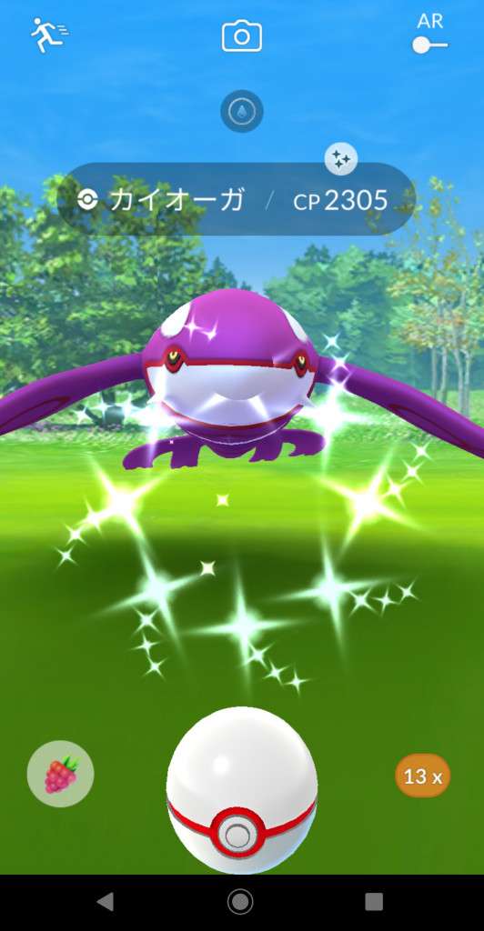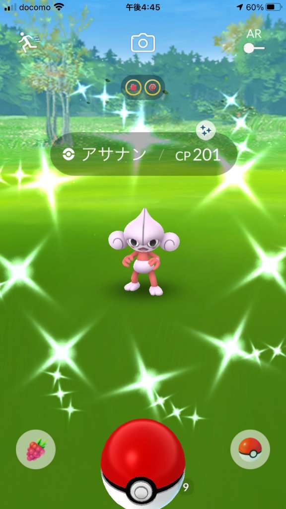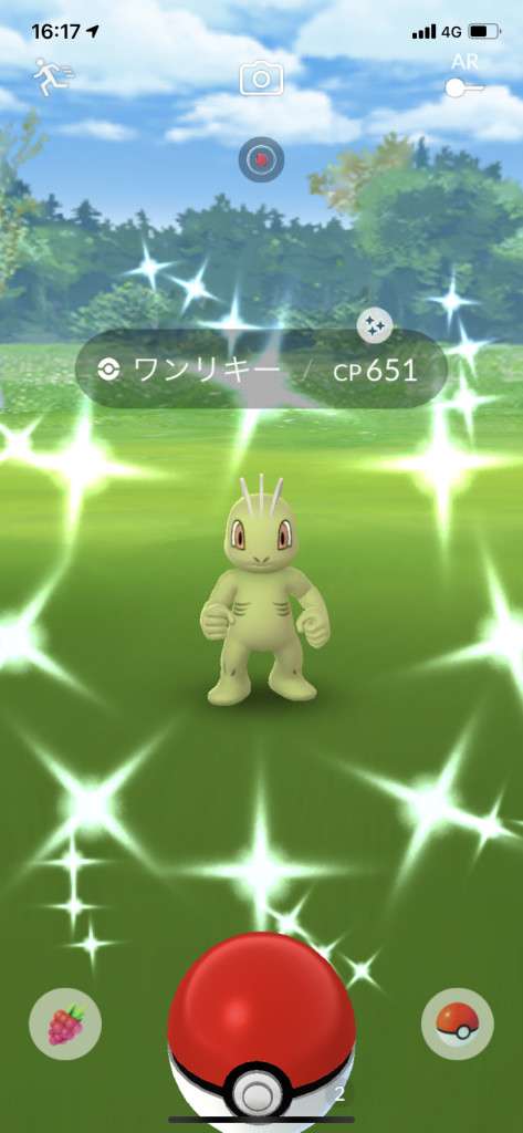・色違い出現したら、右上「AR+」のON・OFF切り替えで、タイミング良く写るまで何回も挑戦