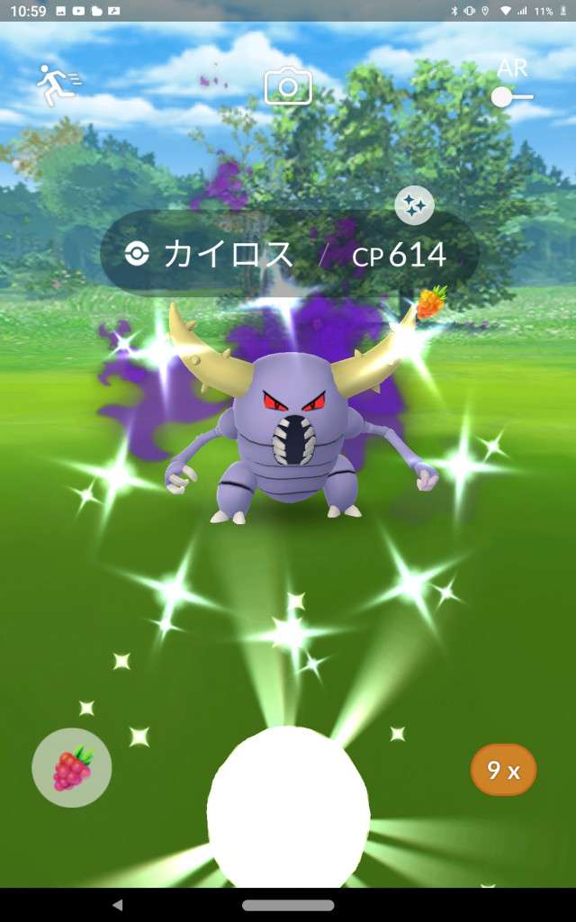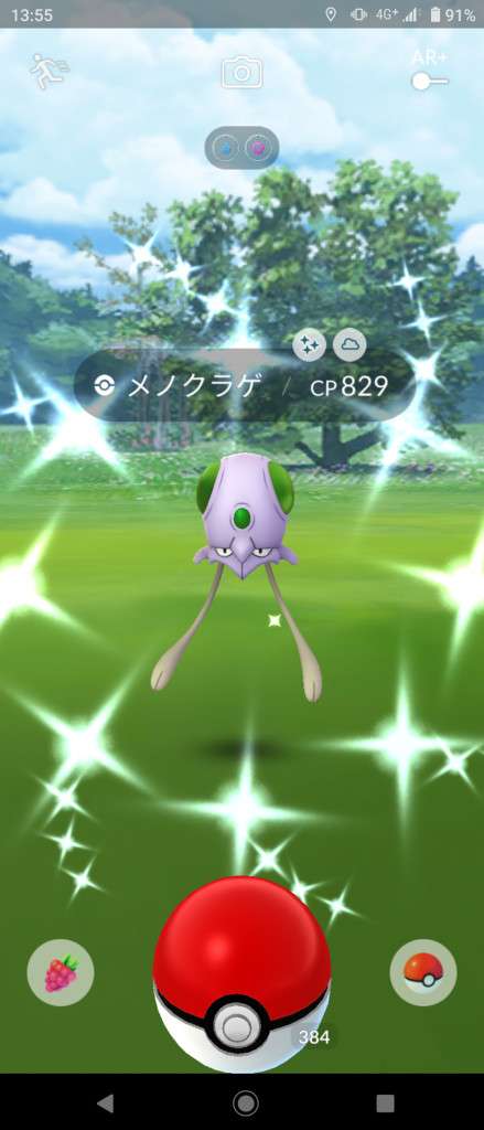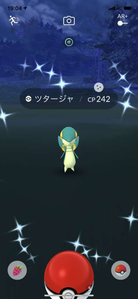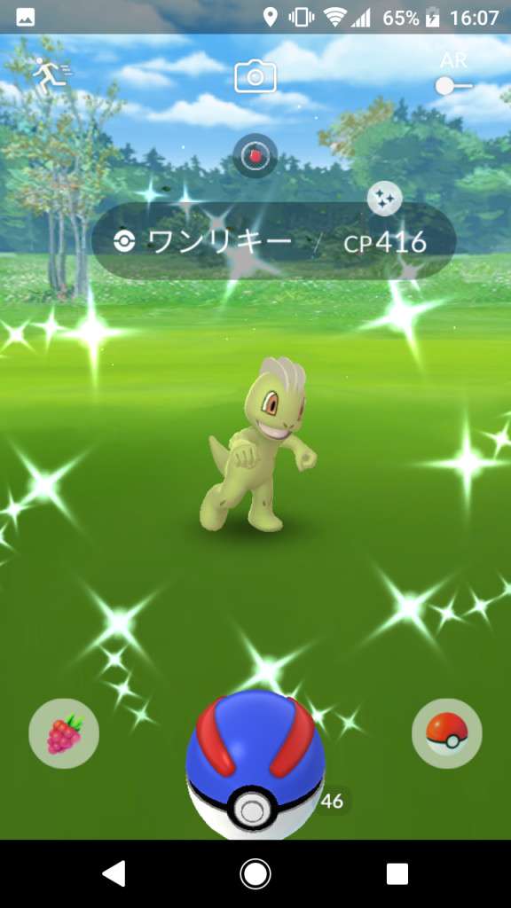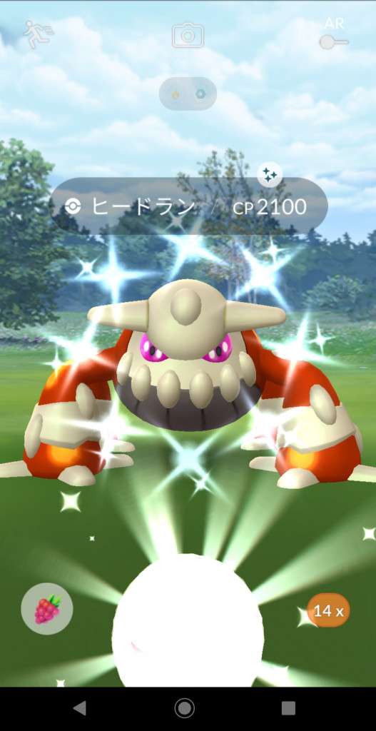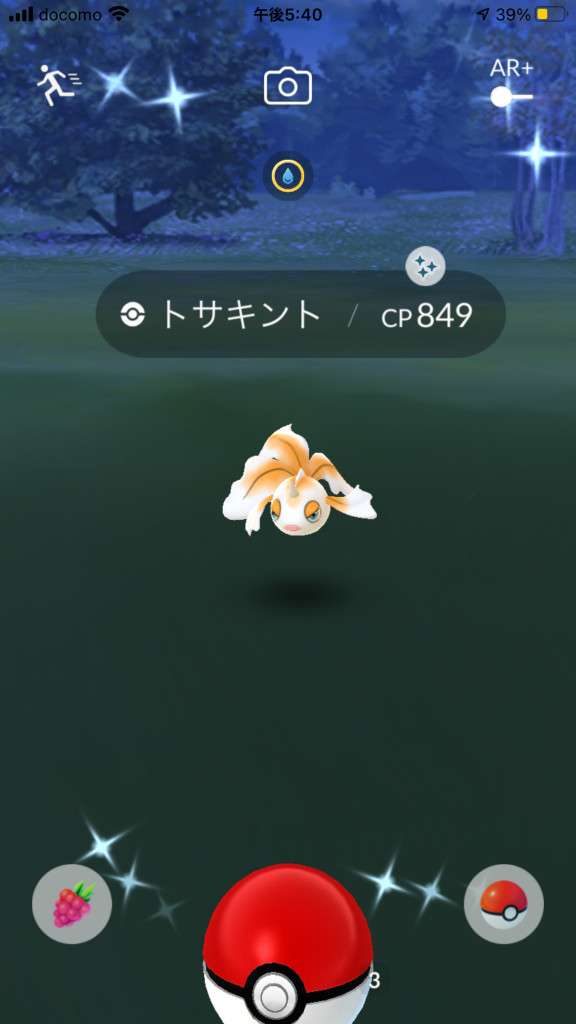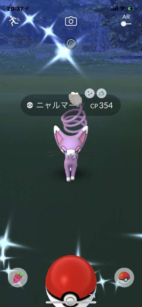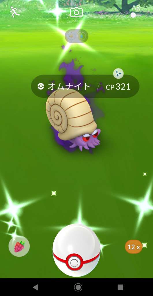 ・色違い出現したら、右上「AR+」のON・OFF切り替えで、タイミング良く写るまで何回も挑戦