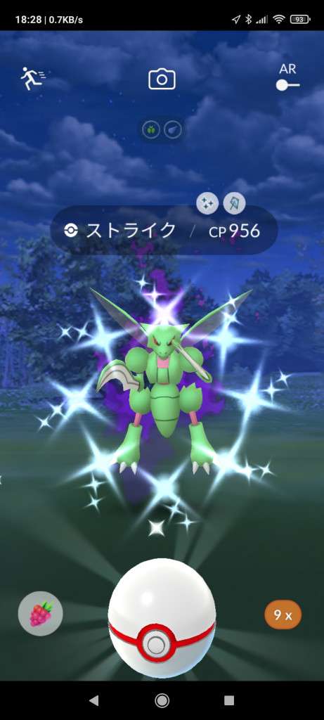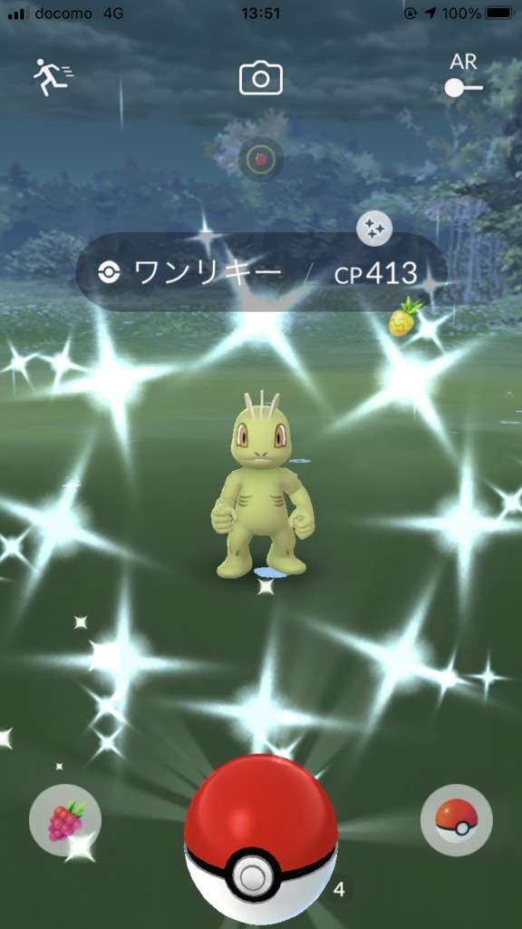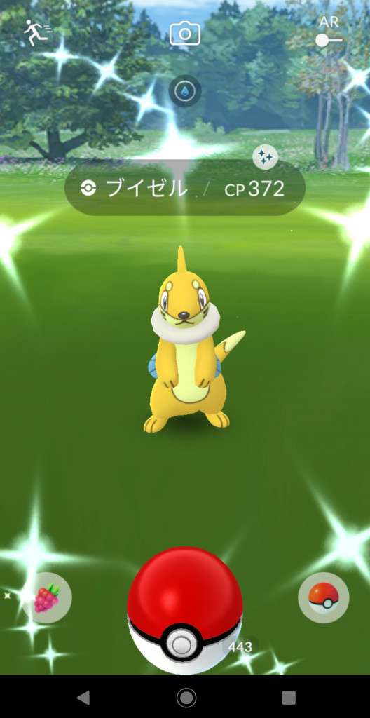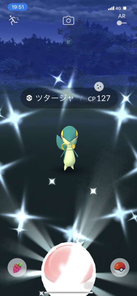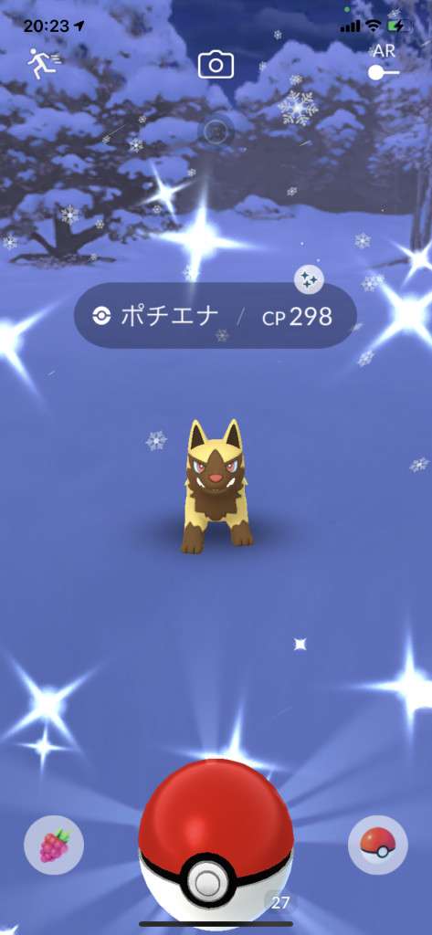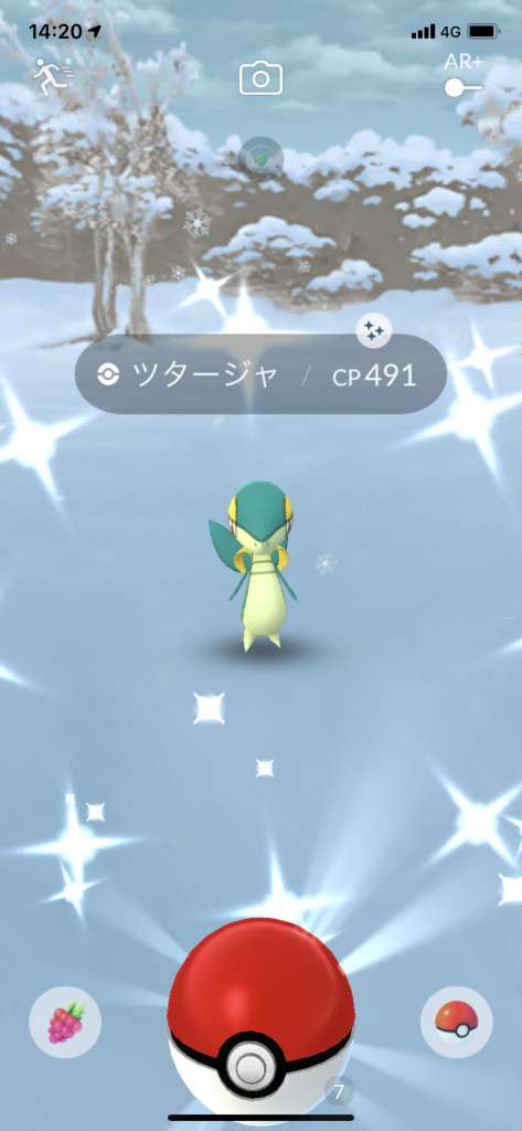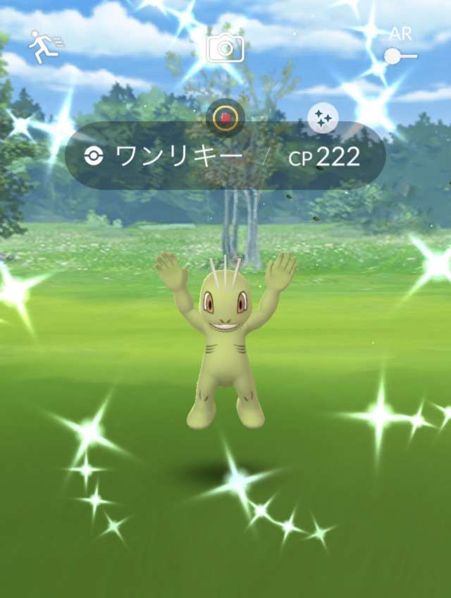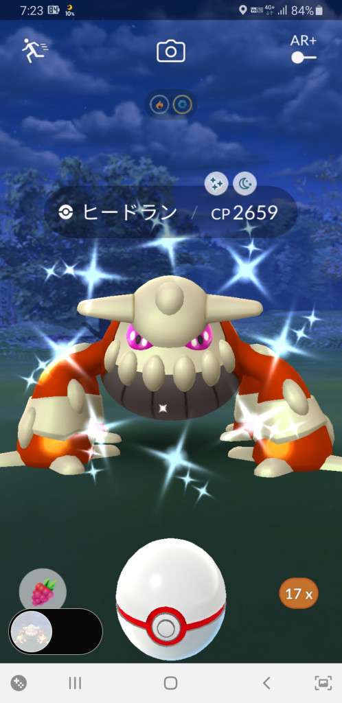 ・色違い出現したら、右上「AR+」のON・OFF切り替えで、タイミング良く写るまで何回も挑戦