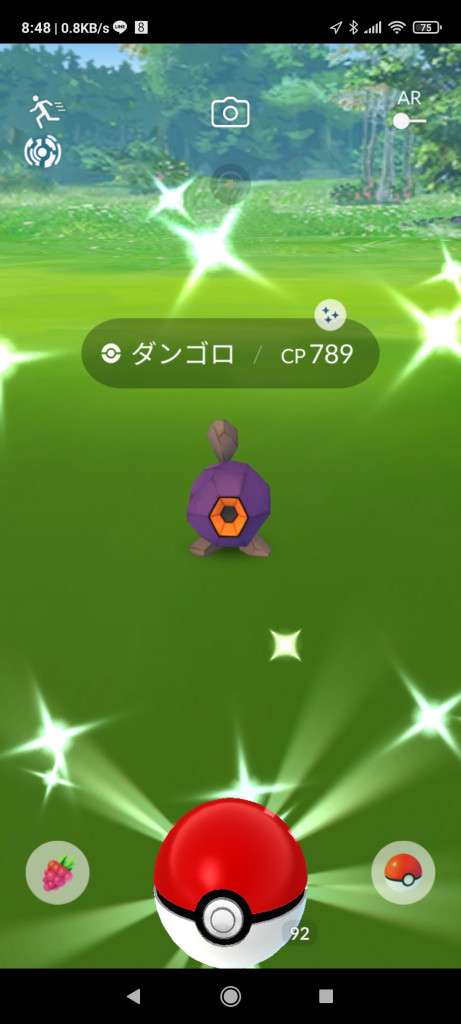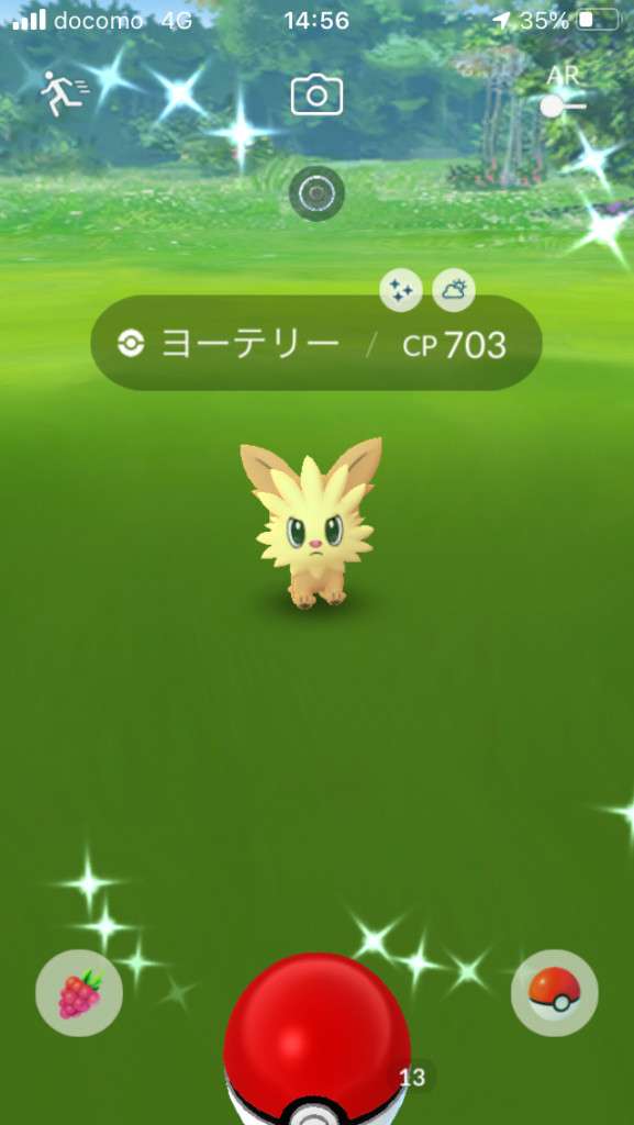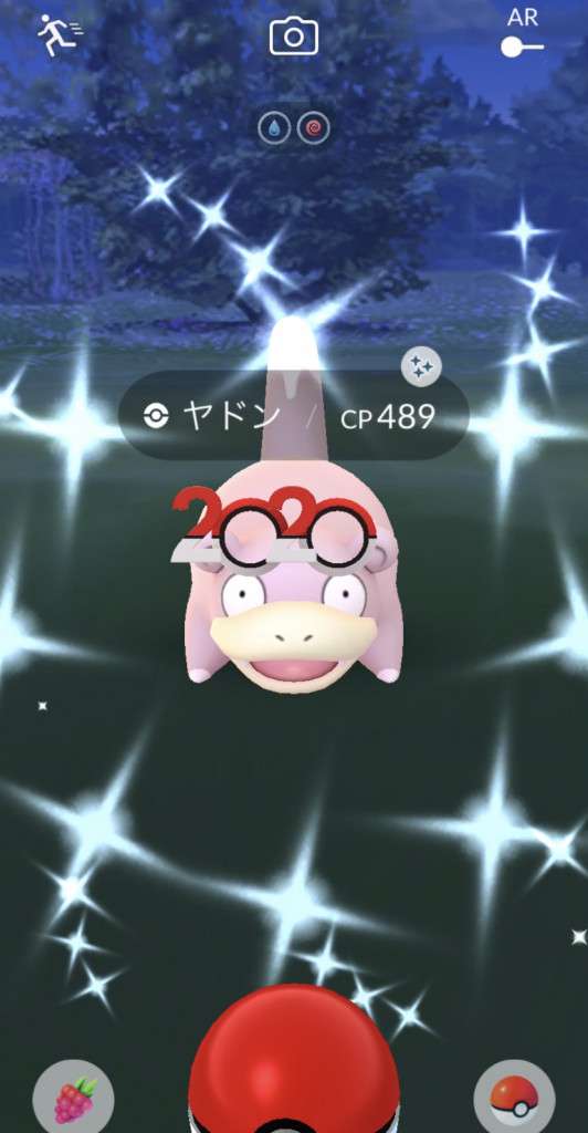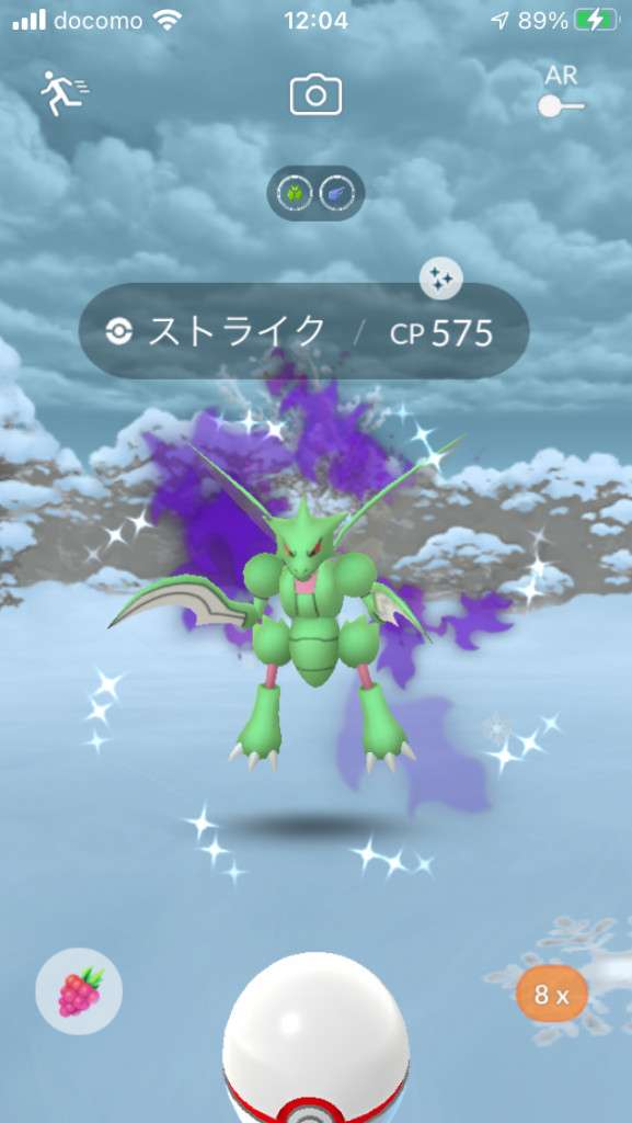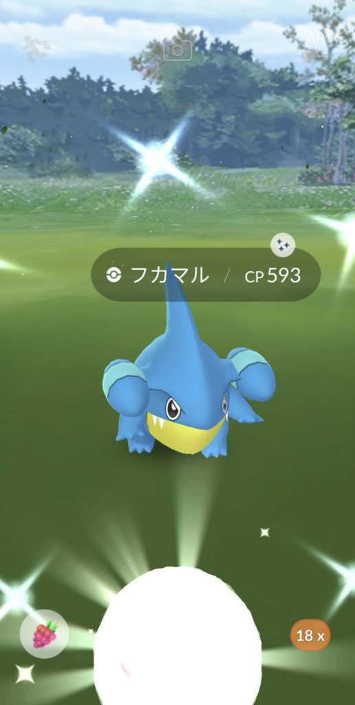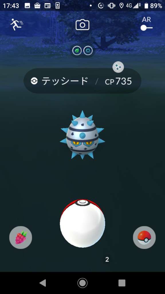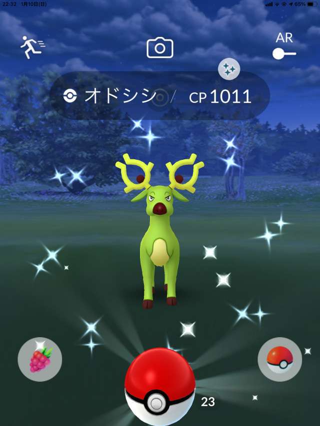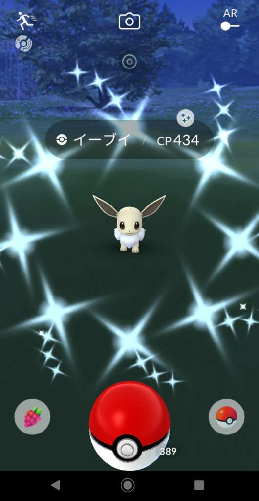 ・色違い出現したら、右上「AR+」のON・OFF切り替えで、タイミング良く写るまで何回も挑戦