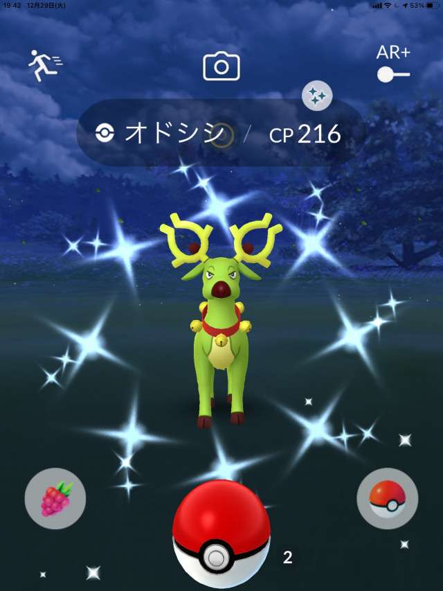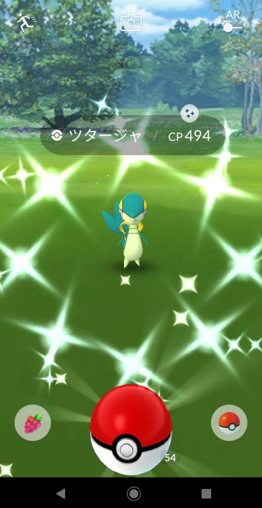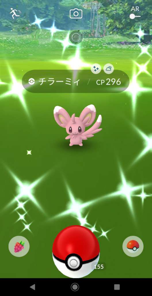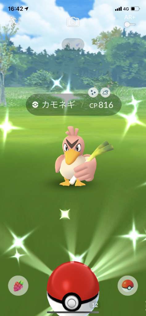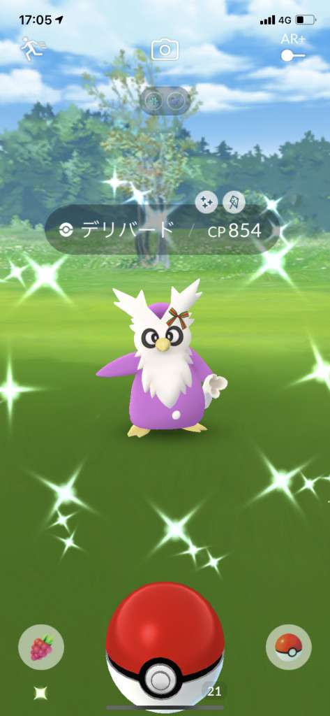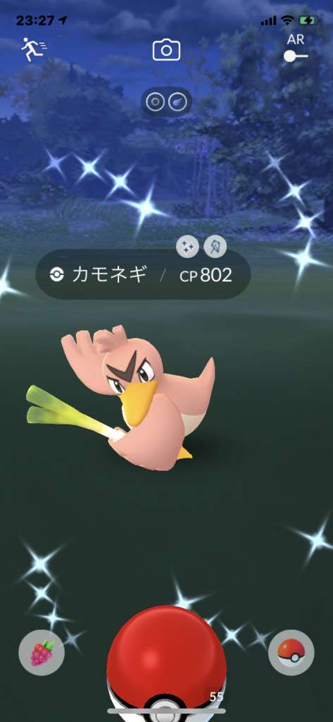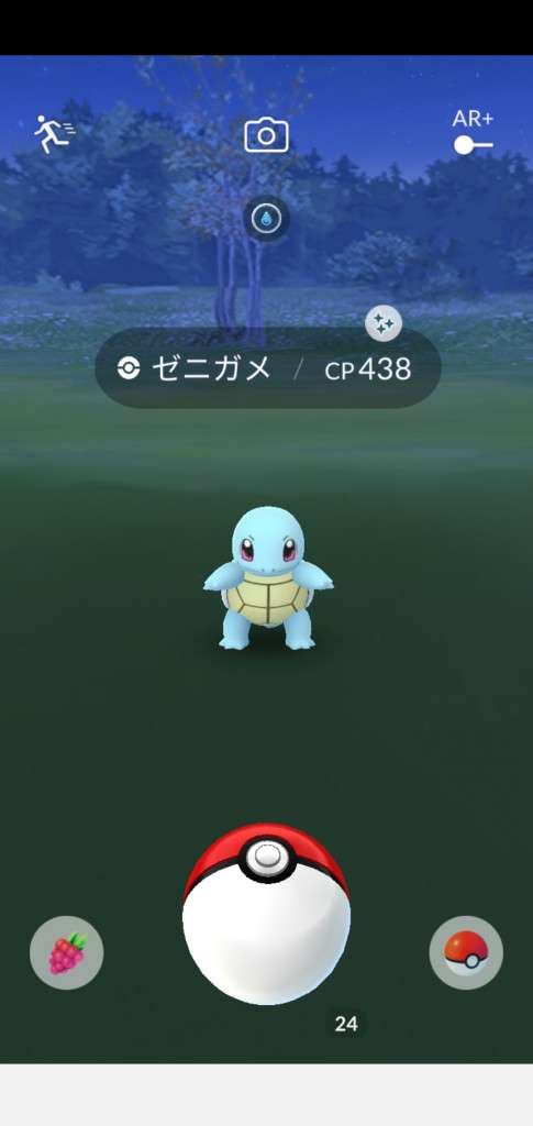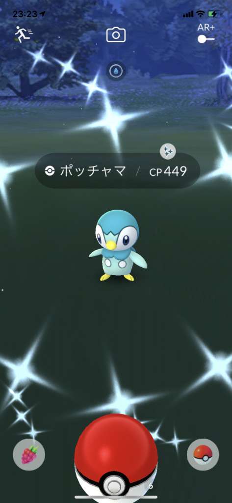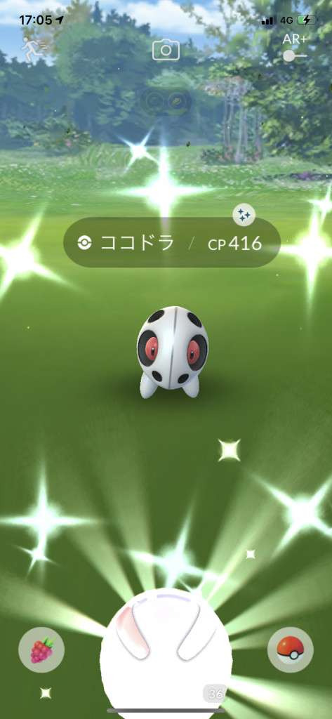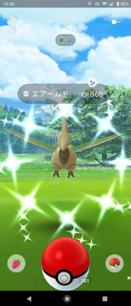 ・色違い出現したら、右上「AR+」のON・OFF切り替えで、タイミング良く写るまで何回も挑戦