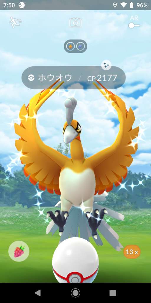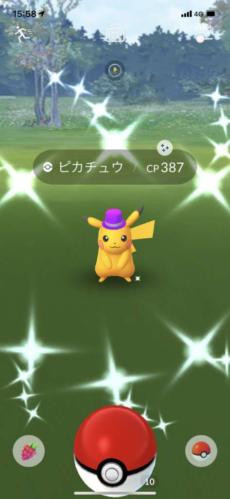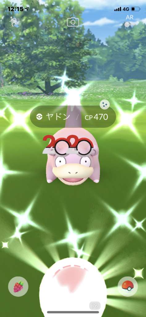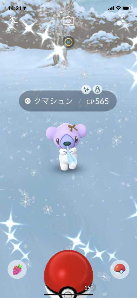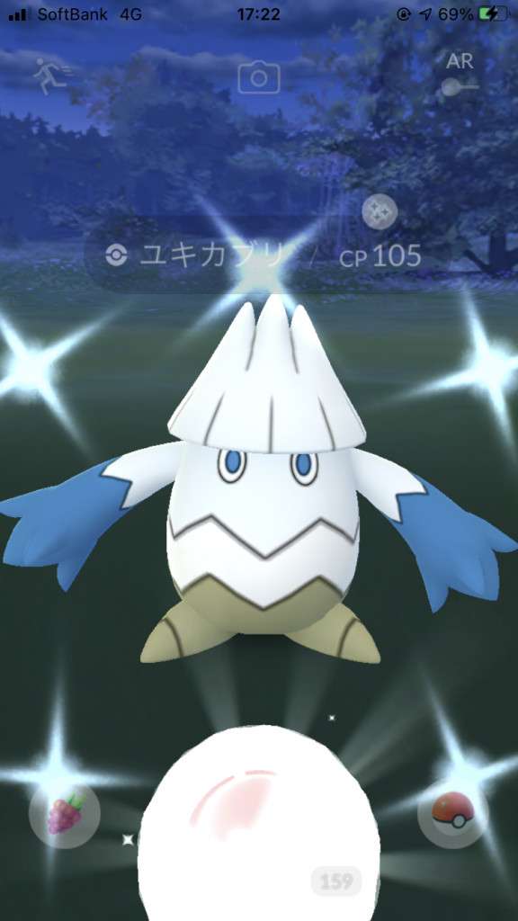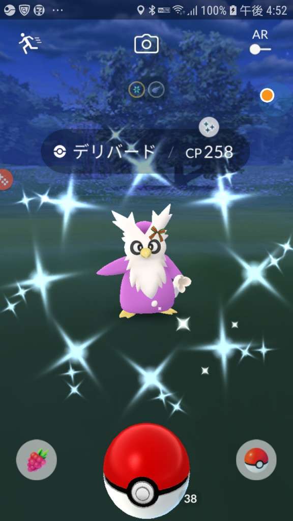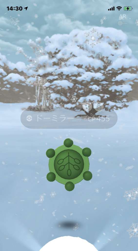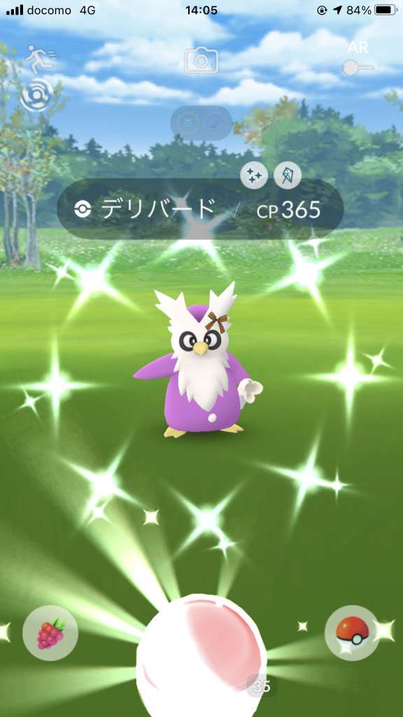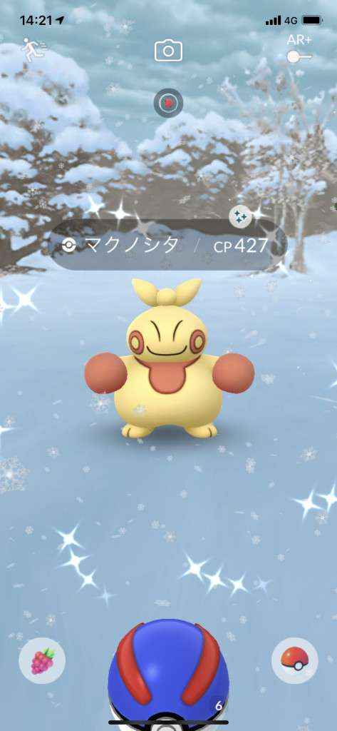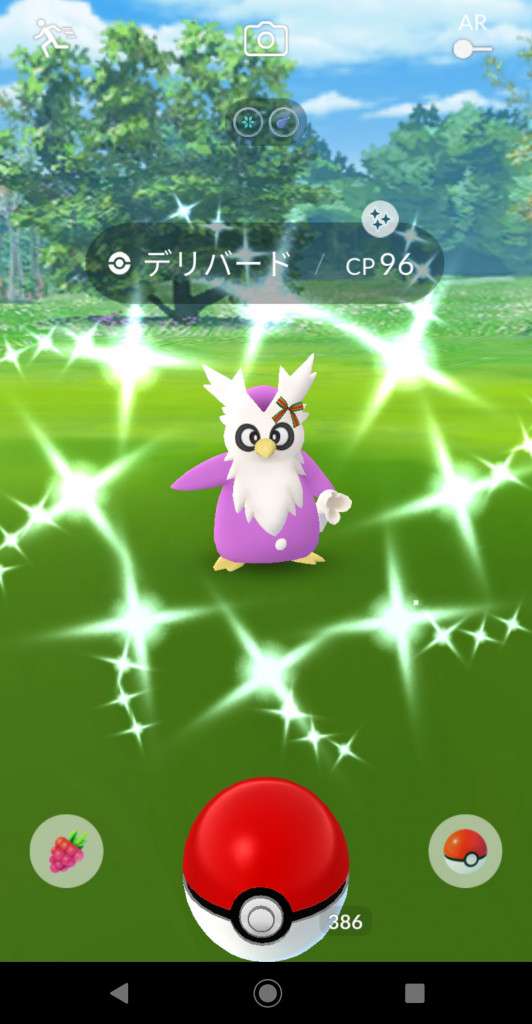 ・色違い出現したら、右上「AR+」のON・OFF切り替えで、タイミング良く写るまで何回も挑戦