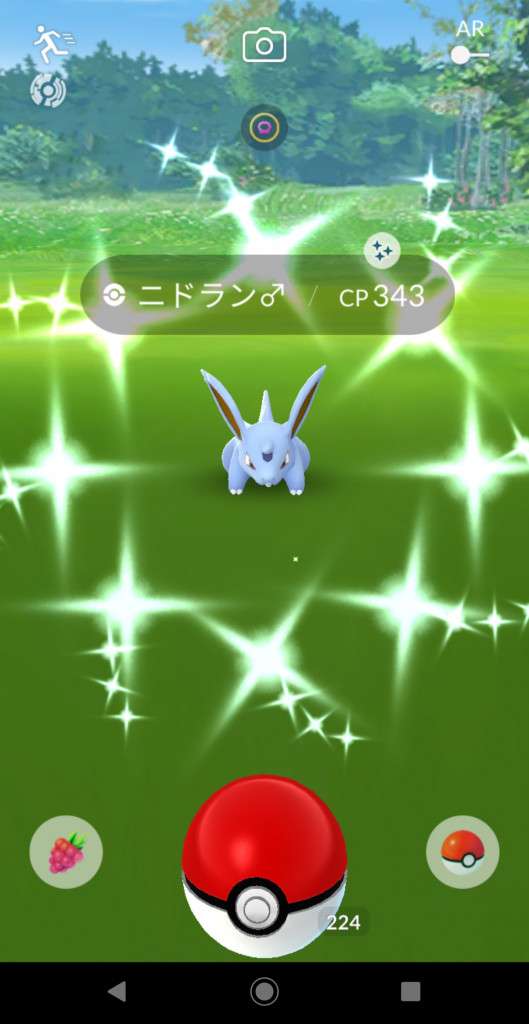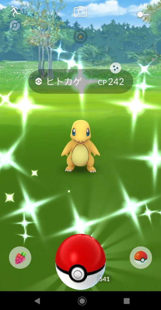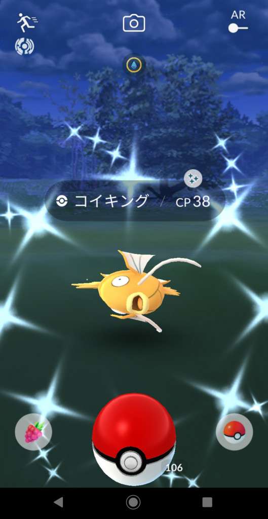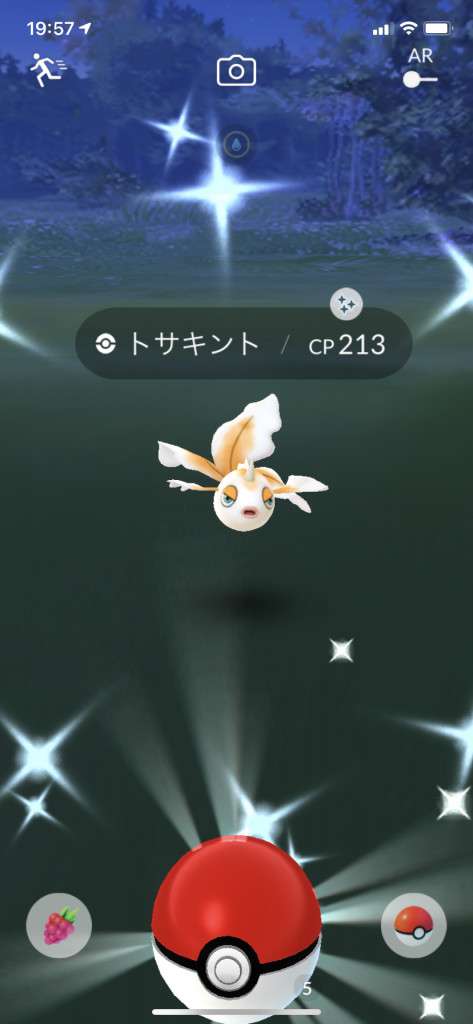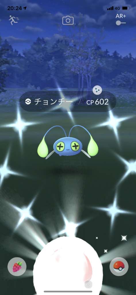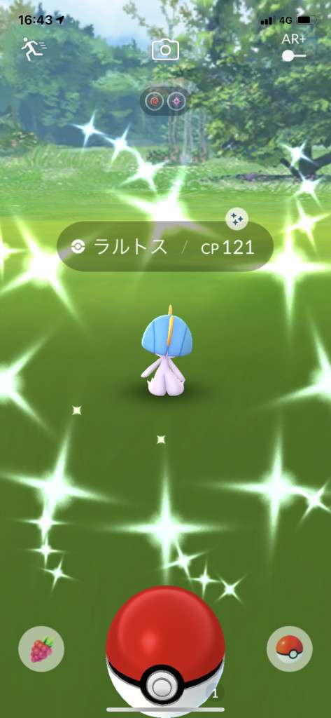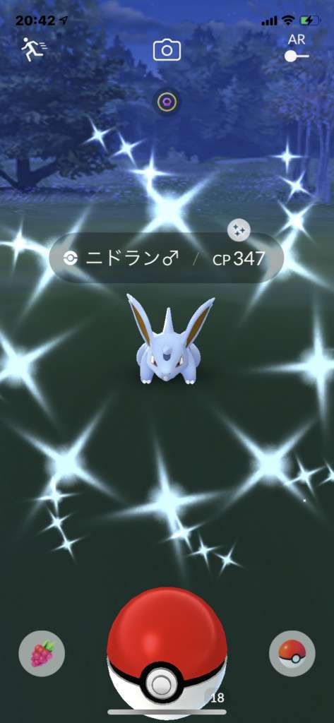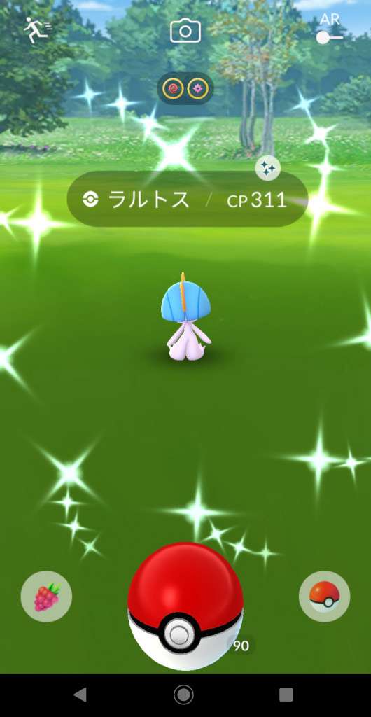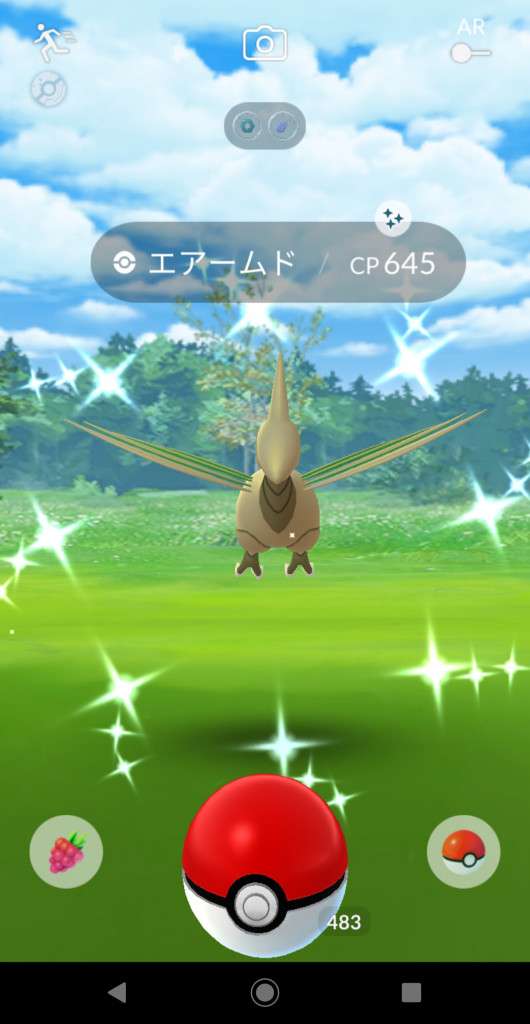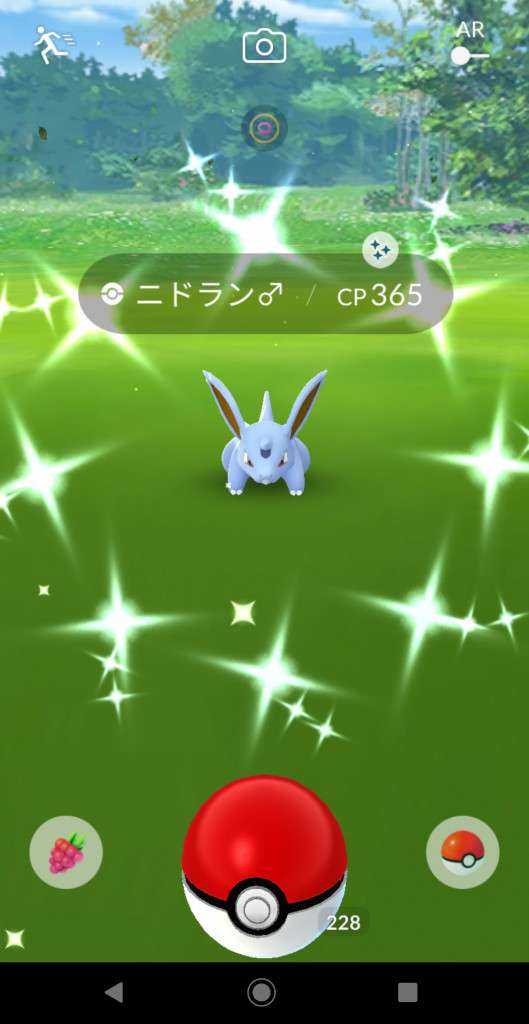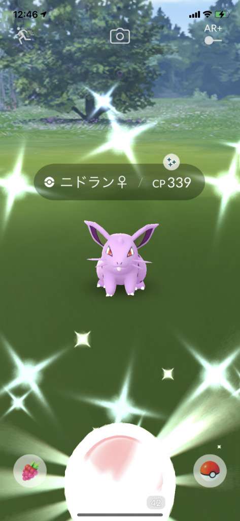 ・色違い出現したら、右上「AR+」のON・OFF切り替えで、タイミング良く写るまで何回も挑戦