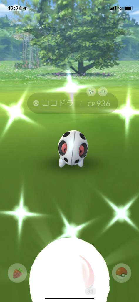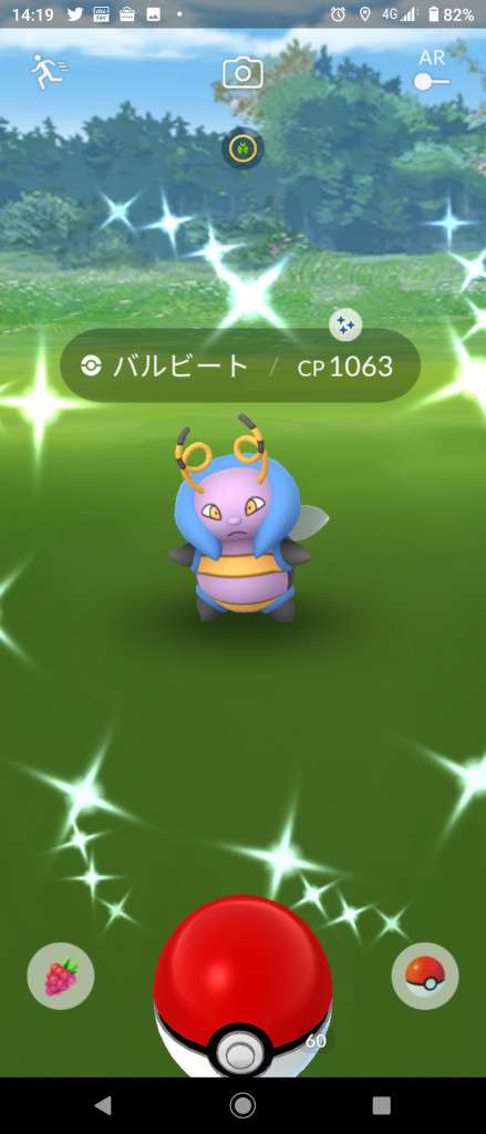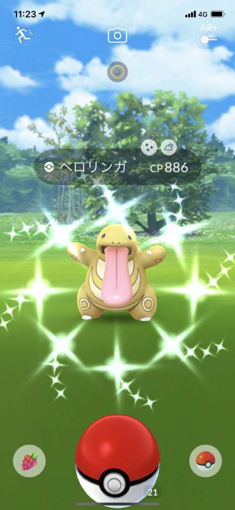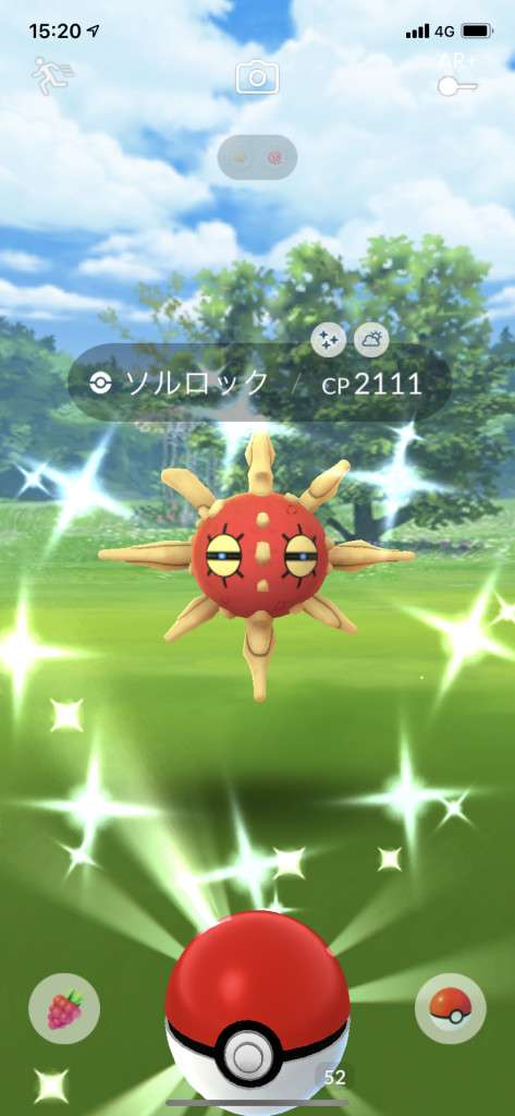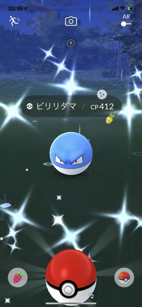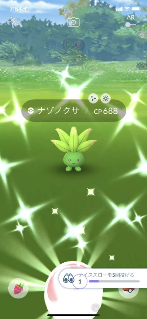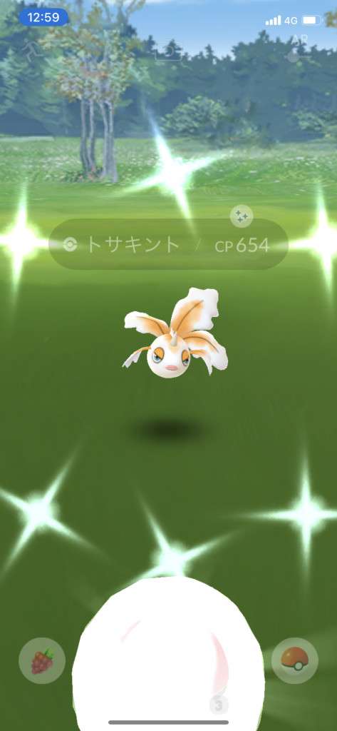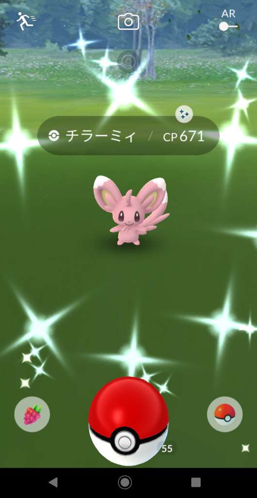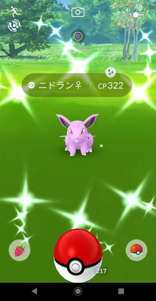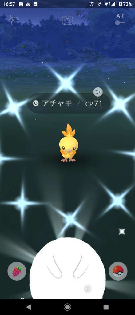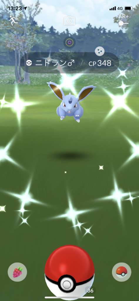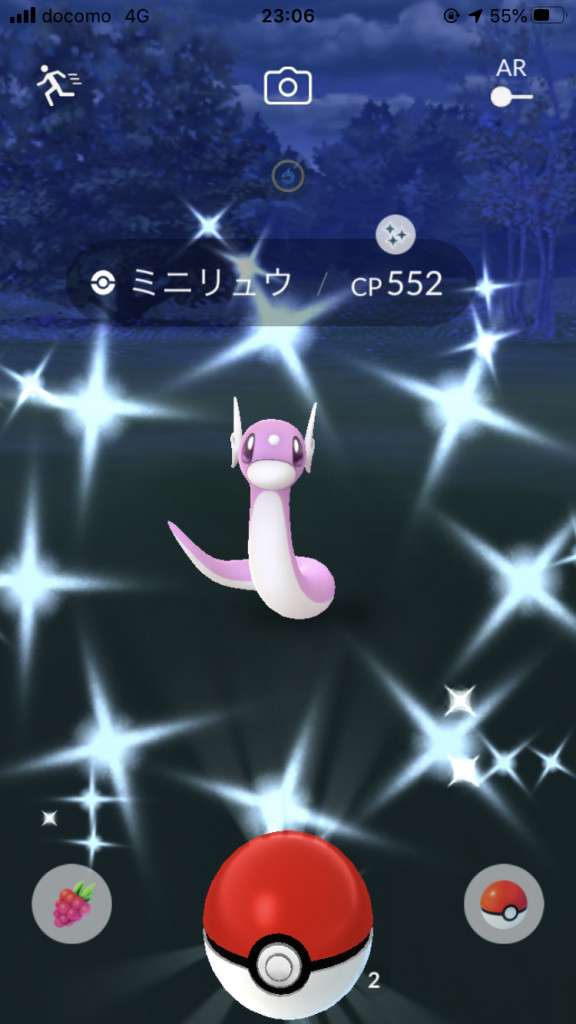 ・色違い出現したら、右上「AR+」のON・OFF切り替えで、タイミング良く写るまで何回も挑戦