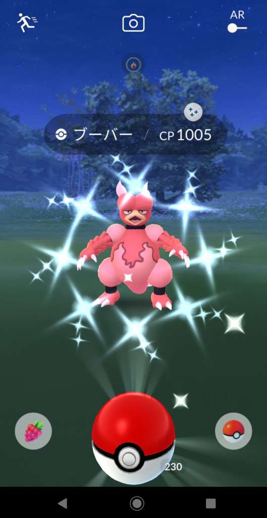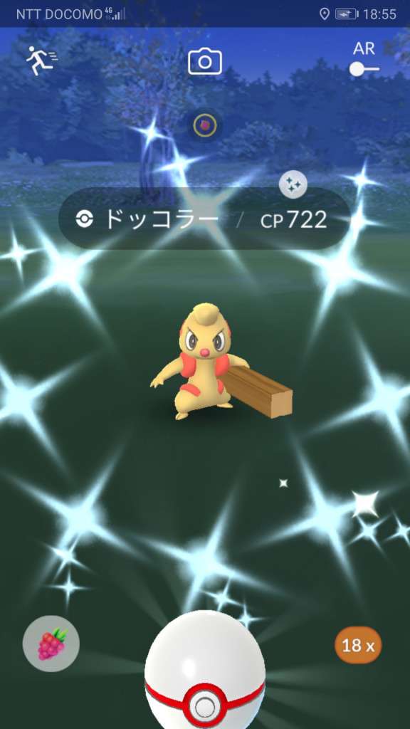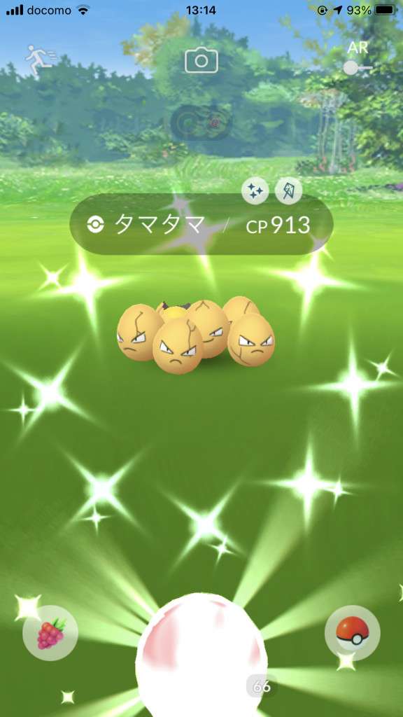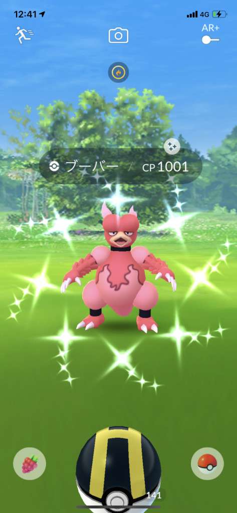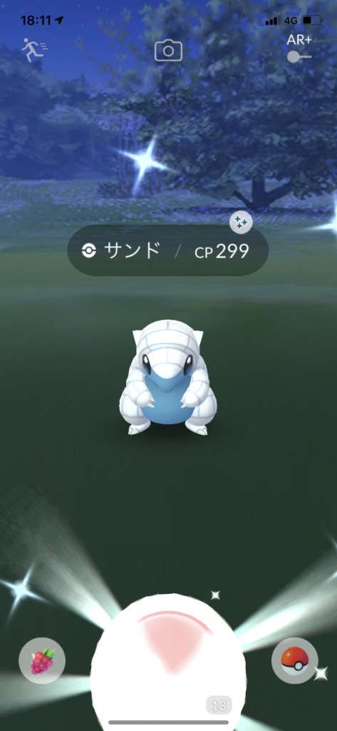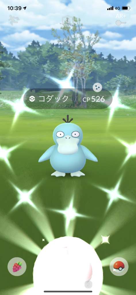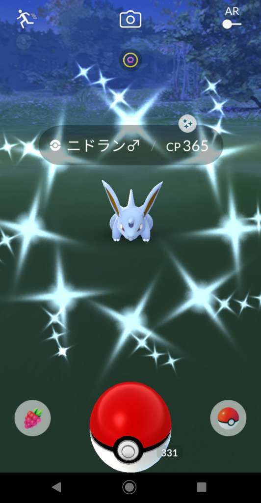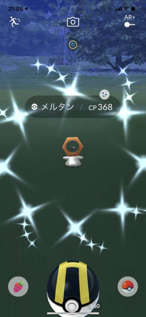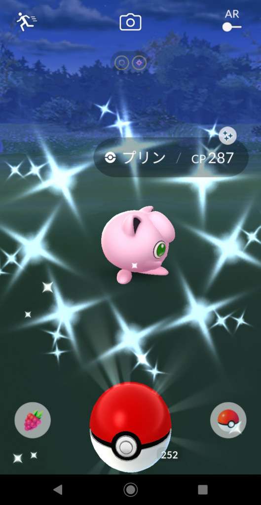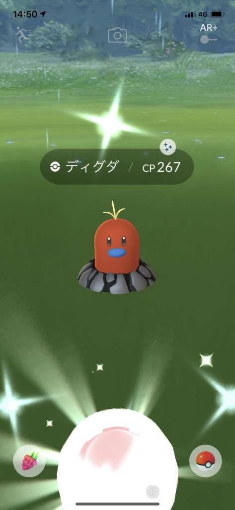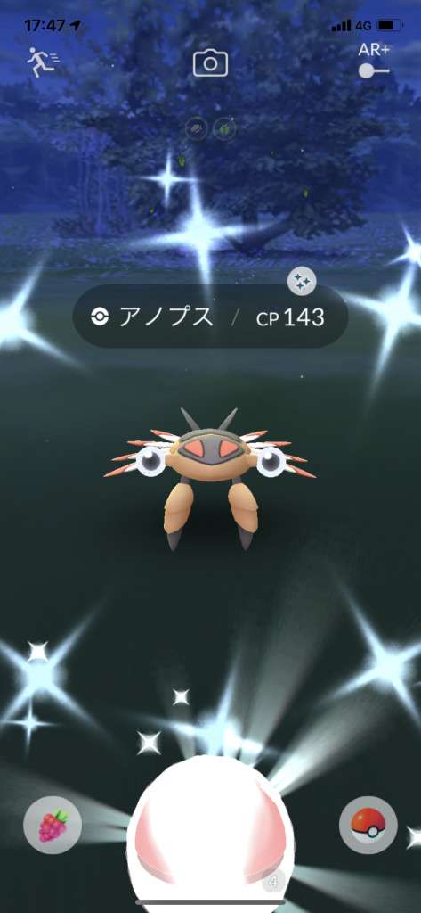 ・色違い出現したら、右上「AR+」のON・OFF切り替えで、タイミング良く写るまで何回も挑戦