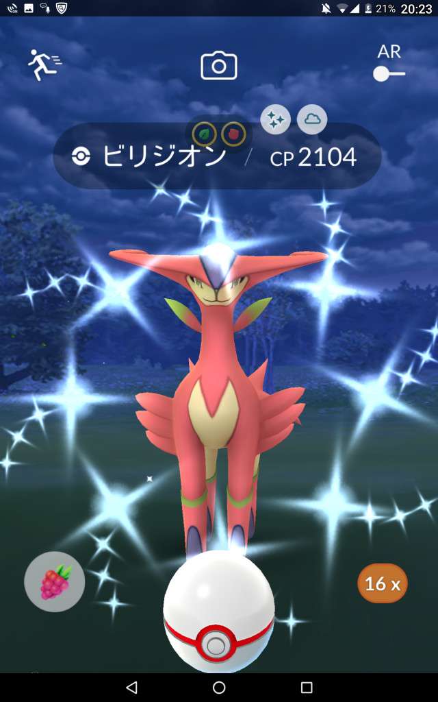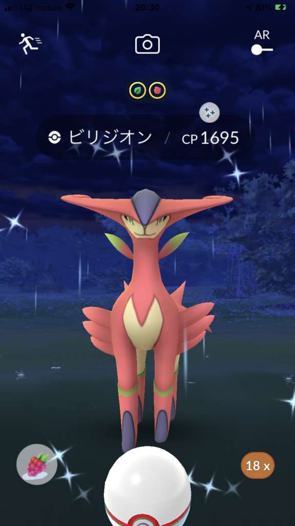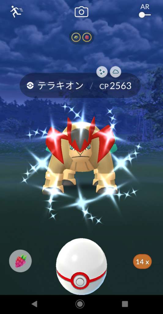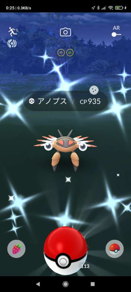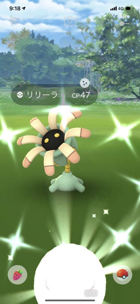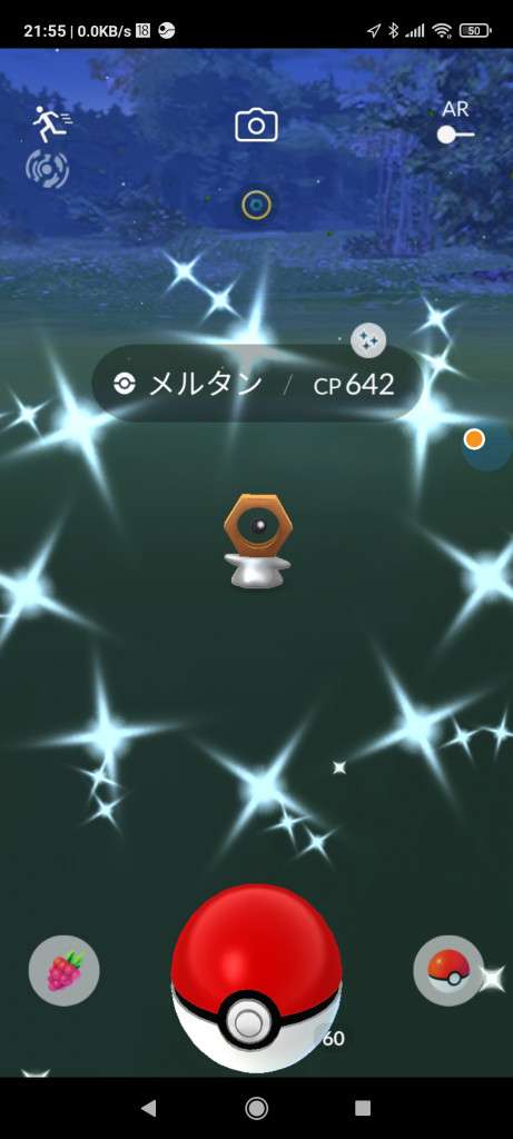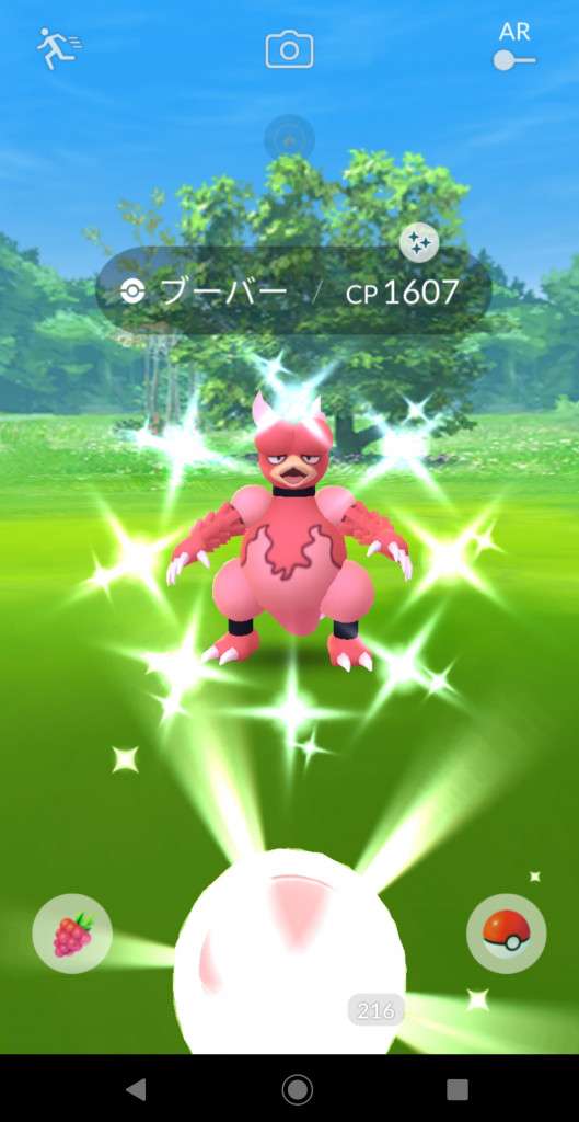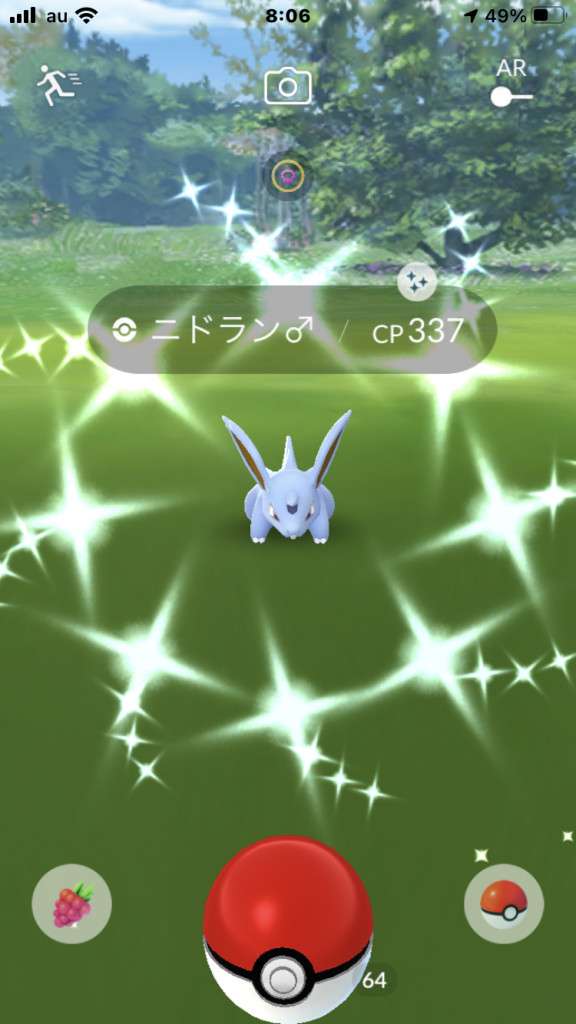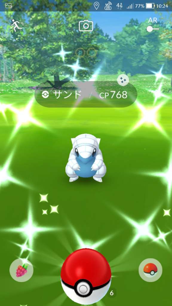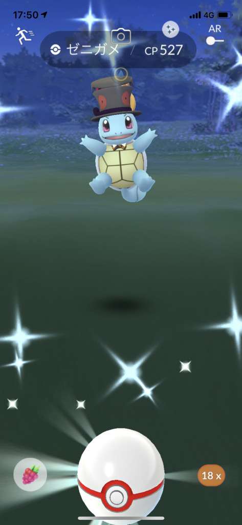 ・色違い出現したら、右上「AR+」のON・OFF切り替えで、タイミング良く写るまで何回も挑戦