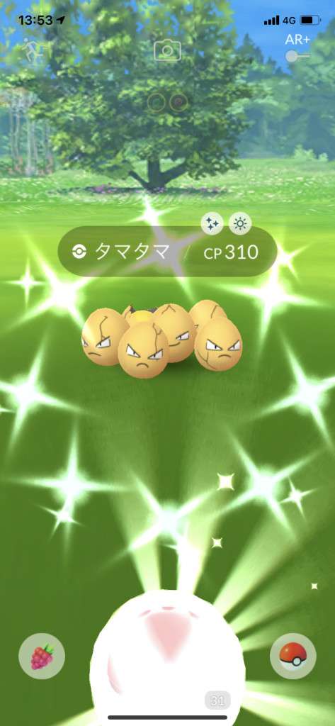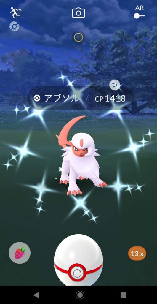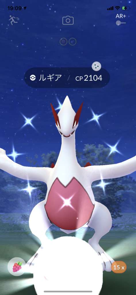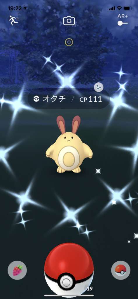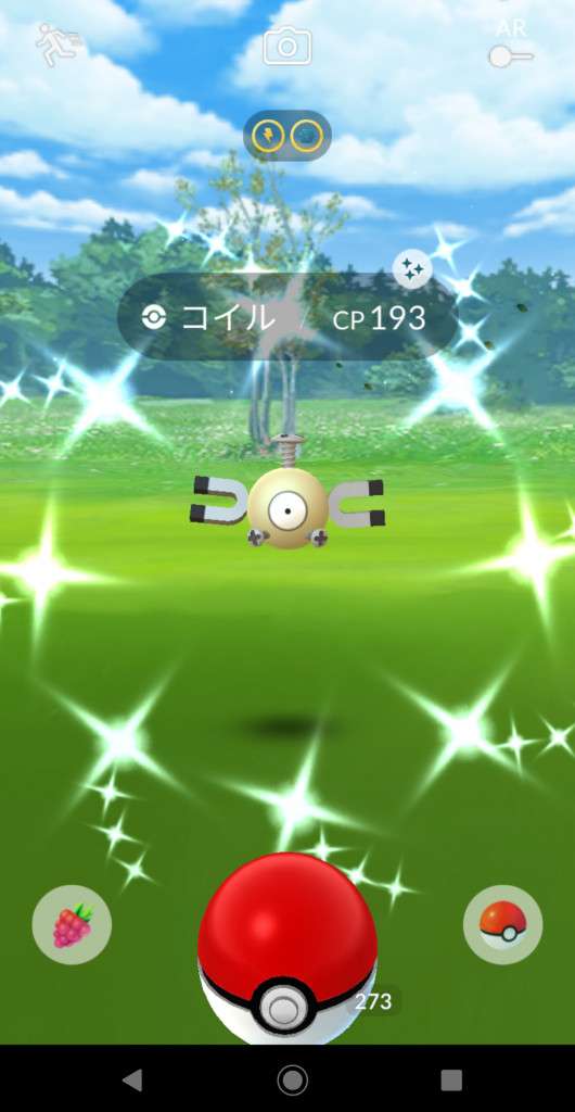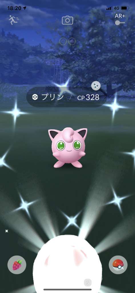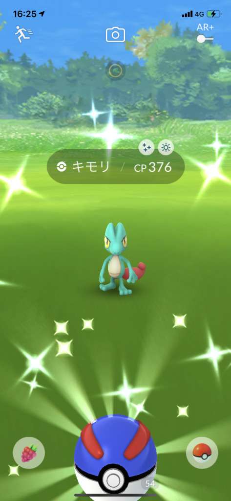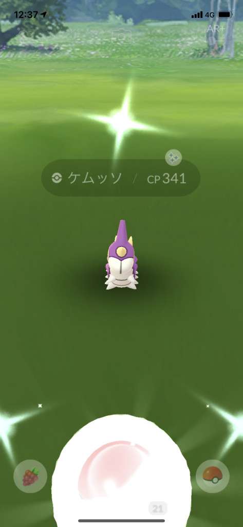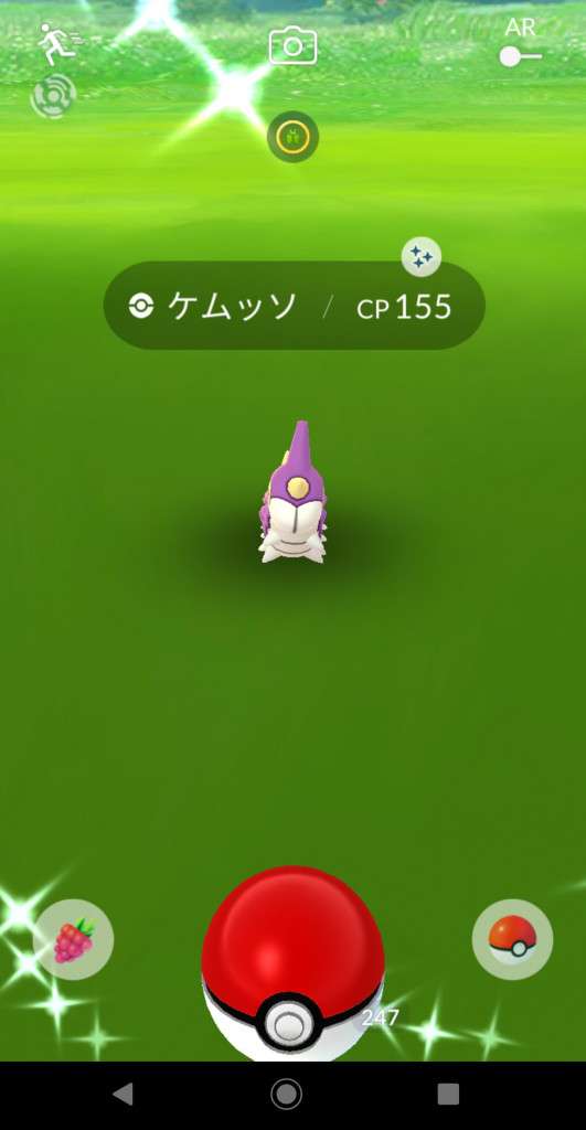 ・色違い出現したら、右上「AR+」のON・OFF切り替えで、タイミング良く写るまで何回も挑戦