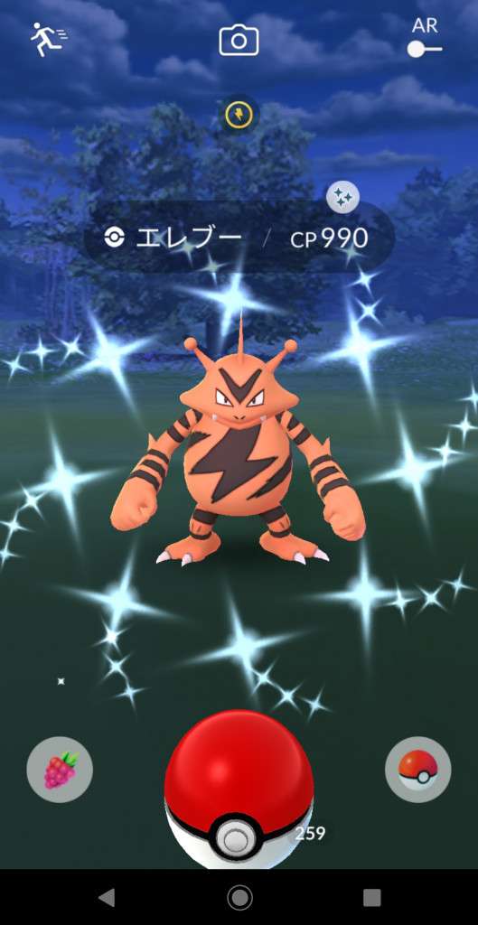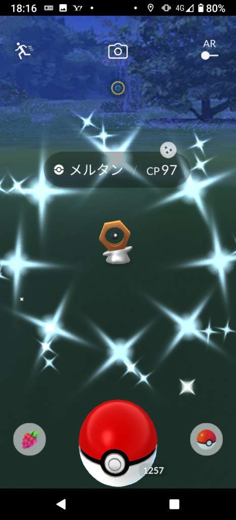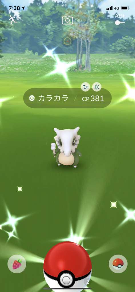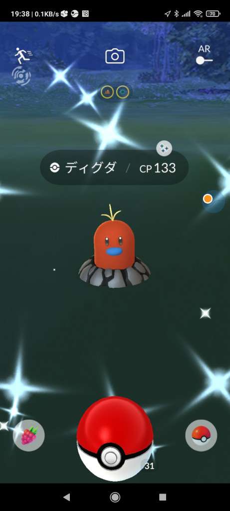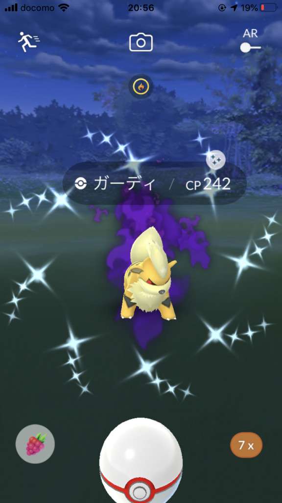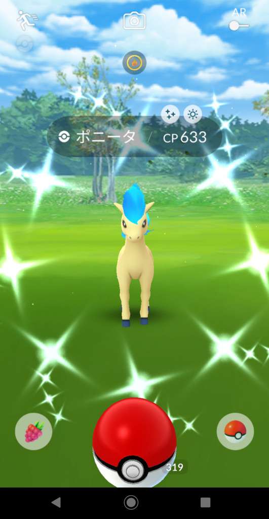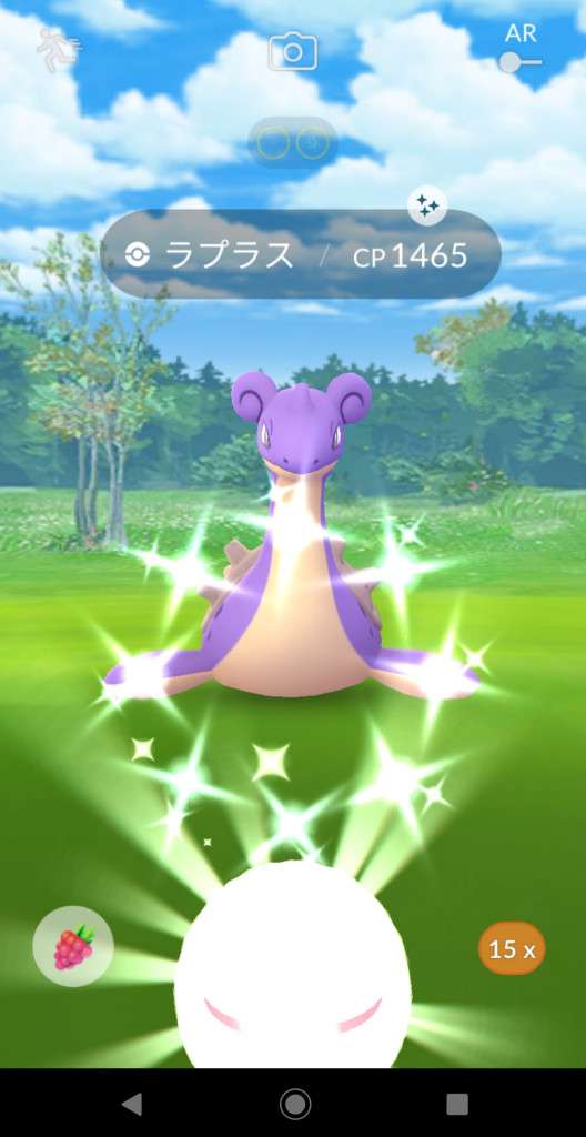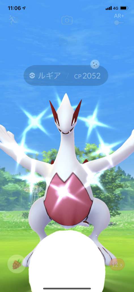 ・色違い出現したら、右上「AR+」のON・OFF切り替えで、タイミング良く写るまで何回も挑戦