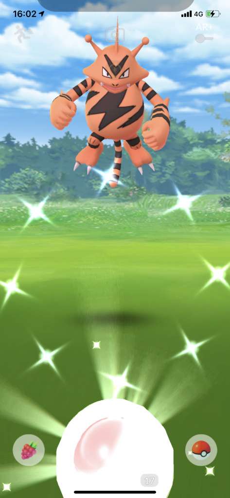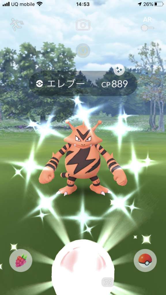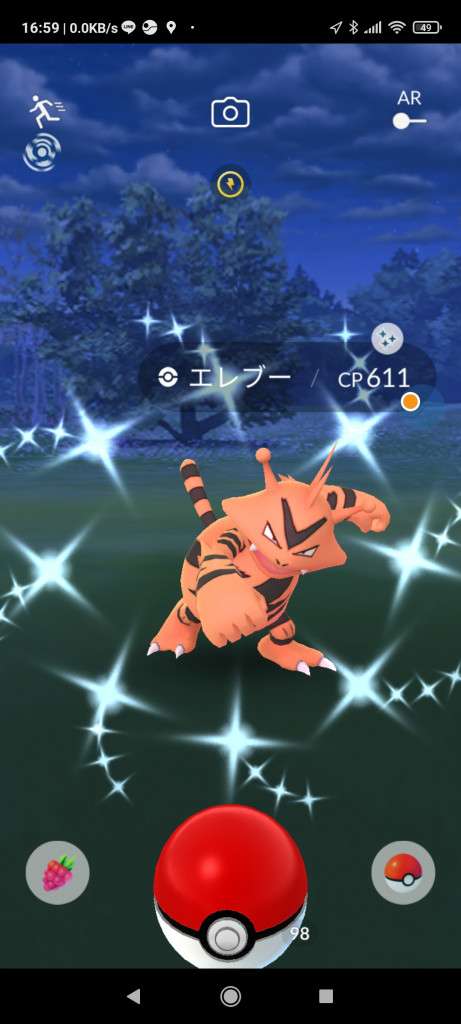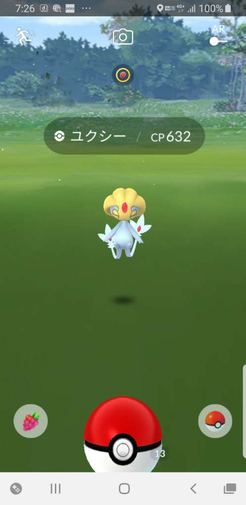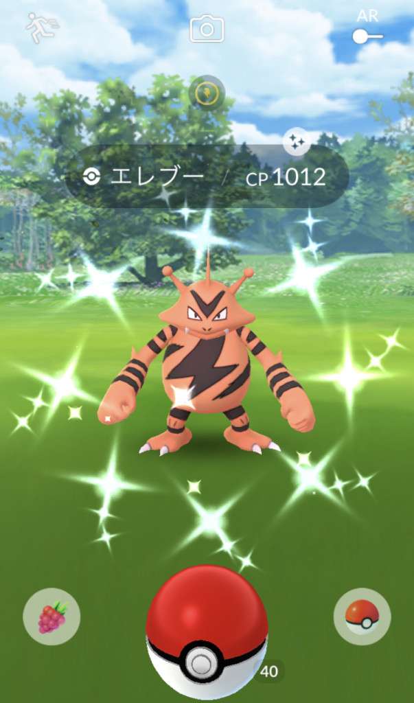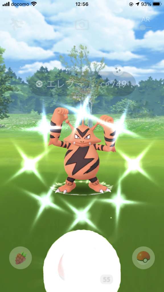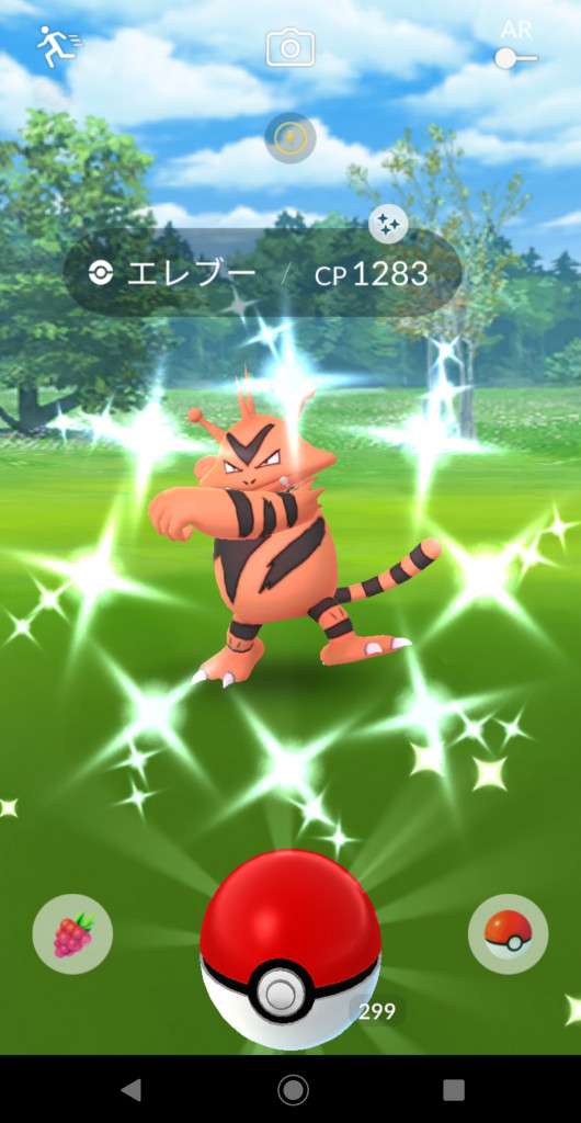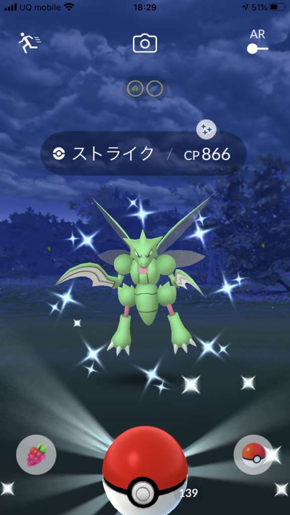 ・色違い出現したら、右上「AR+」のON・OFF切り替えで、タイミング良く写るまで何回も挑戦