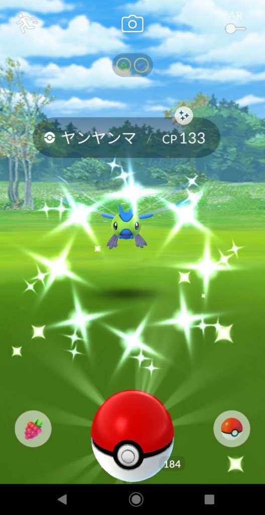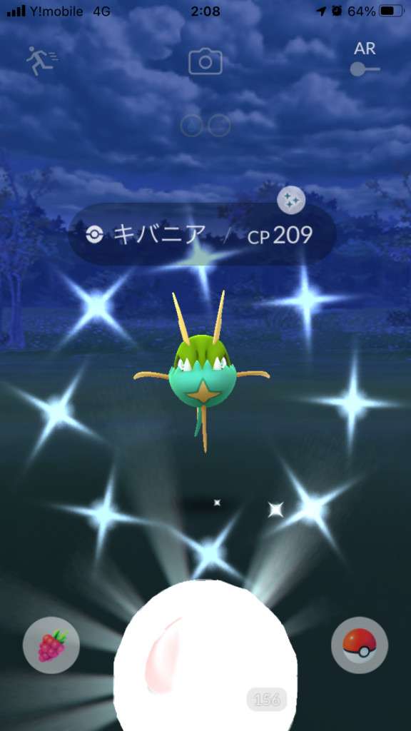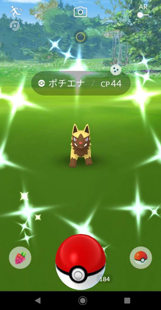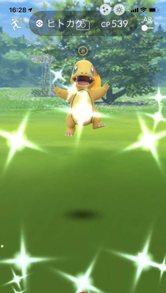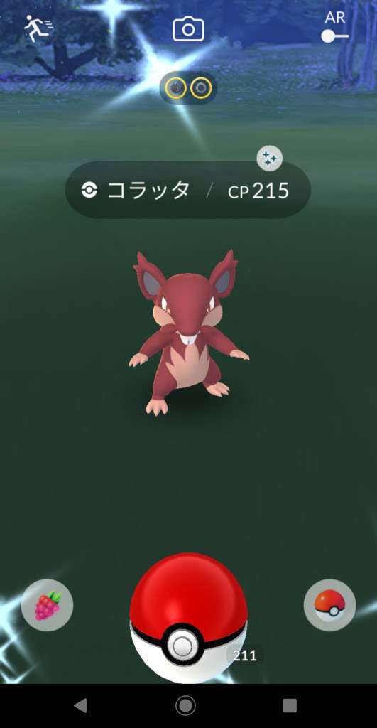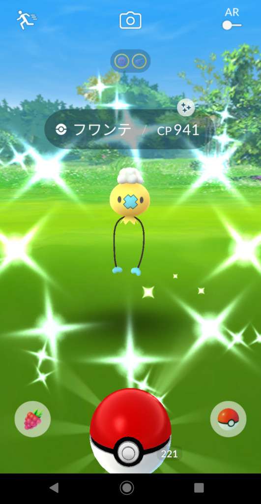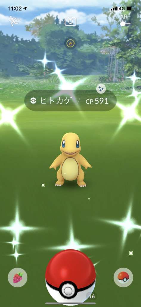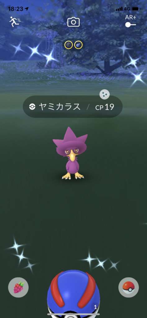 ・色違い出現したら、右上「AR+」のON・OFF切り替えで、タイミング良く写るまで何回も挑戦