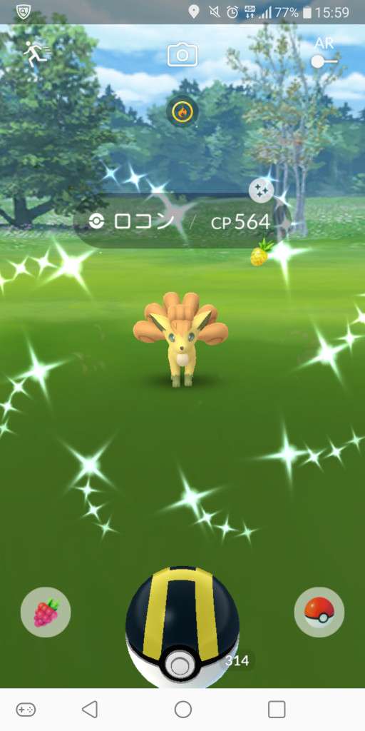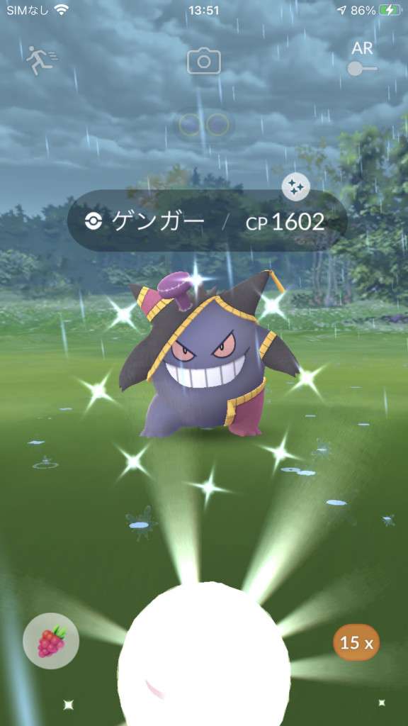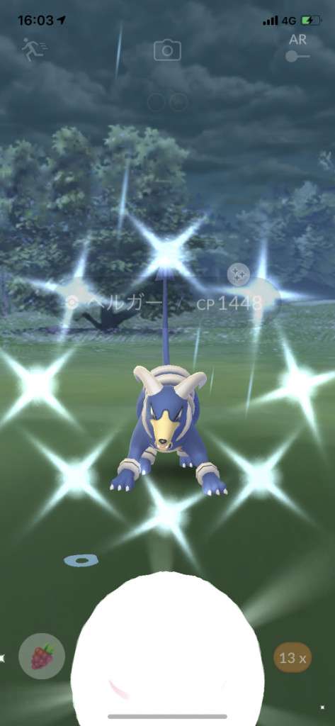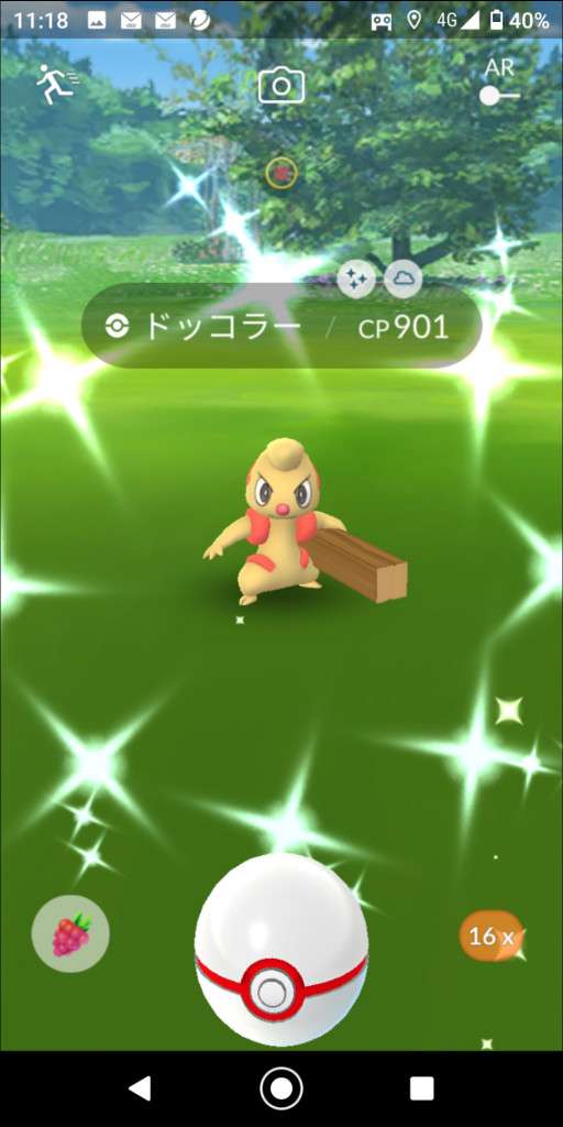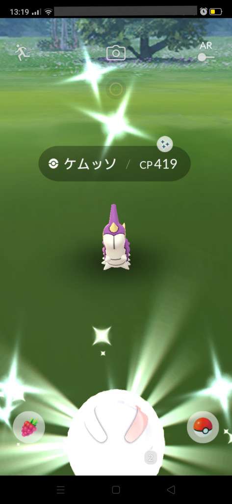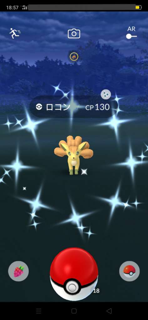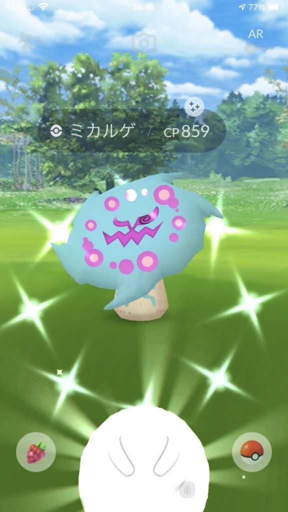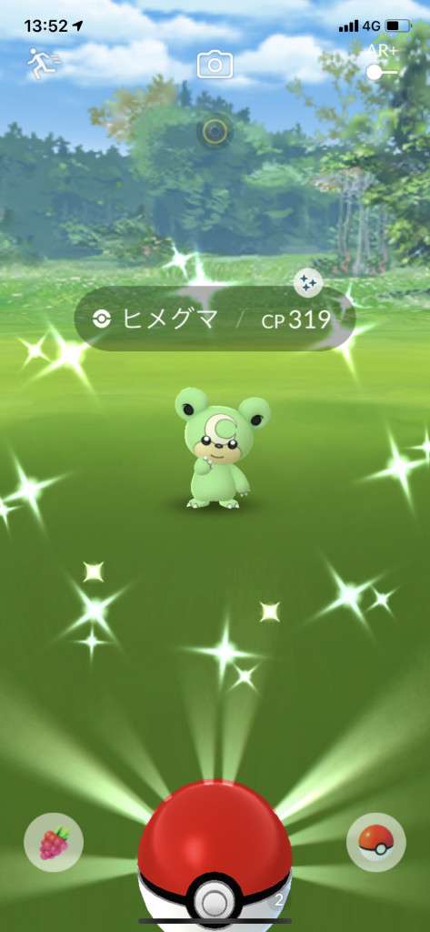 ・色違い出現したら、右上「AR+」のON・OFF切り替えで、タイミング良く写るまで何回も挑戦