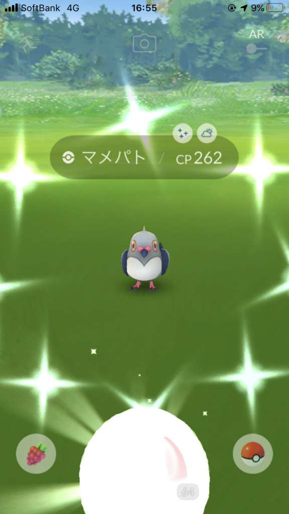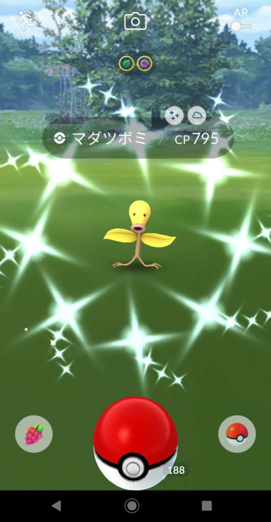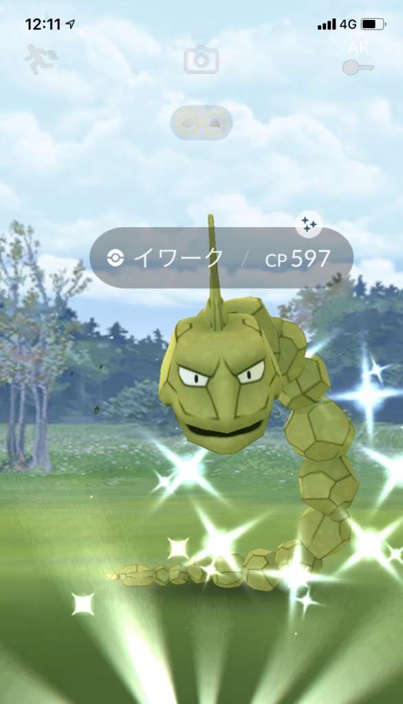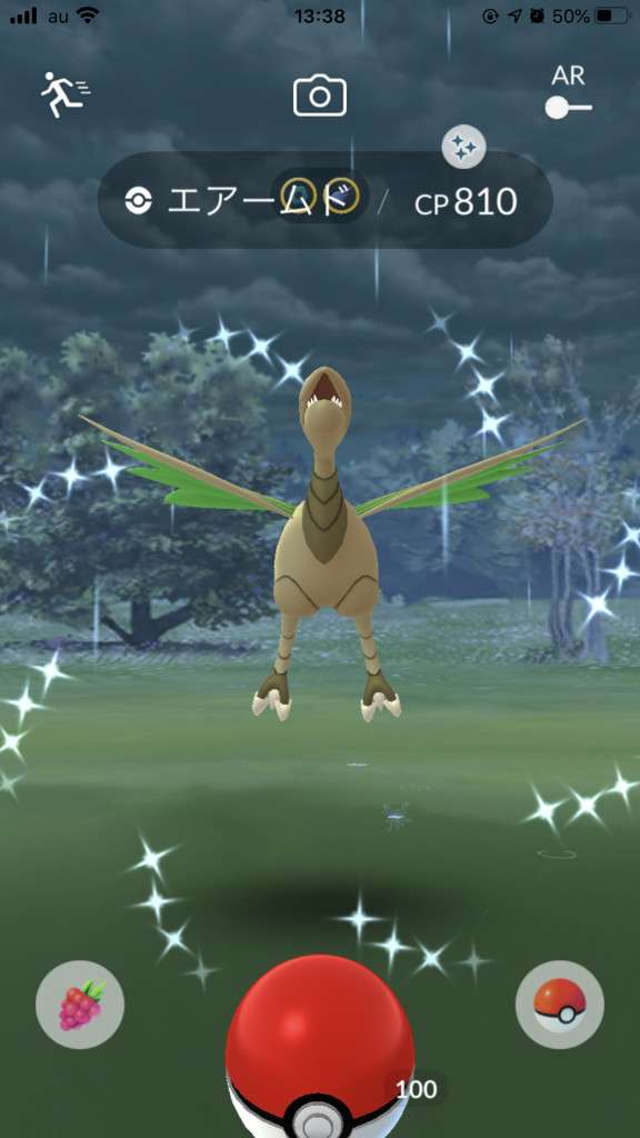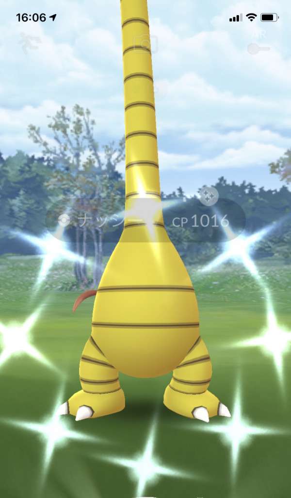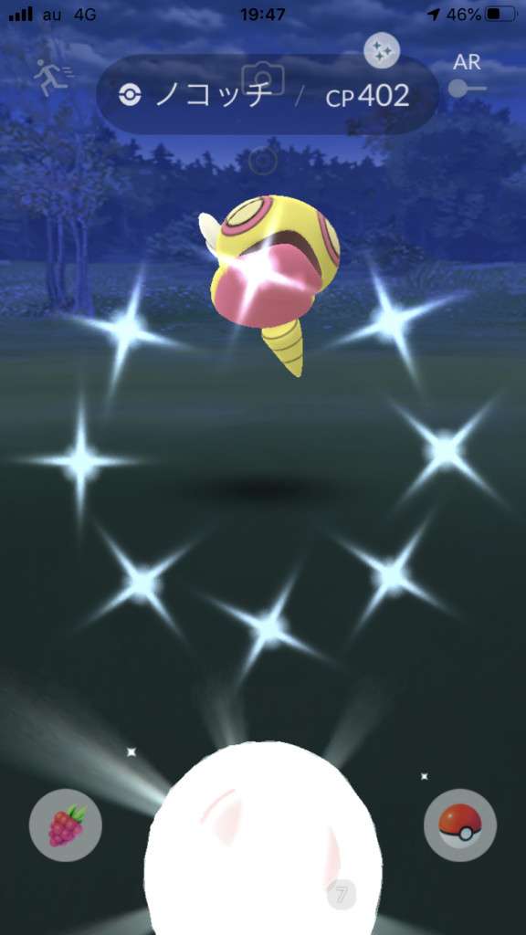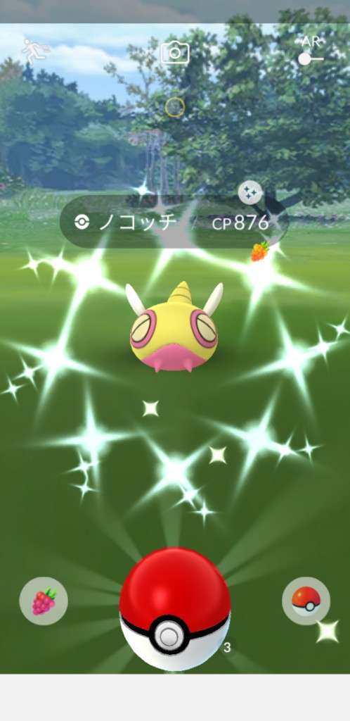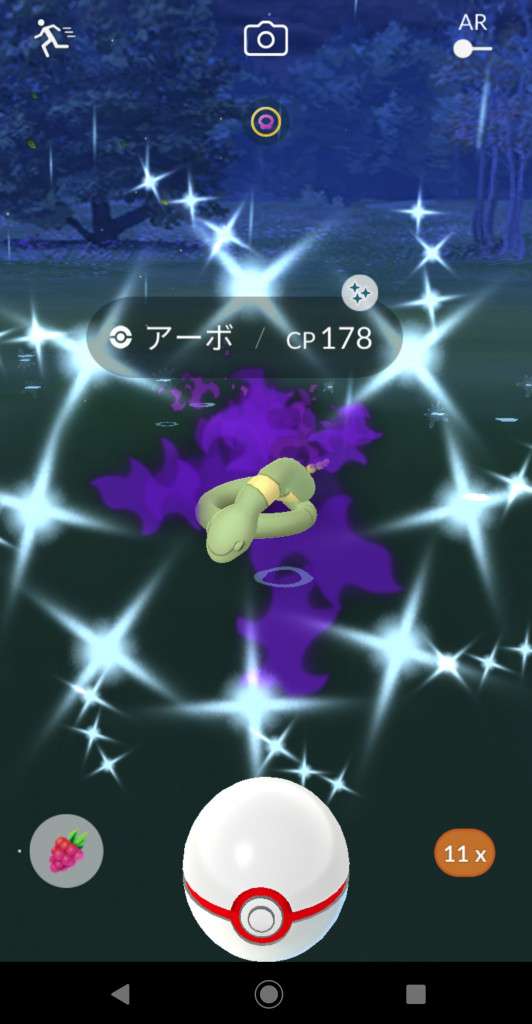・色違い出現したら、右上「AR+」のON・OFF切り替えで、タイミング良く写るまで何回も挑戦