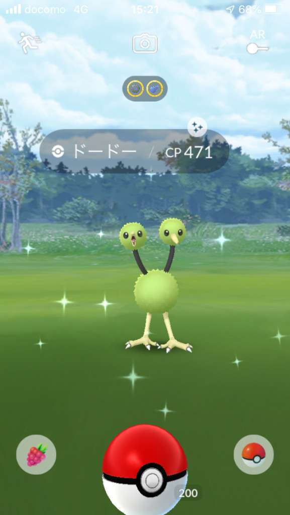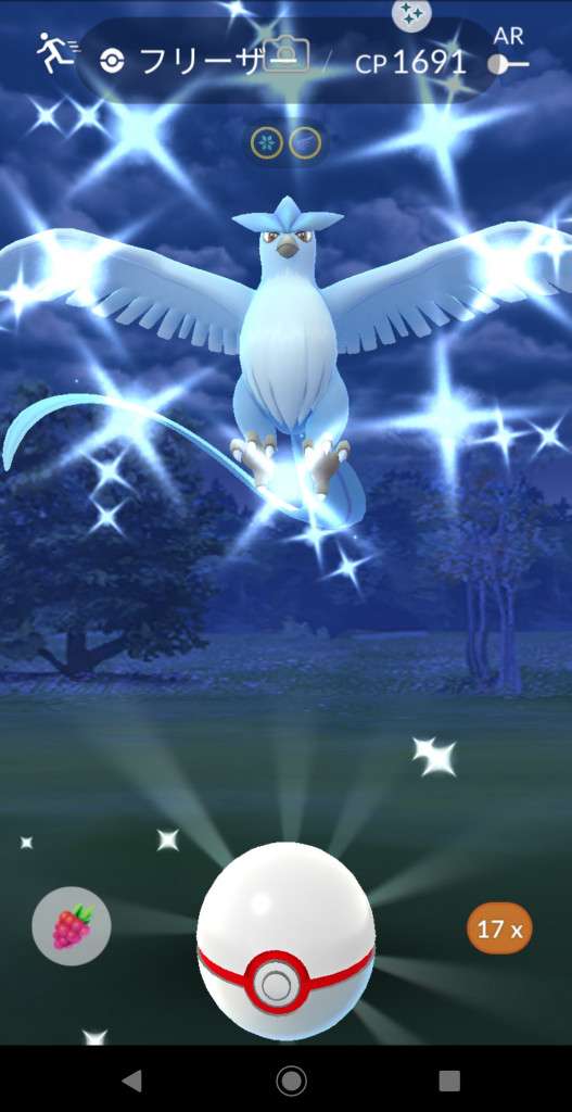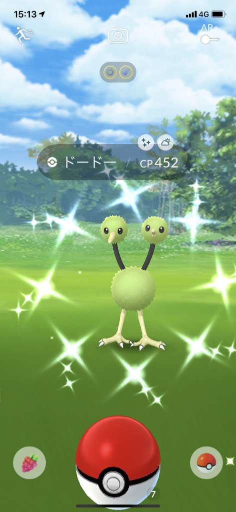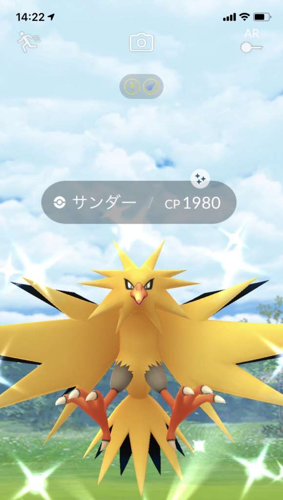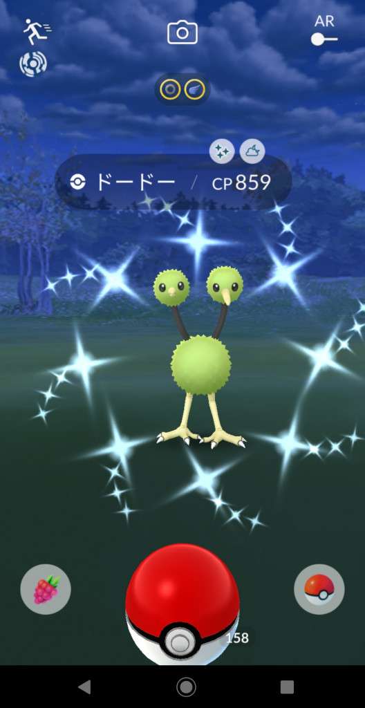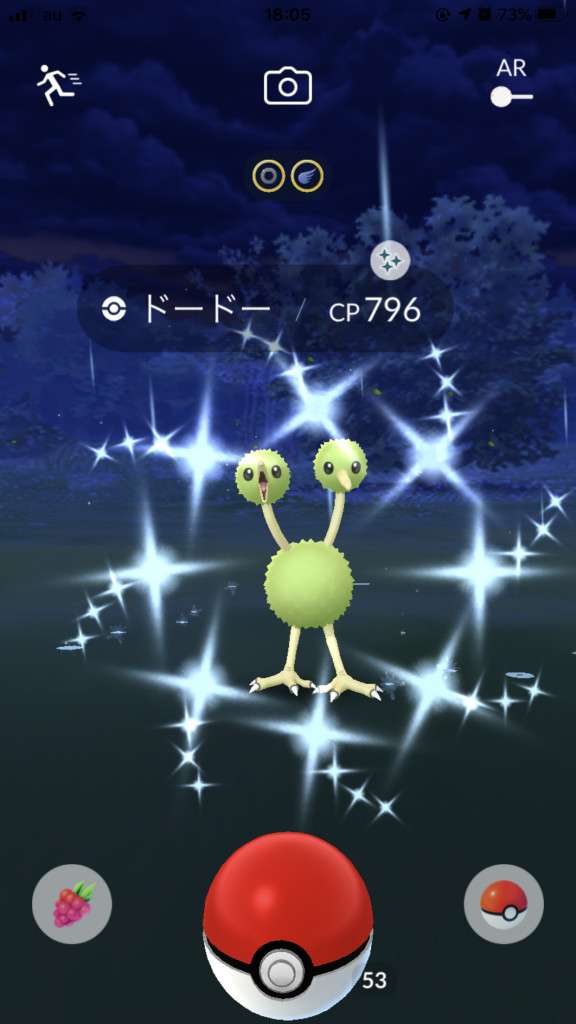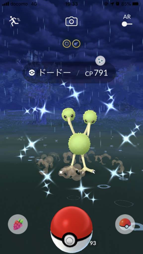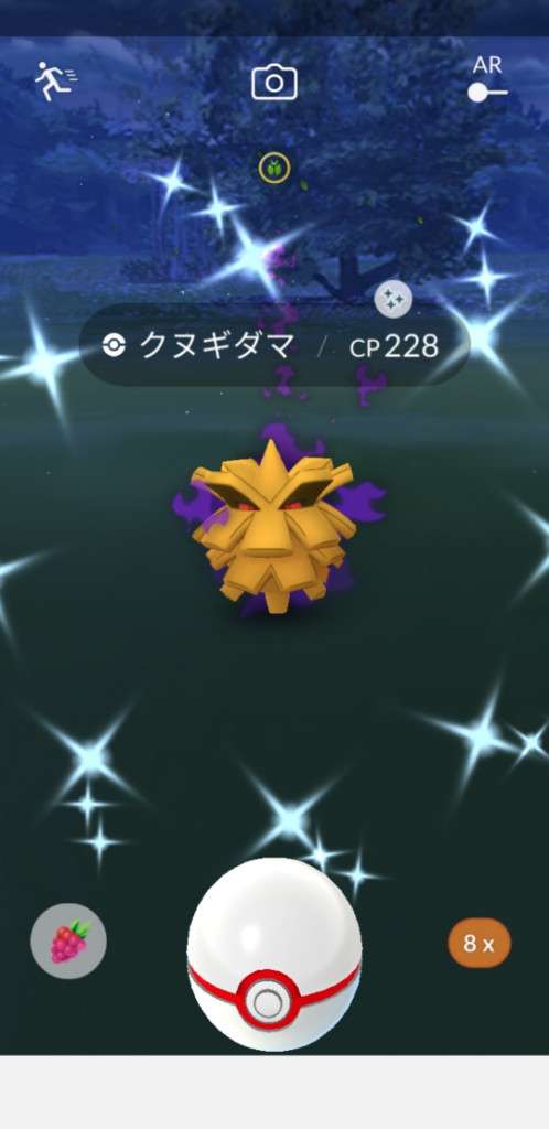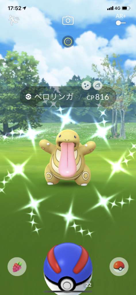 ・色違い出現したら、右上「AR+」のON・OFF切り替えで、タイミング良く写るまで何回も挑戦