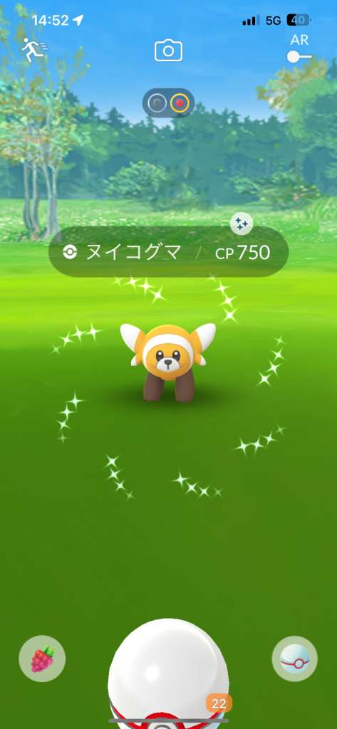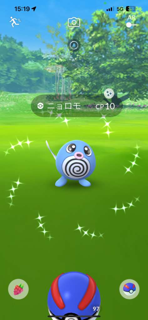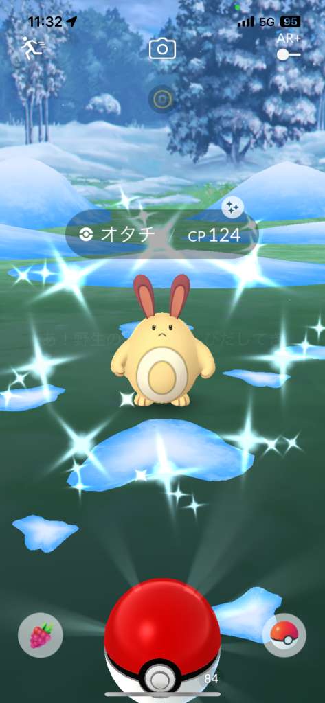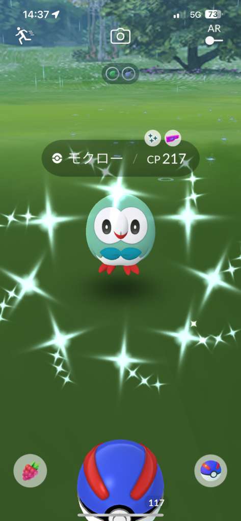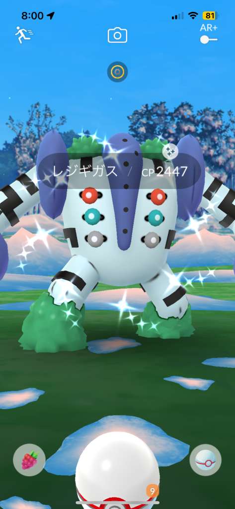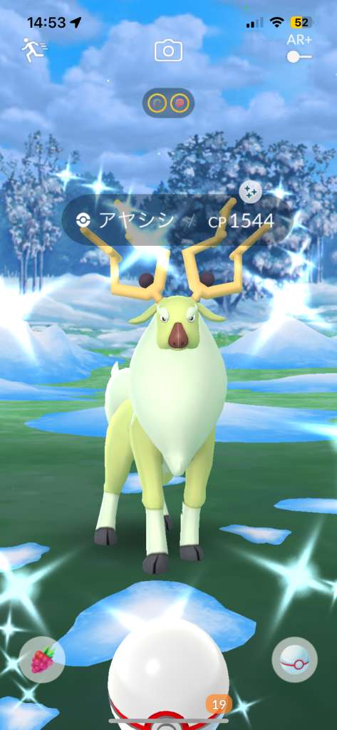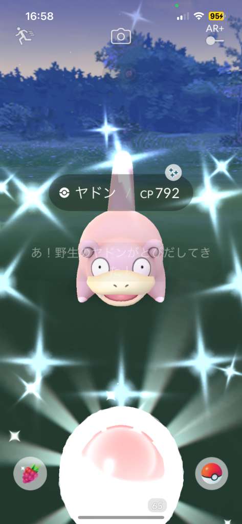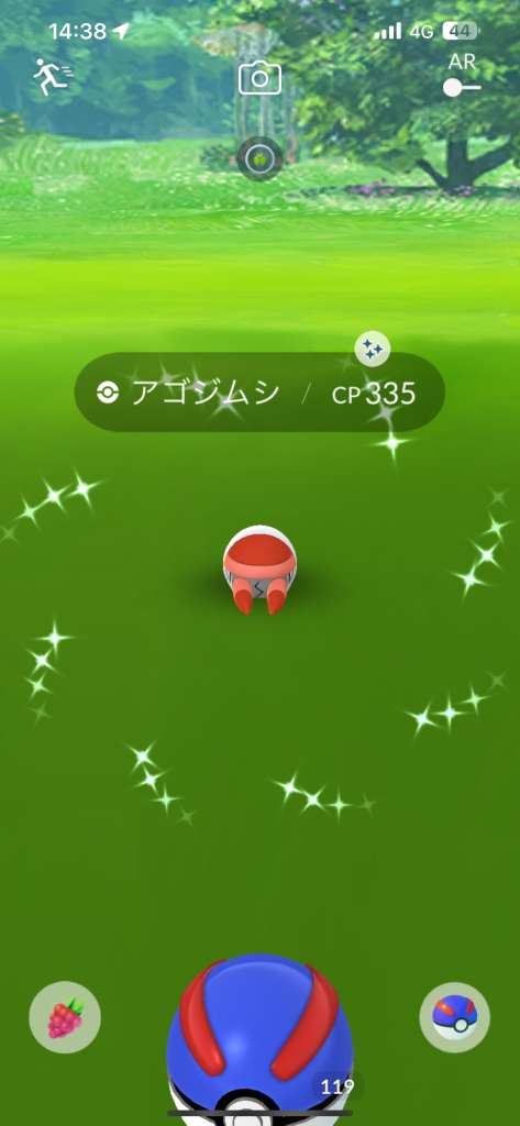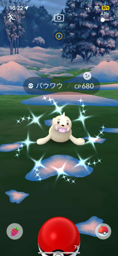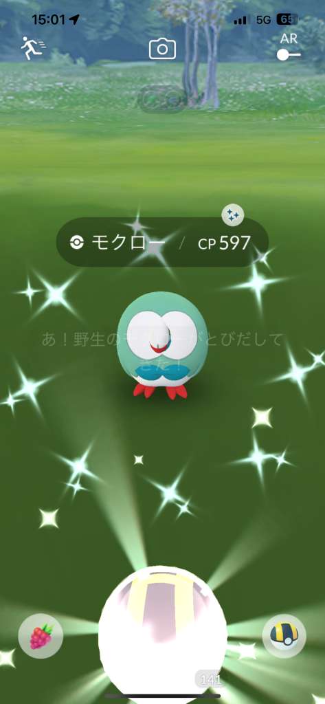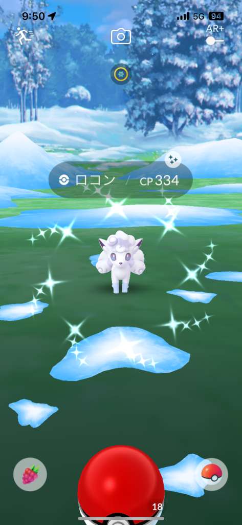 ・色違い出現したら、右上「AR+」のON・OFF切り替えで、タイミング良く写るまで何回も挑戦