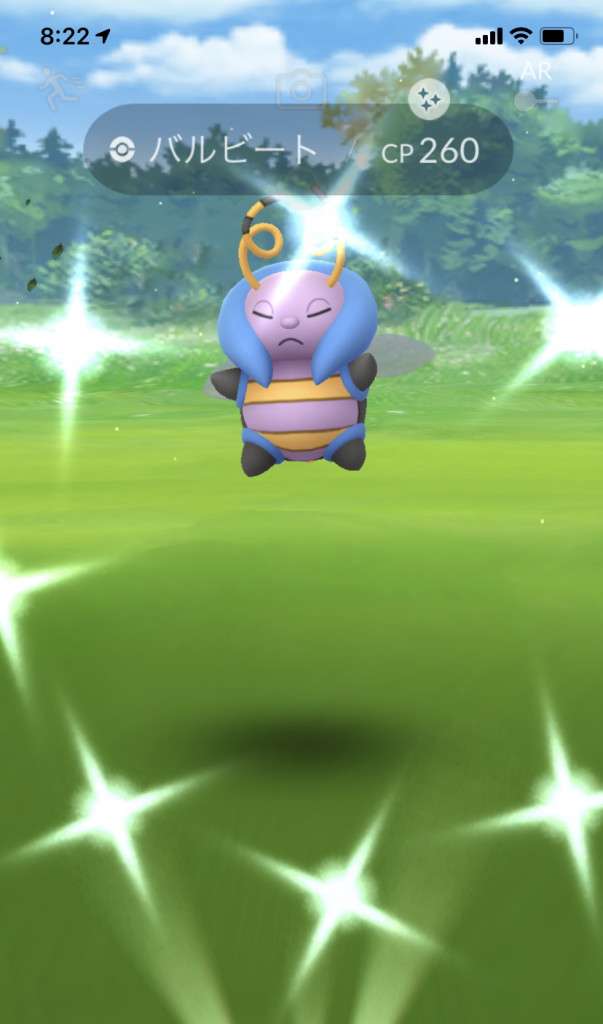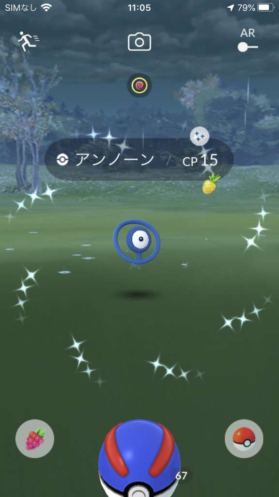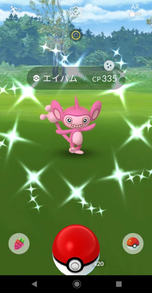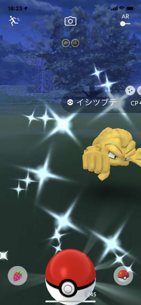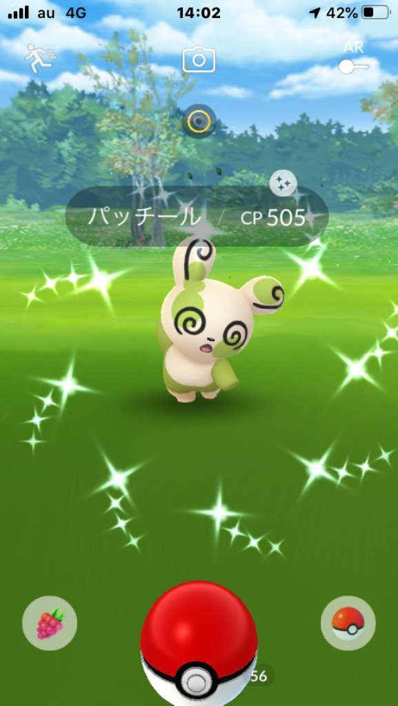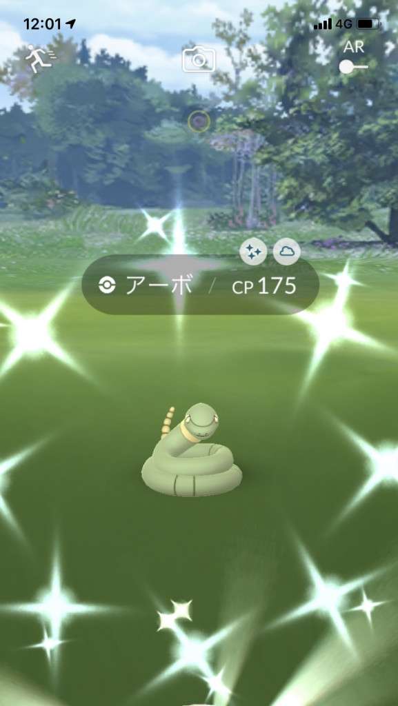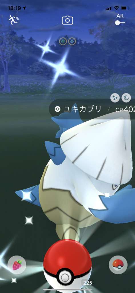 ・色違い出現したら、右上「AR+」のON・OFF切り替えで、タイミング良く写るまで何回も挑戦