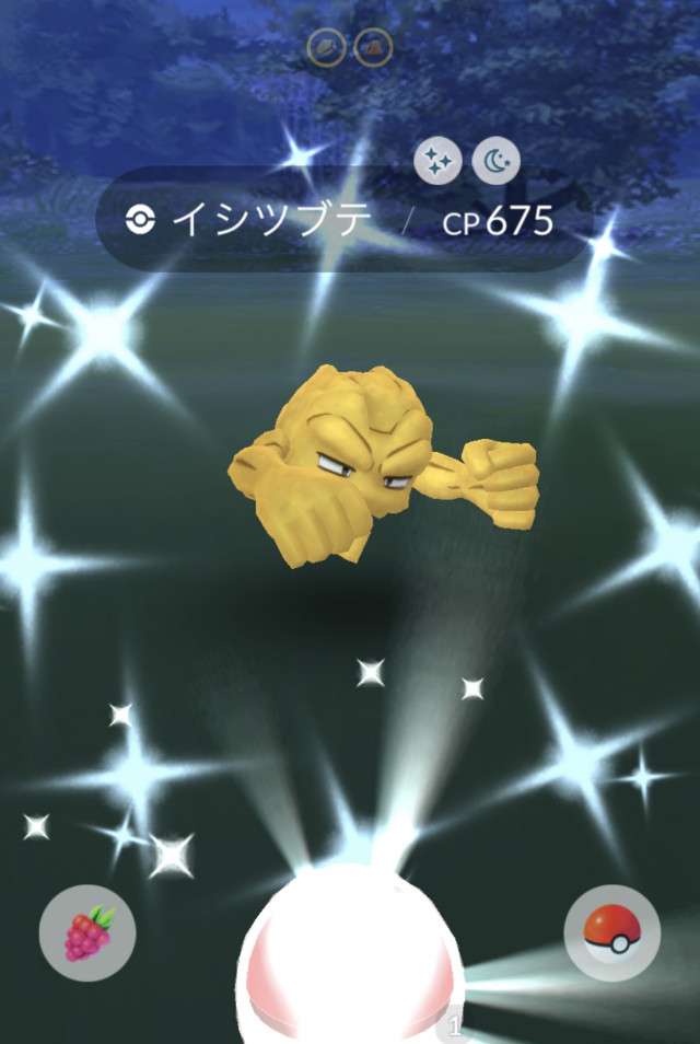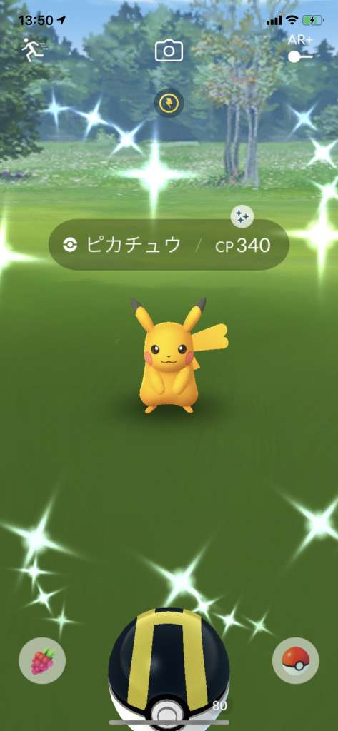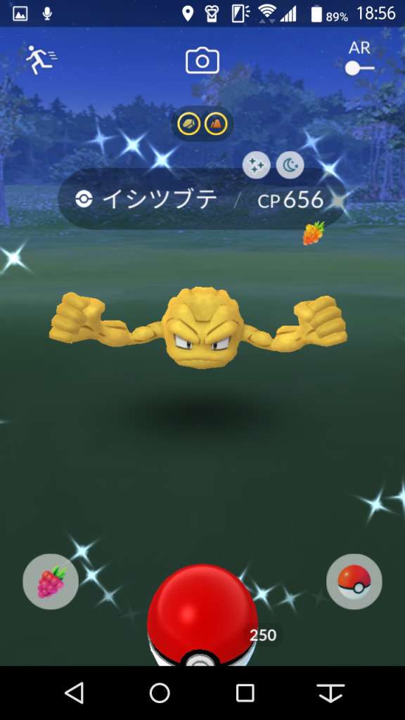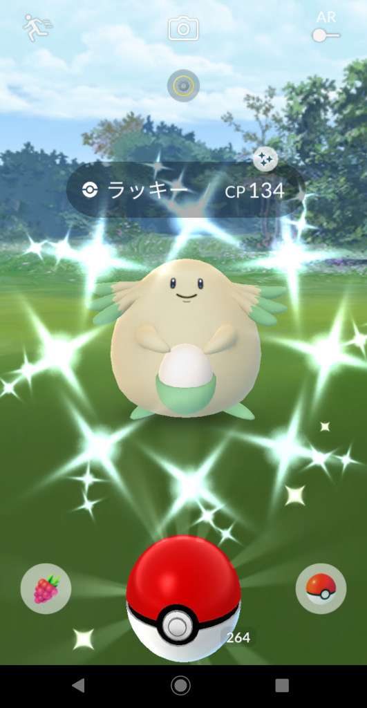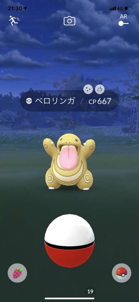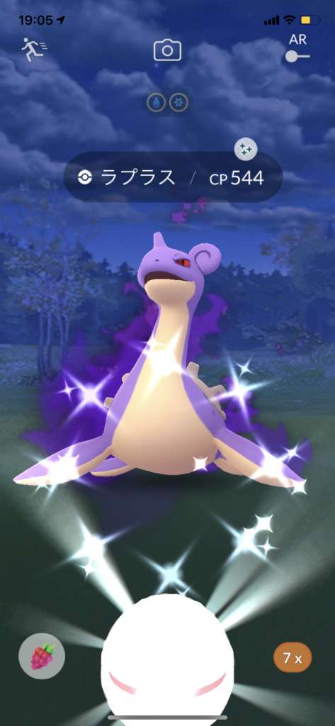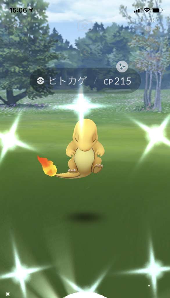 ・色違い出現したら、右上「AR+」のON・OFF切り替えで、タイミング良く写るまで何回も挑戦