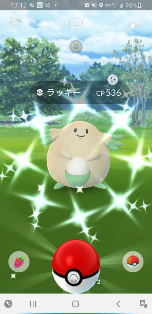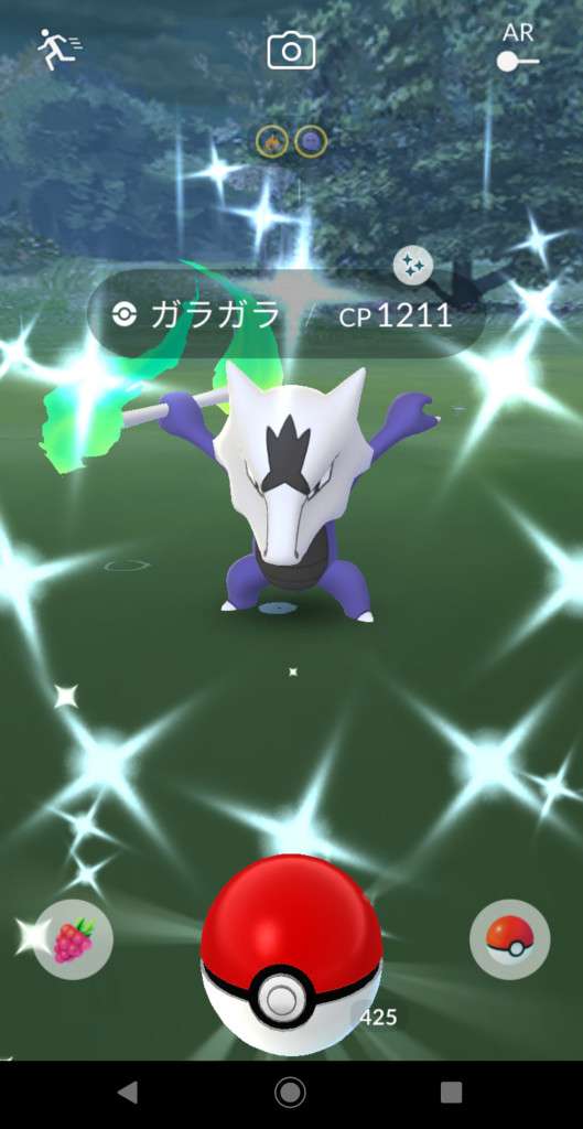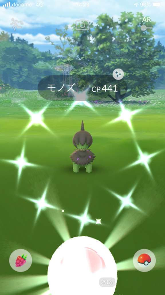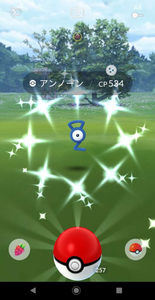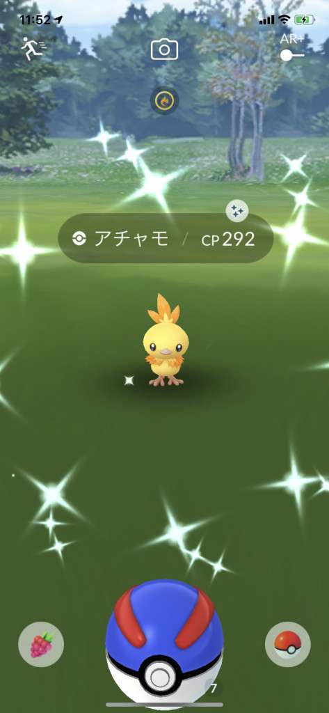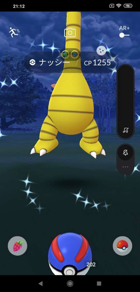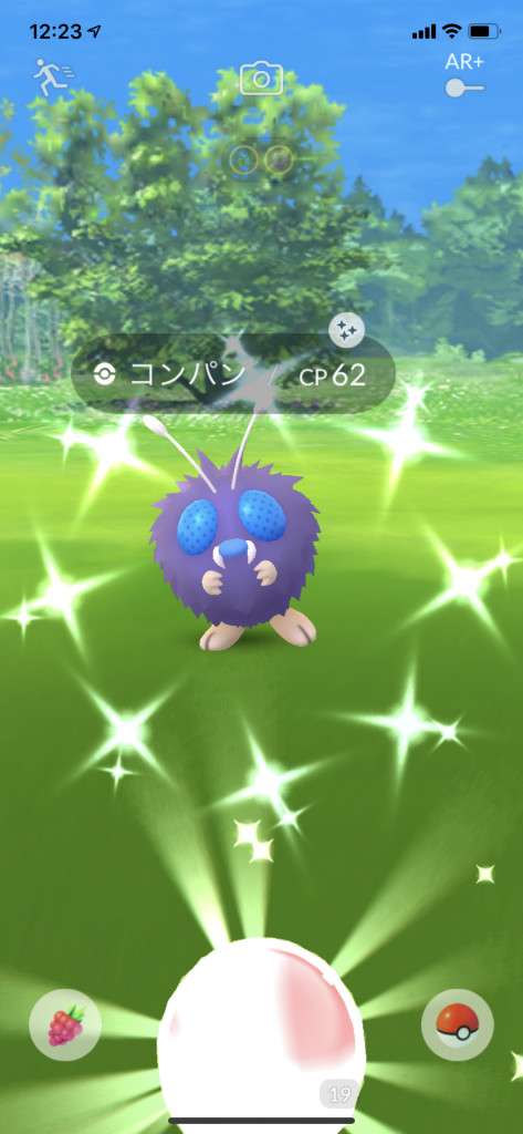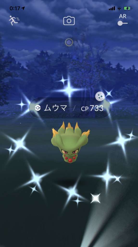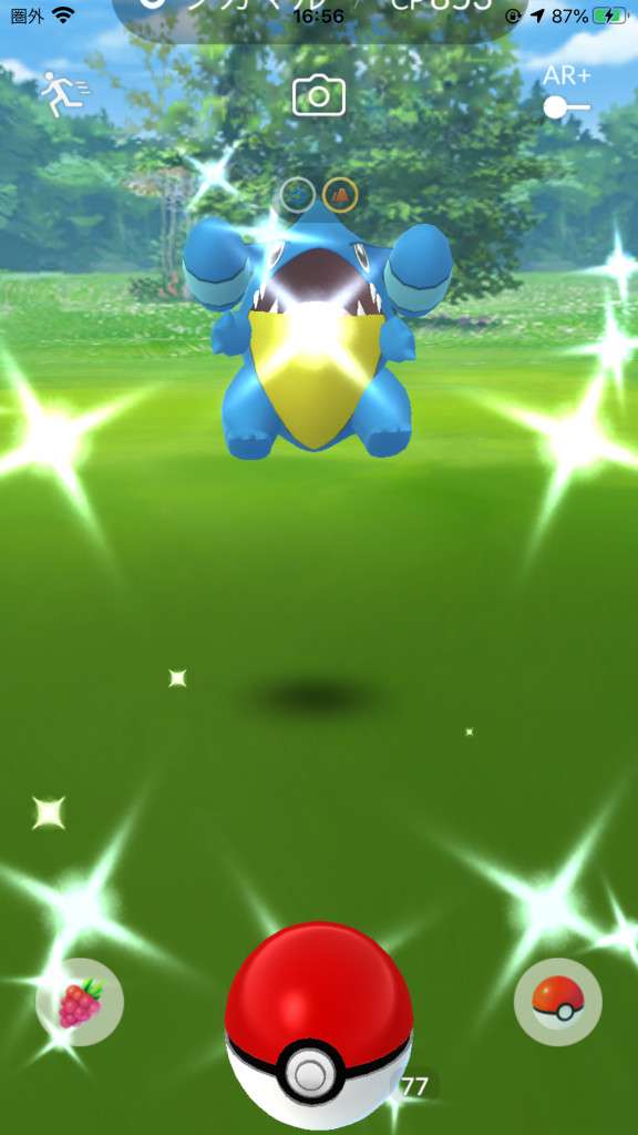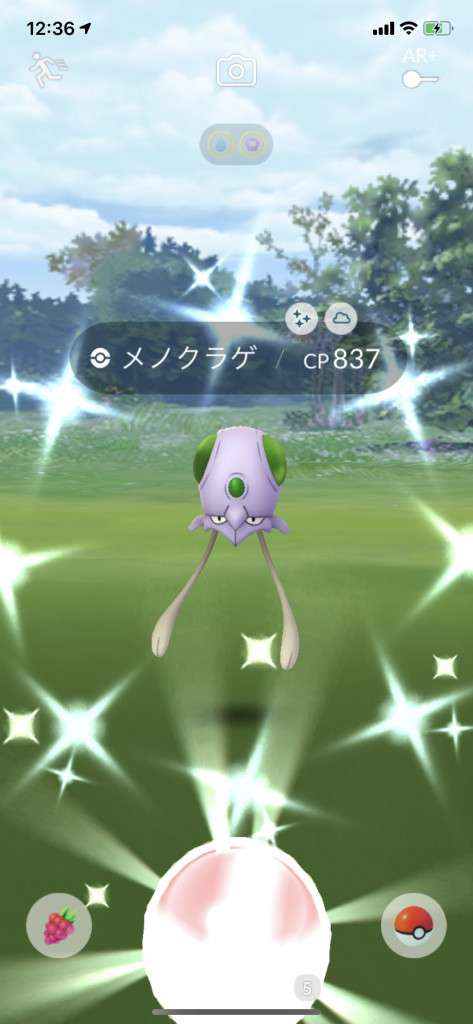 ・色違い出現したら、右上「AR+」のON・OFF切り替えで、タイミング良く写るまで何回も挑戦