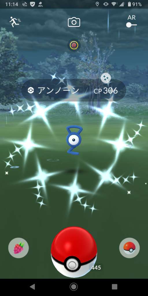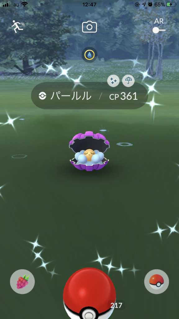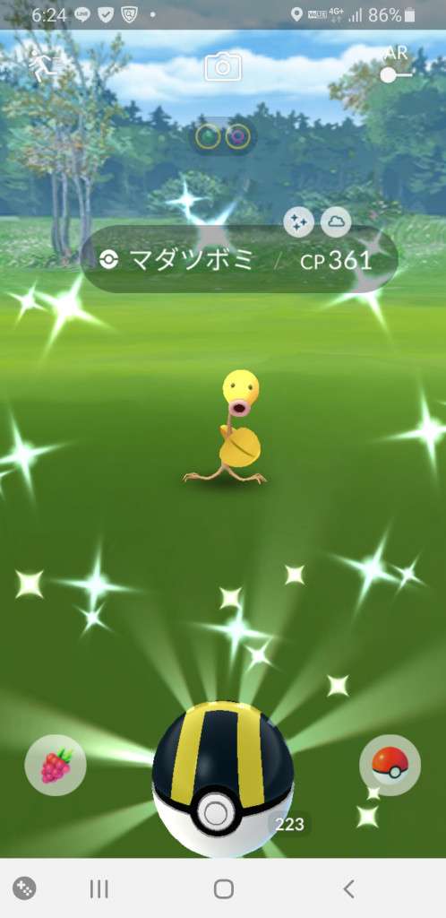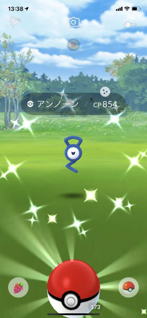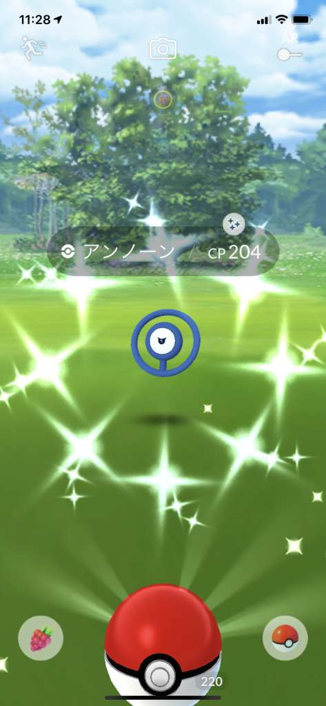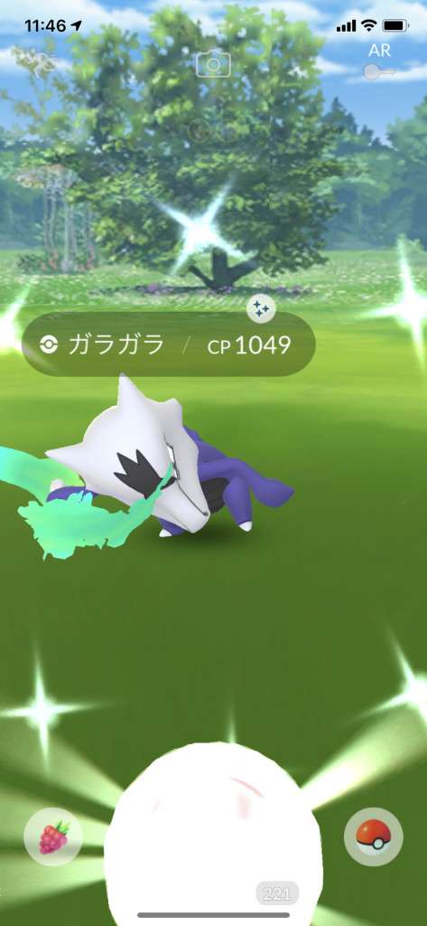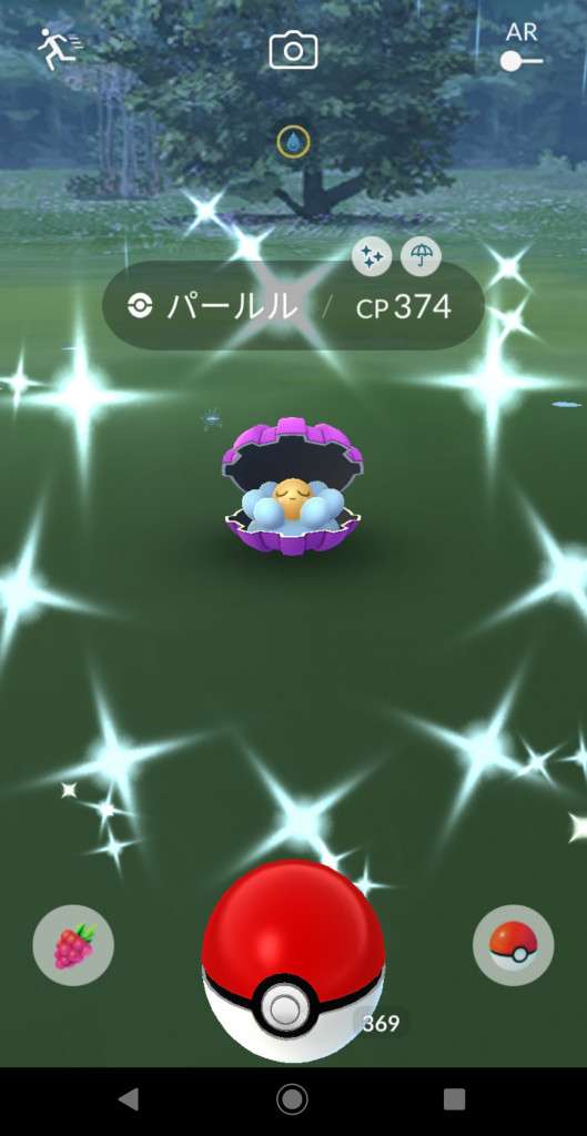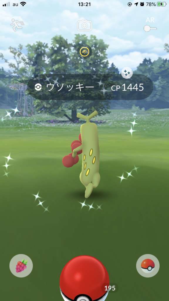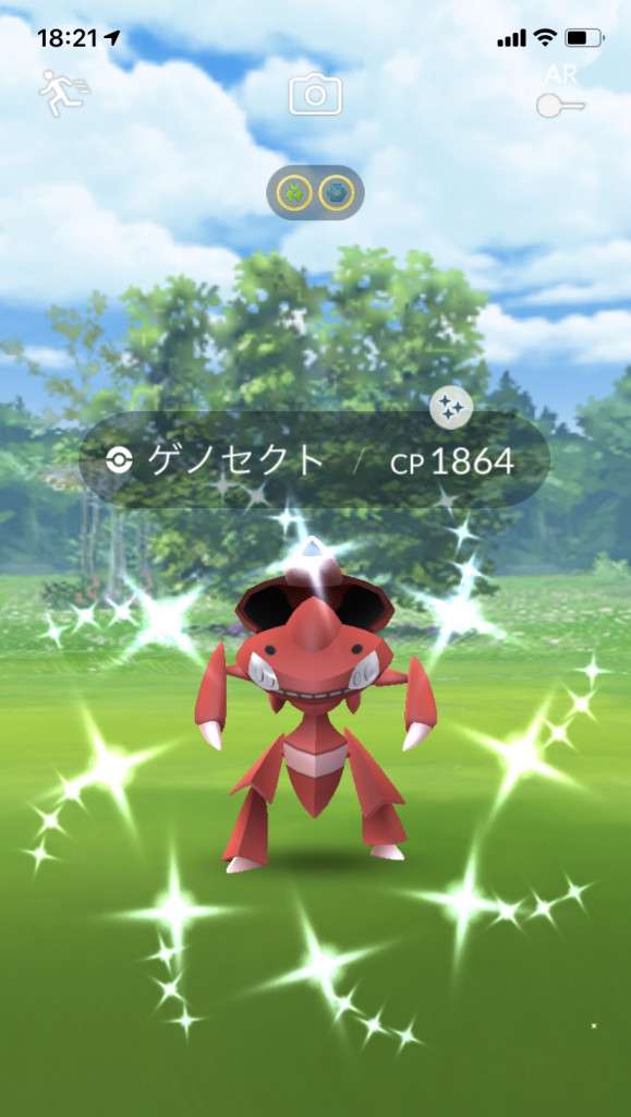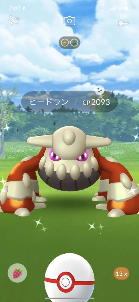 ・色違い出現したら、右上「AR+」のON・OFF切り替えで、タイミング良く写るまで何回も挑戦