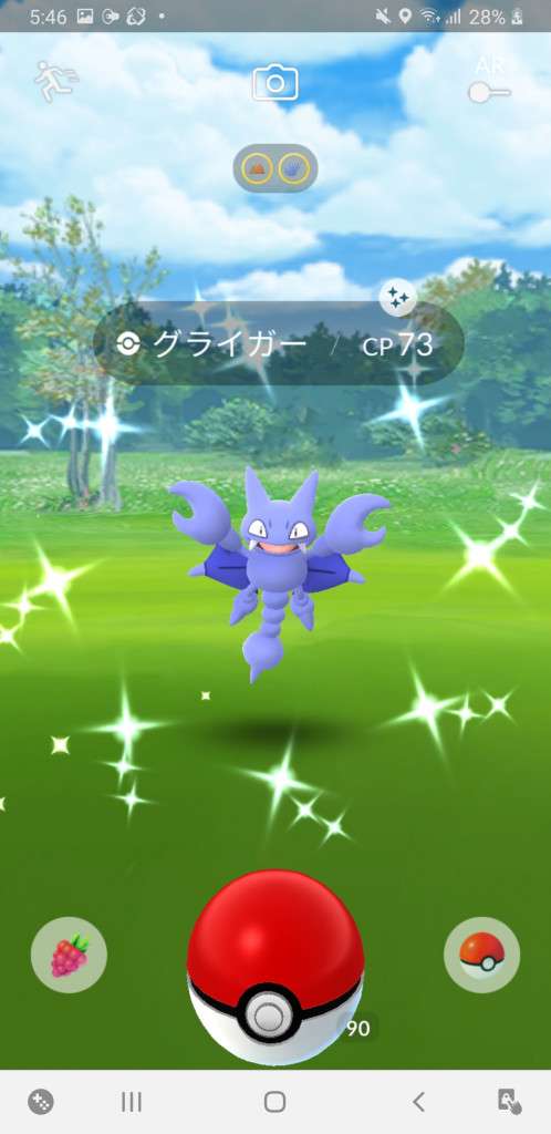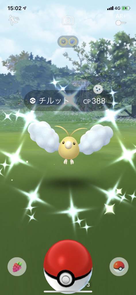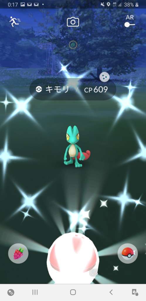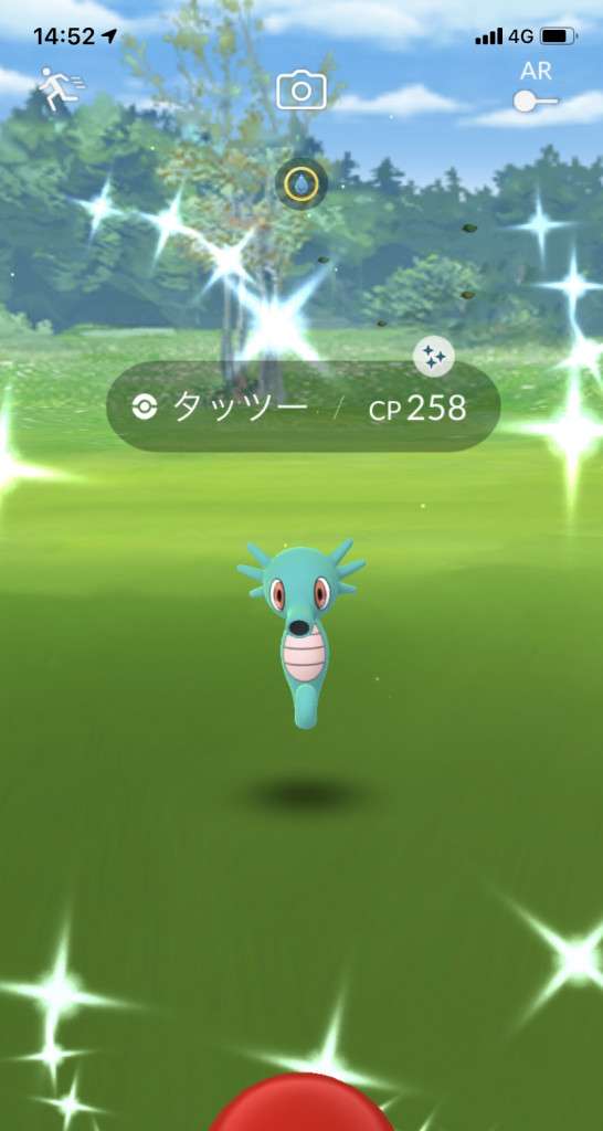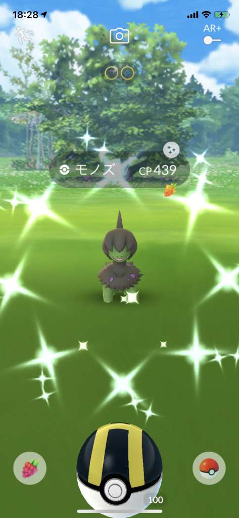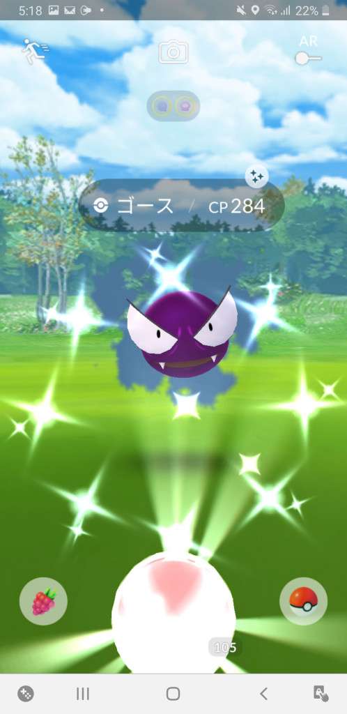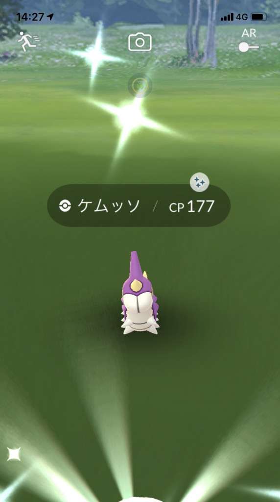 ・色違い出現したら、右上「AR+」のON・OFF切り替えで、タイミング良く写るまで何回も挑戦
