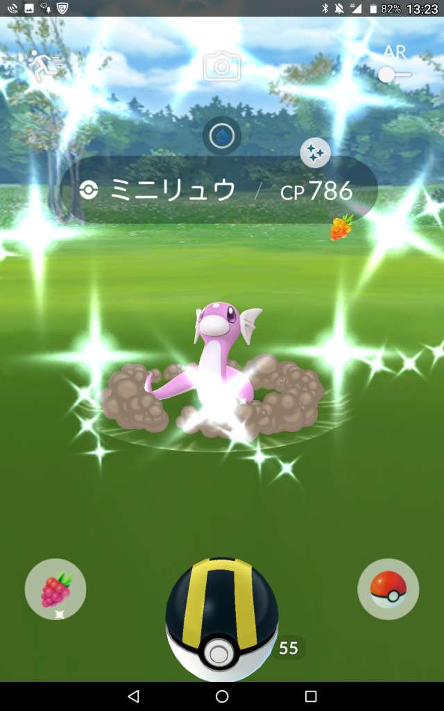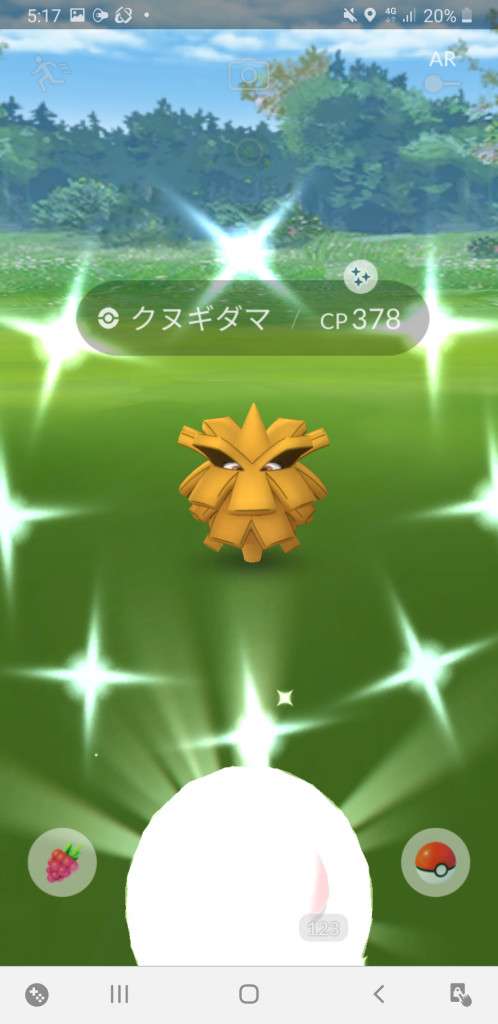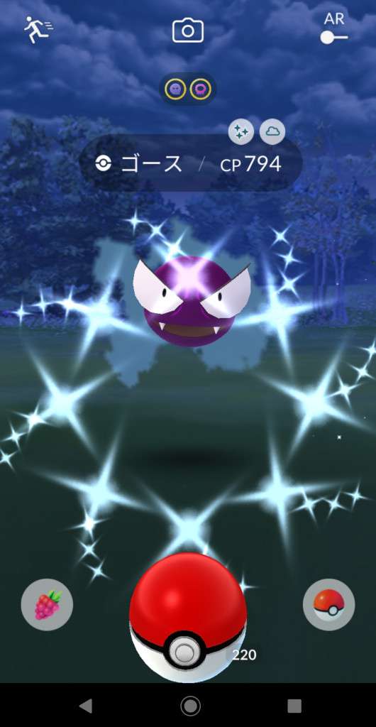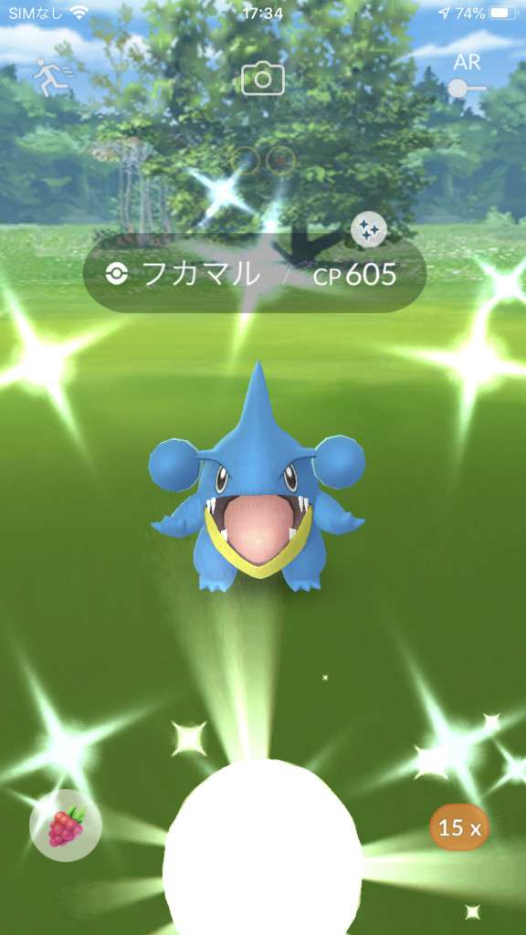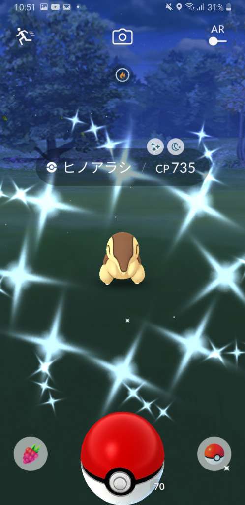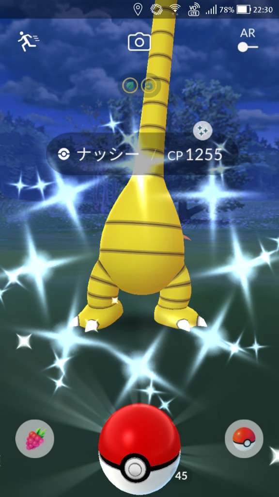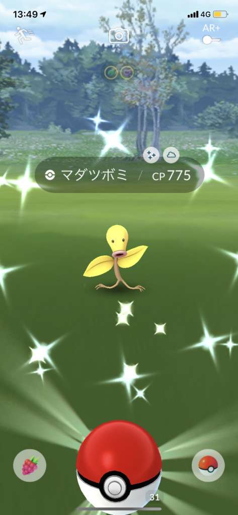 ・色違い出現したら、右上「AR+」のON・OFF切り替えで、タイミング良く写るまで何回も挑戦
