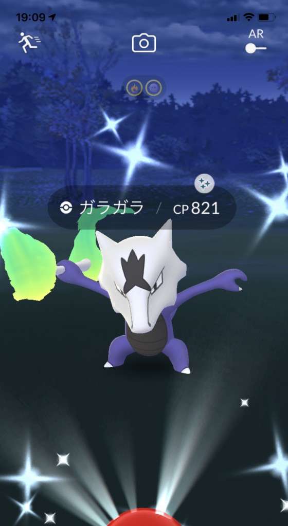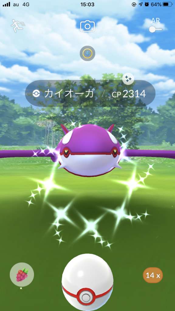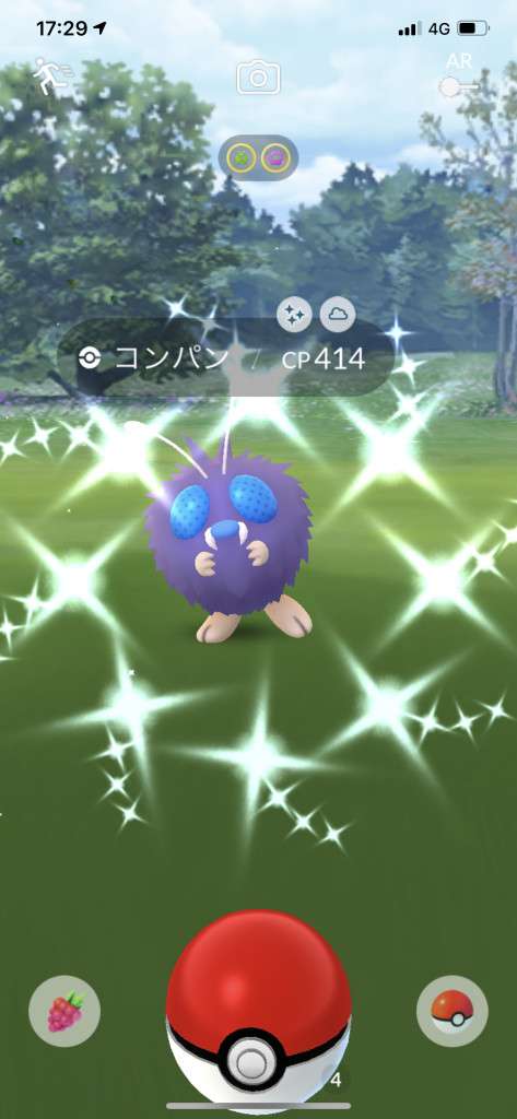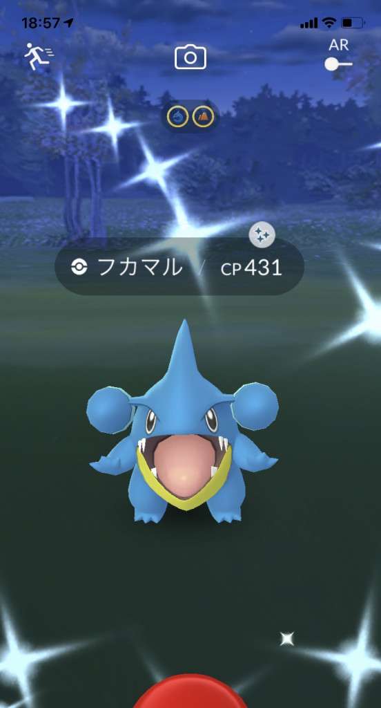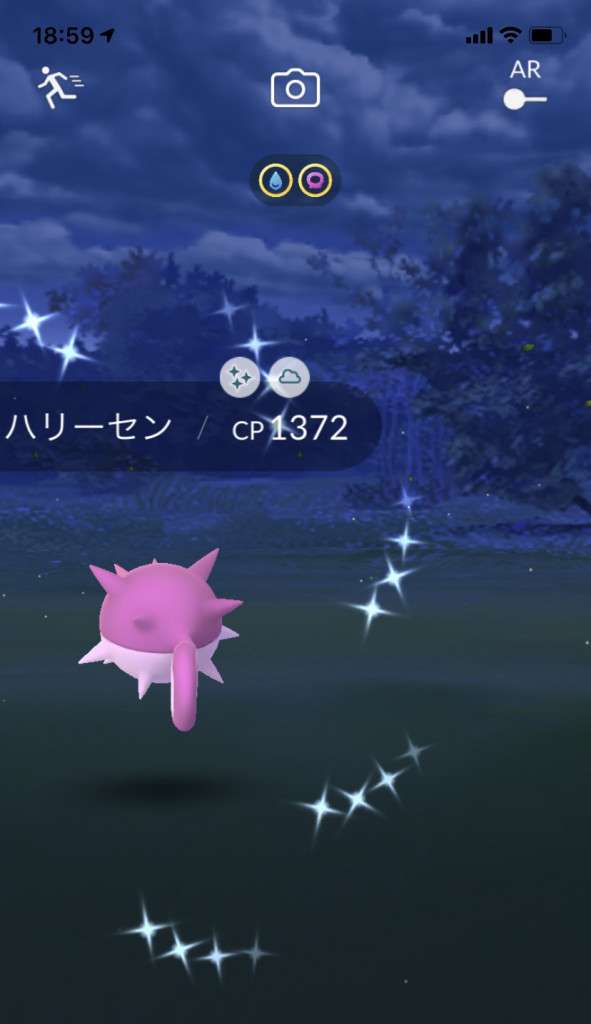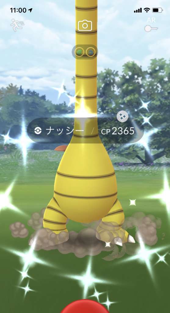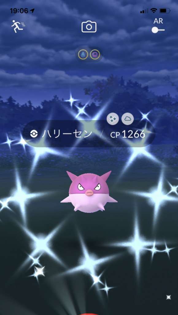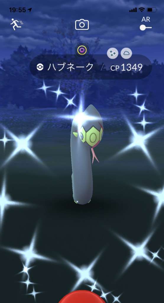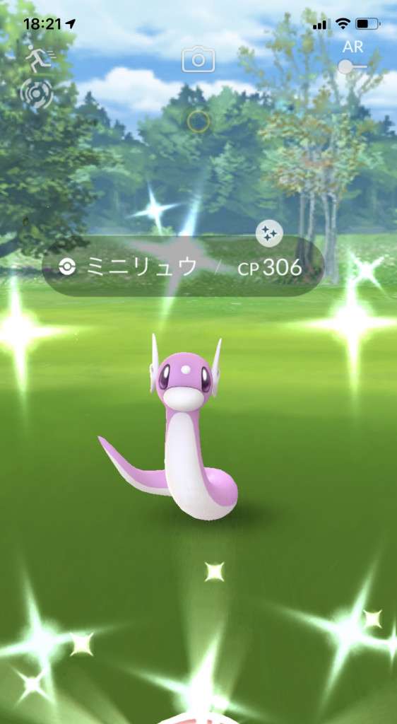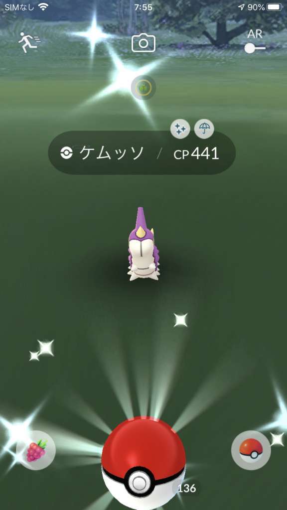 ・色違い出現したら、右上「AR+」のON・OFF切り替えで、タイミング良く写るまで何回も挑戦