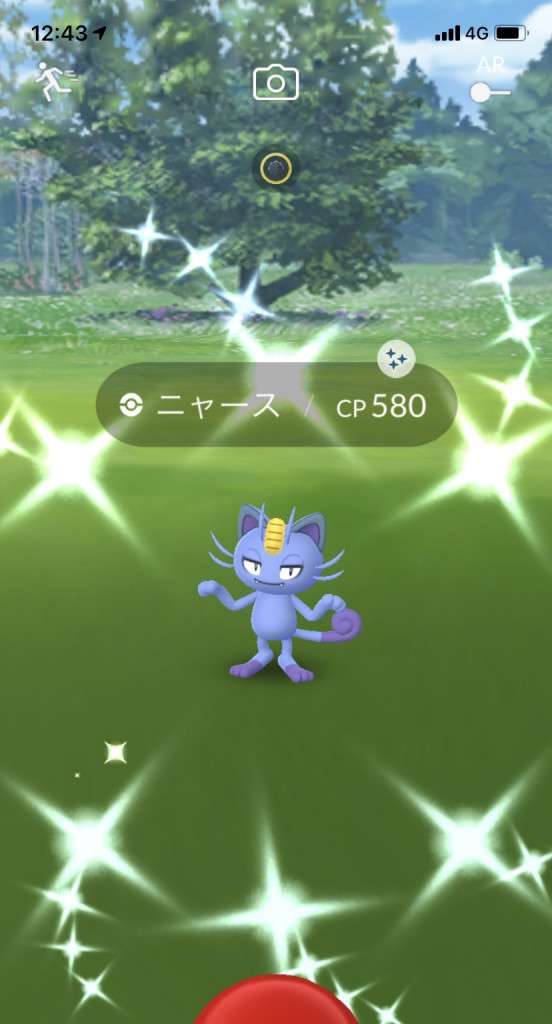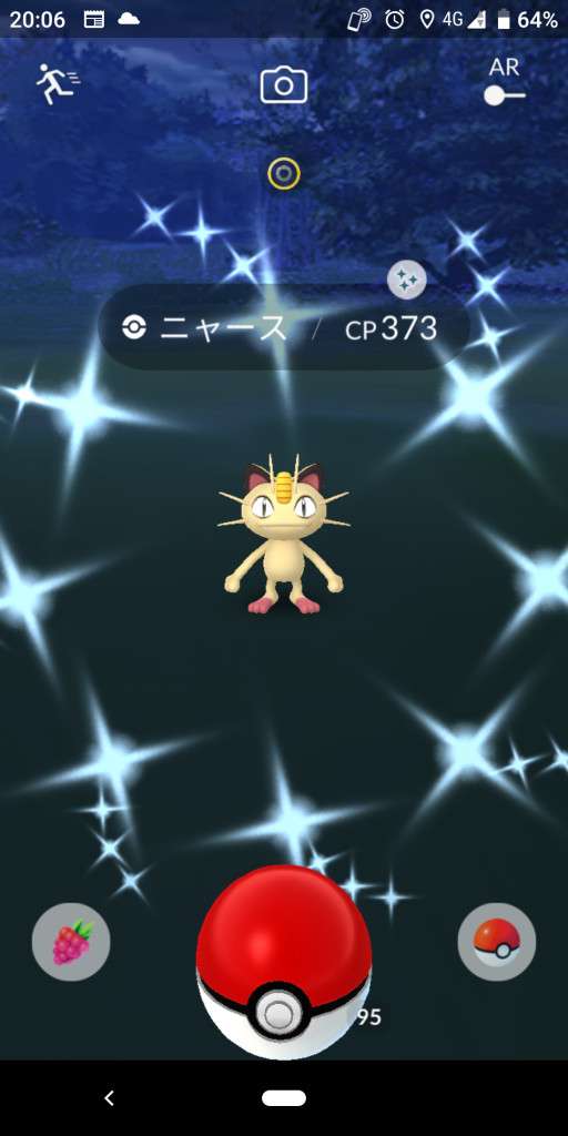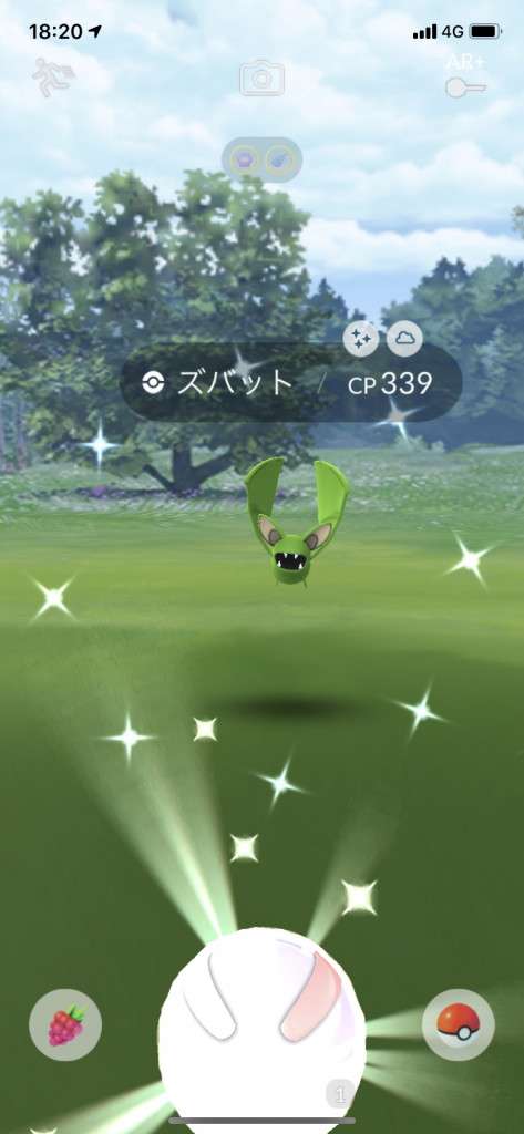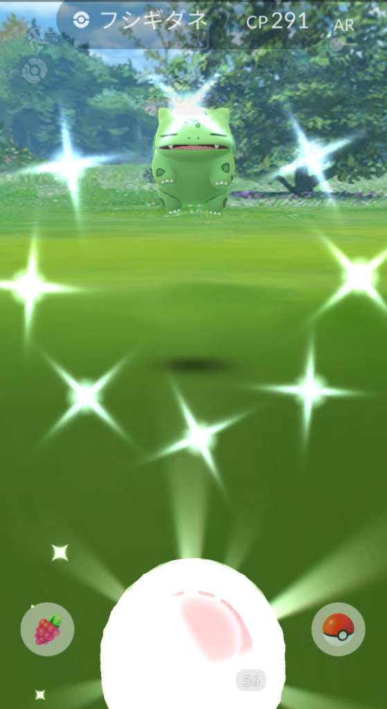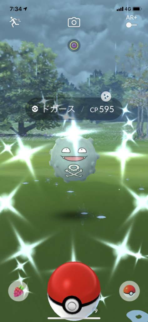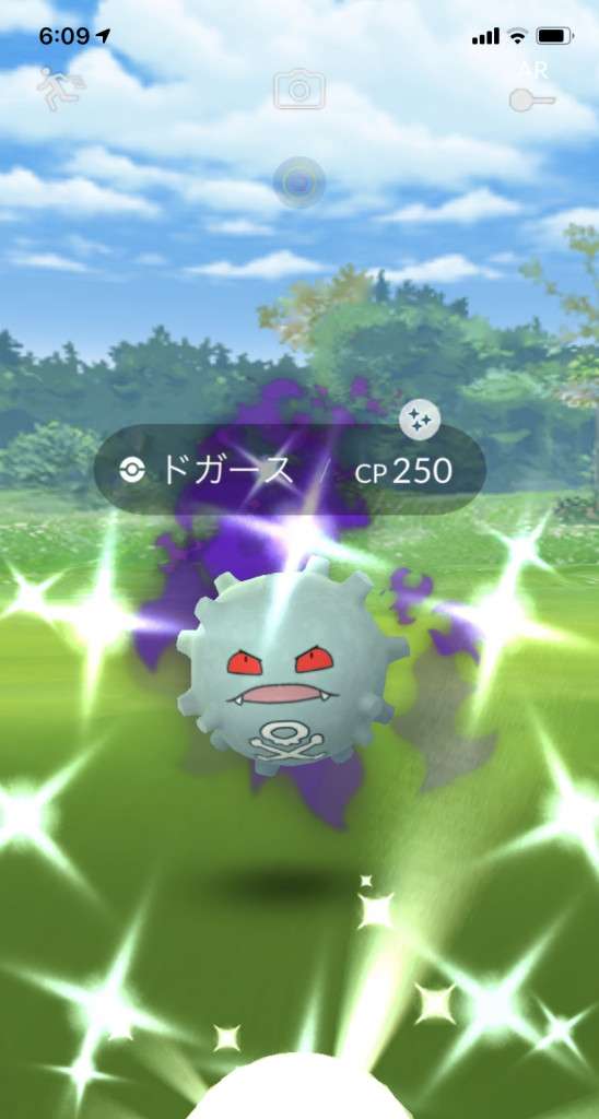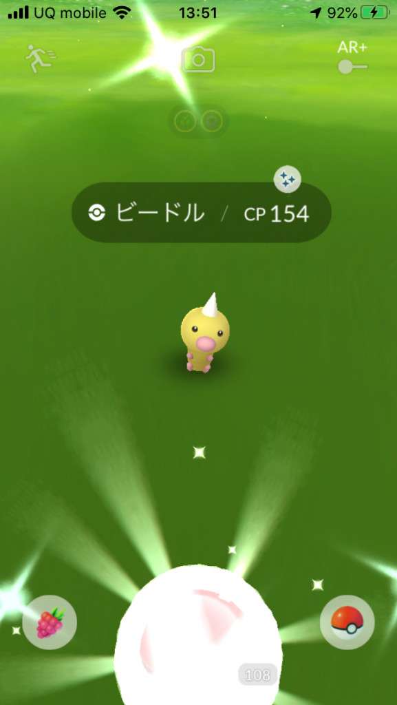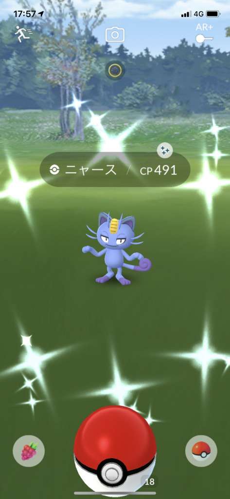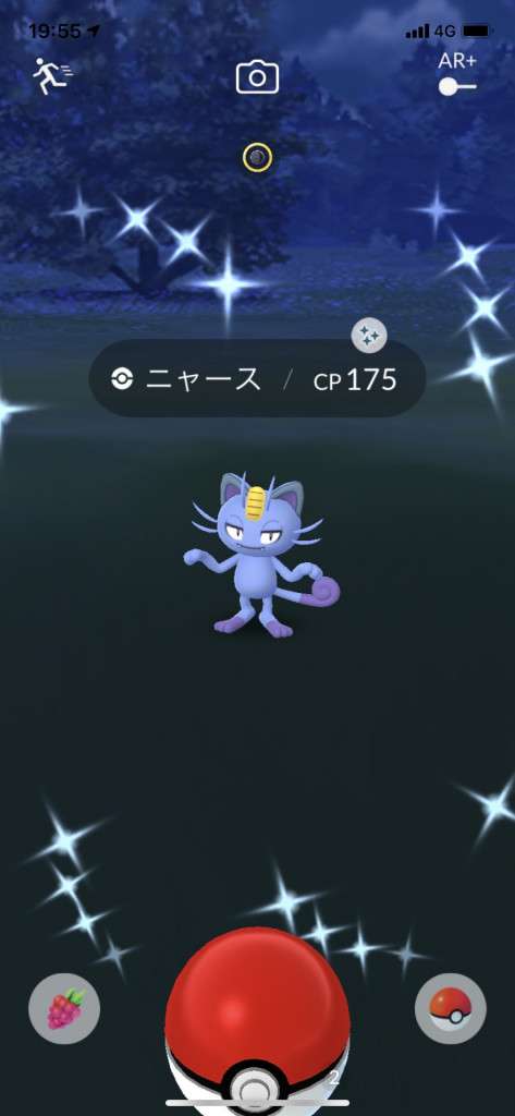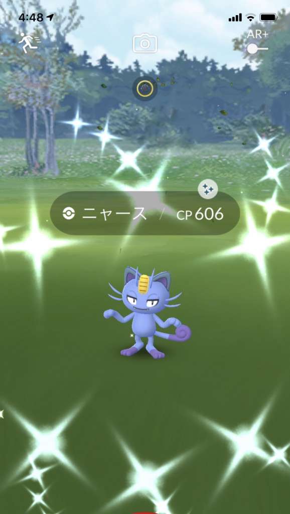 ・色違い出現したら、右上「AR+」のON・OFF切り替えで、タイミング良く写るまで何回も挑戦