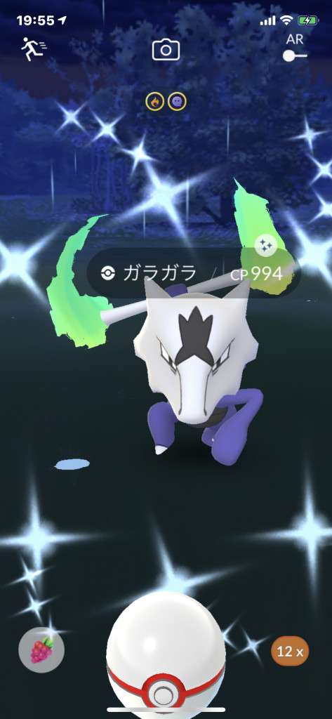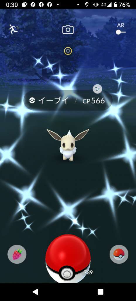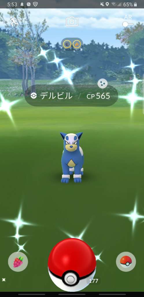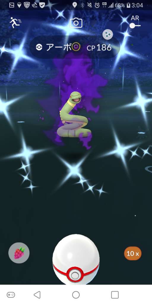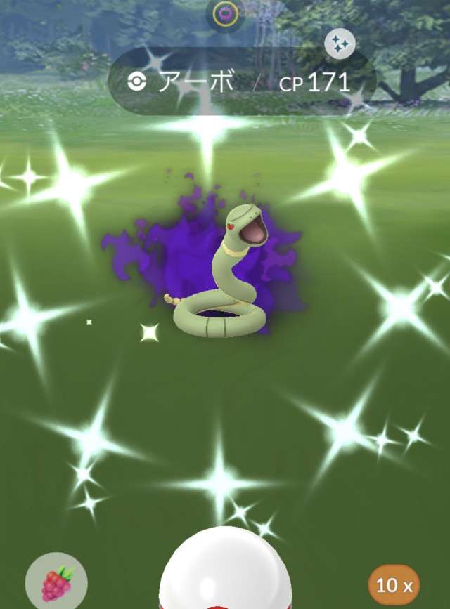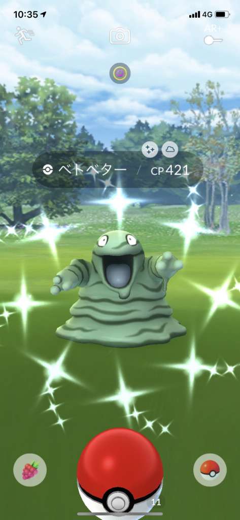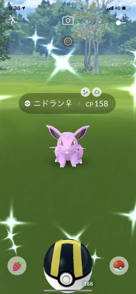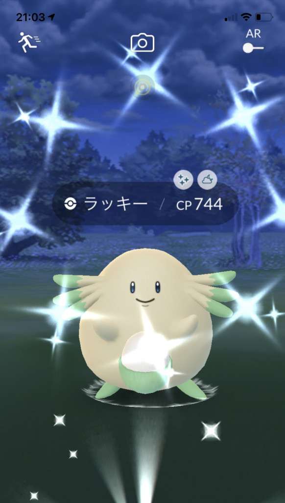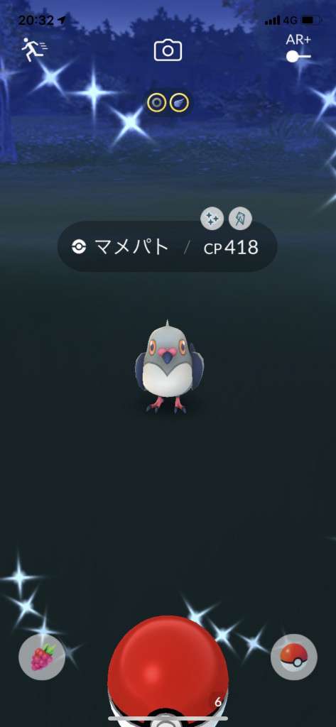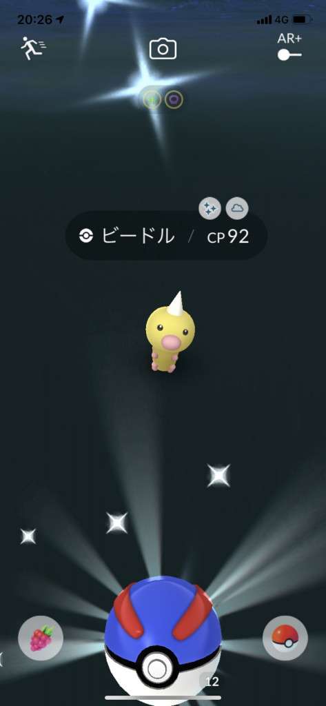 ・色違い出現したら、右上「AR+」のON・OFF切り替えで、タイミング良く写るまで何回も挑戦