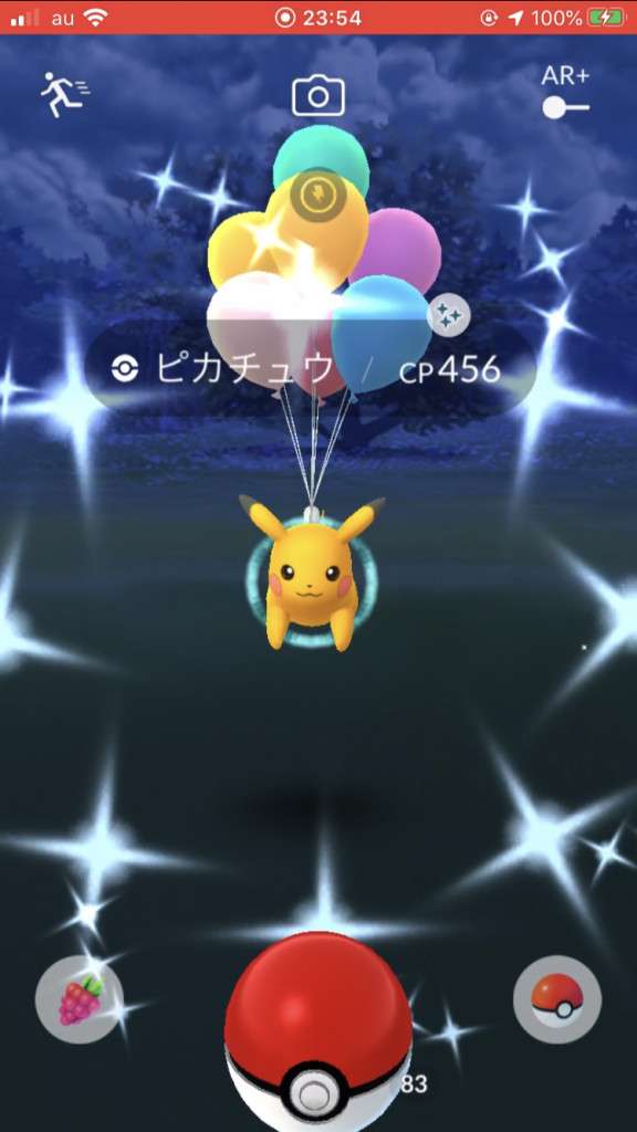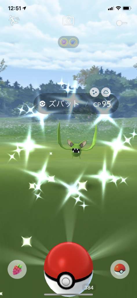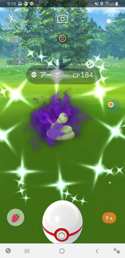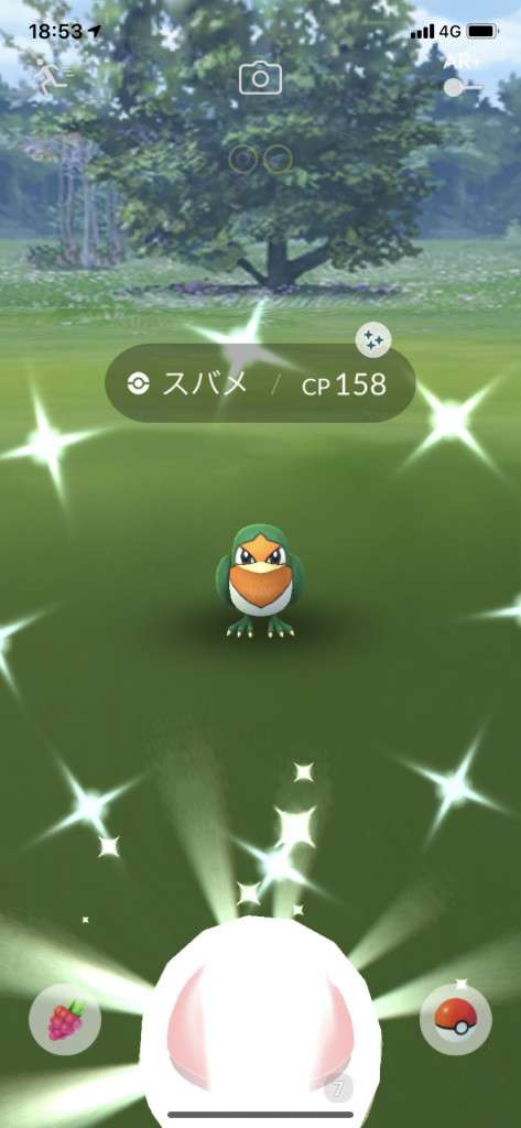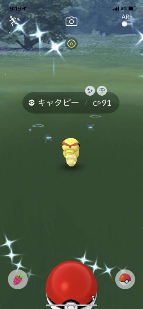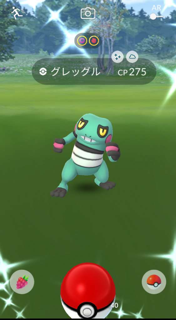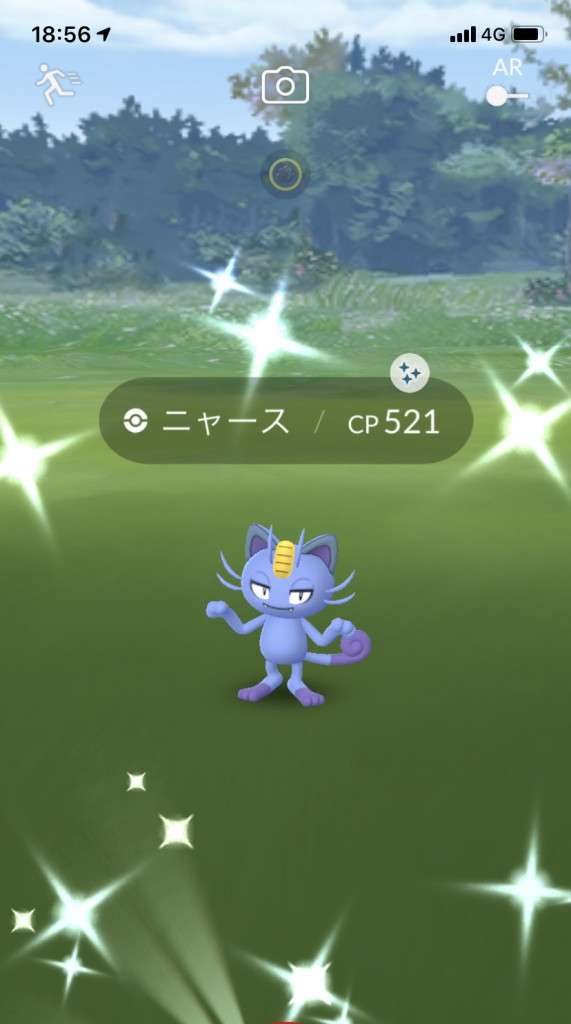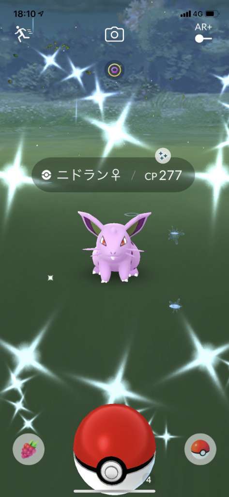 ・色違い出現したら、右上「AR+」のON・OFF切り替えで、タイミング良く写るまで何回も挑戦