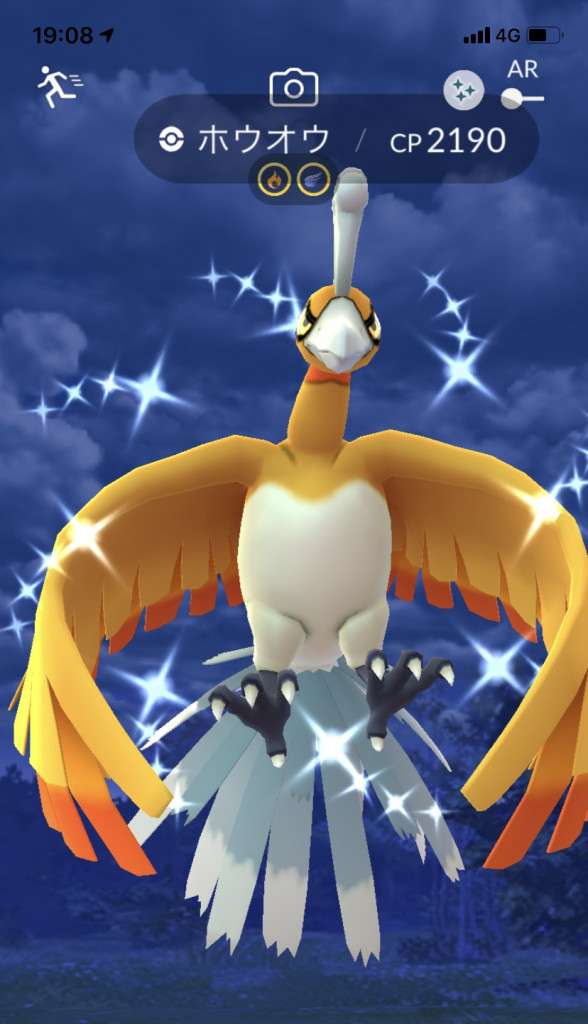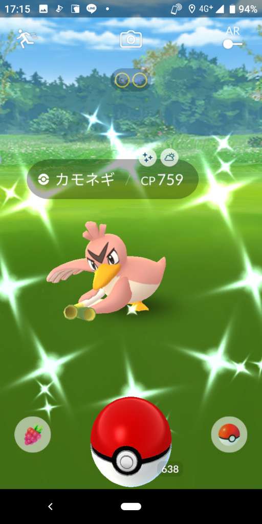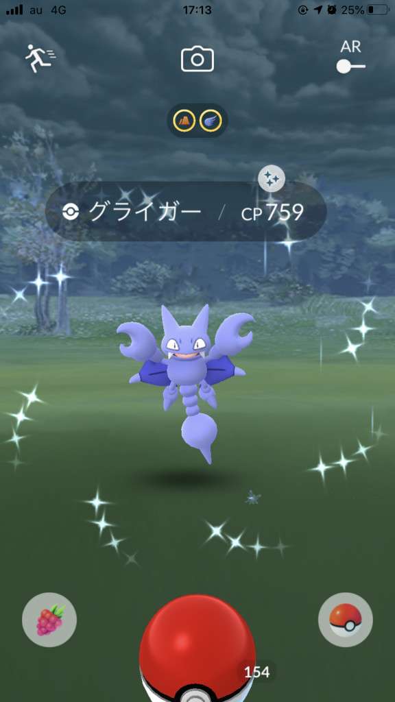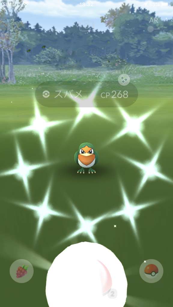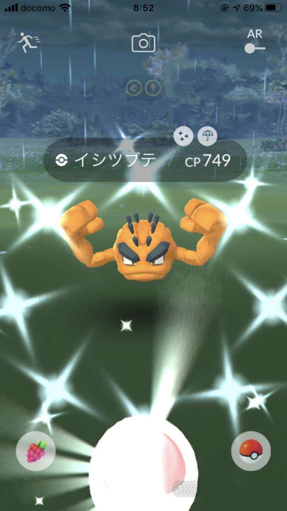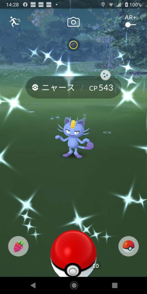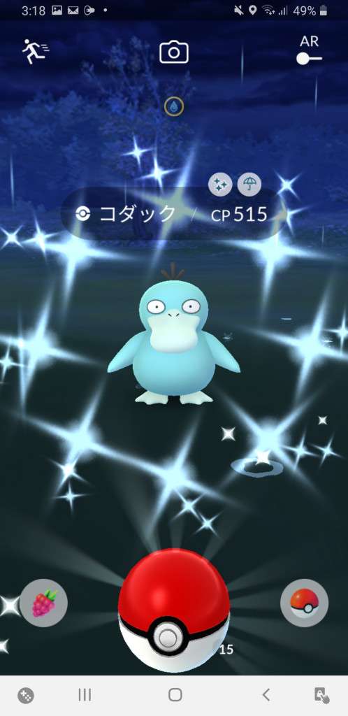 ・色違い出現したら、右上「AR+」のON・OFF切り替えで、タイミング良く写るまで何回も挑戦