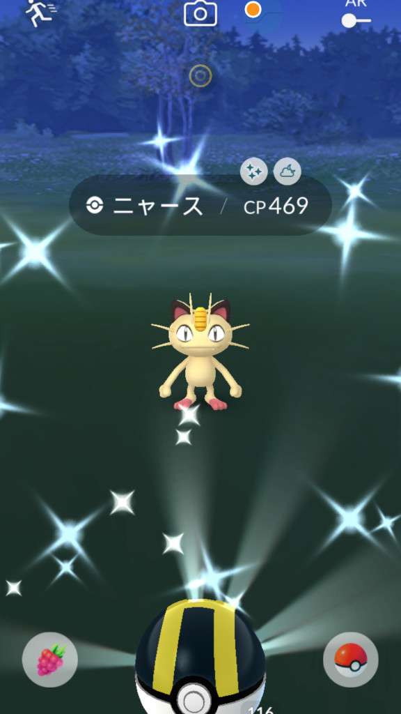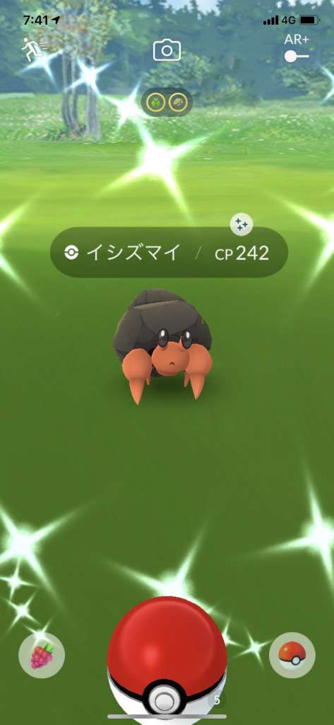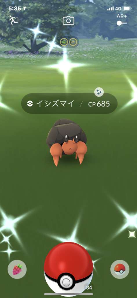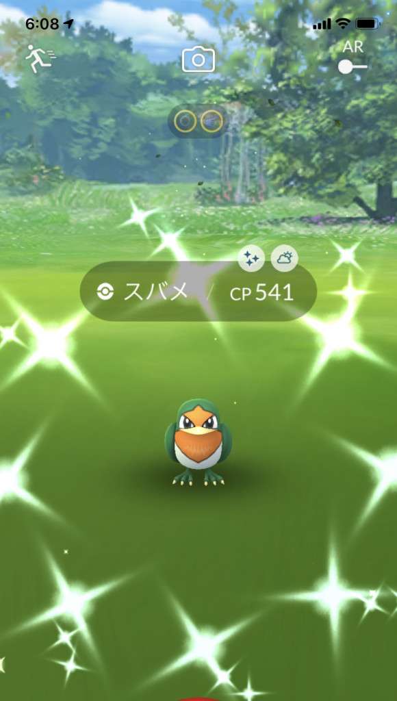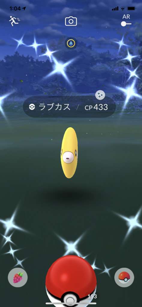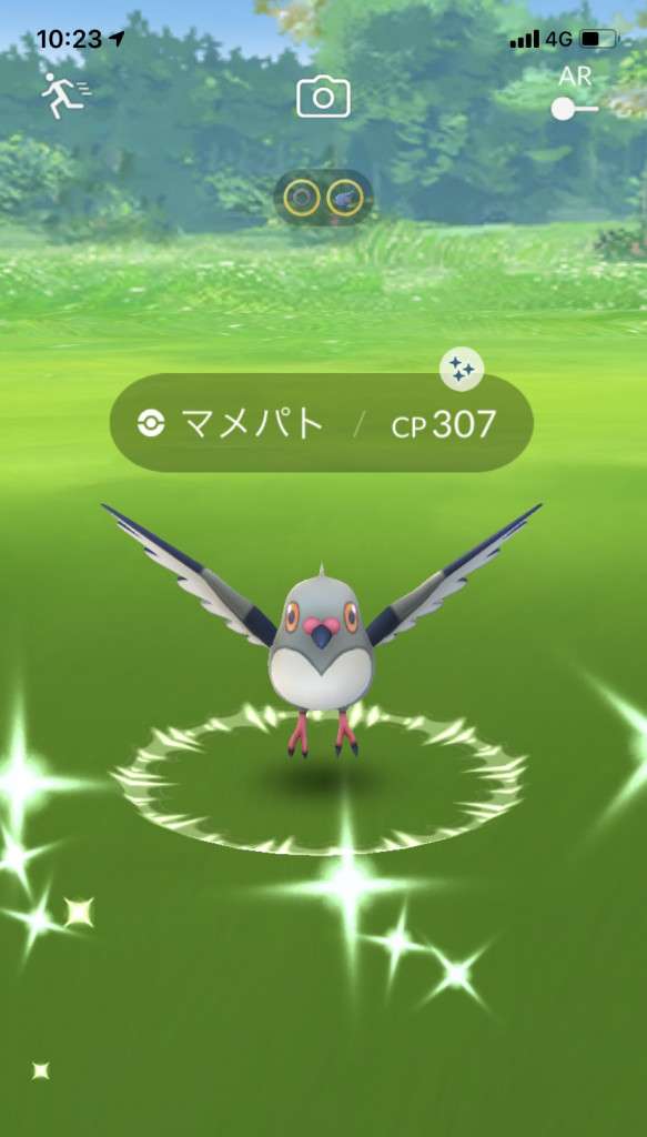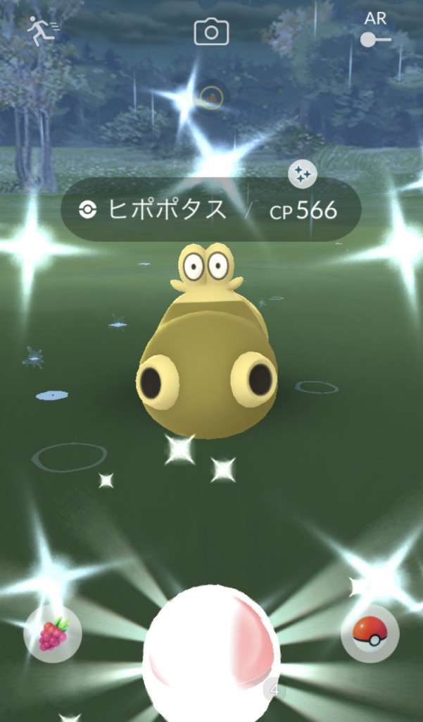 ・色違い出現したら、右上「AR+」のON・OFF切り替えで、タイミング良く写るまで何回も挑戦