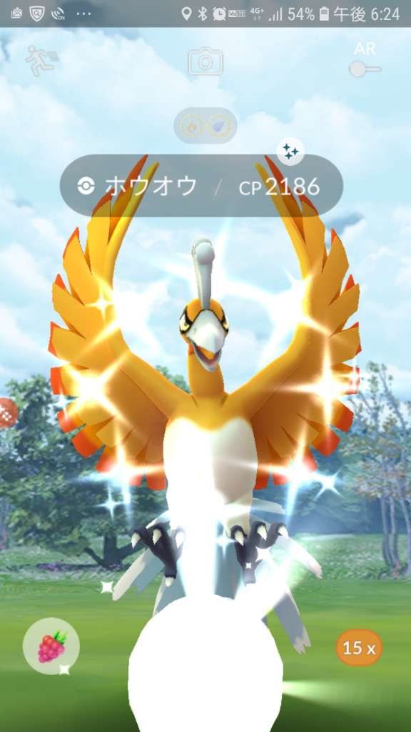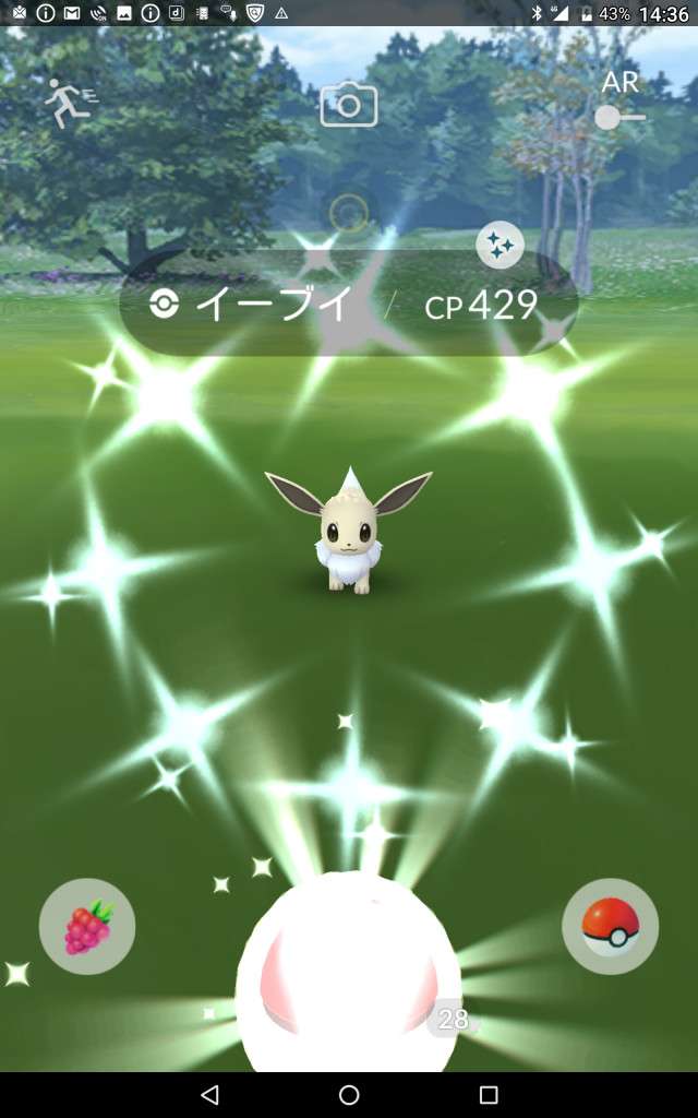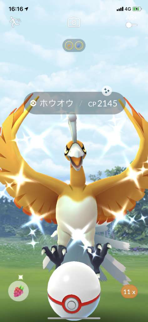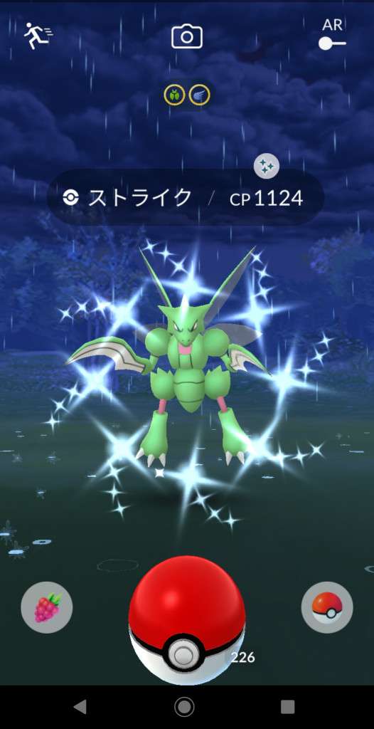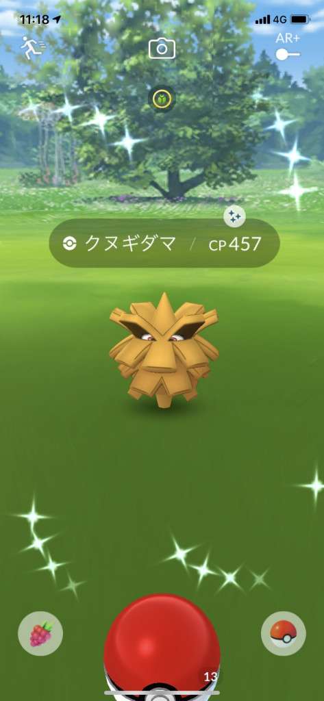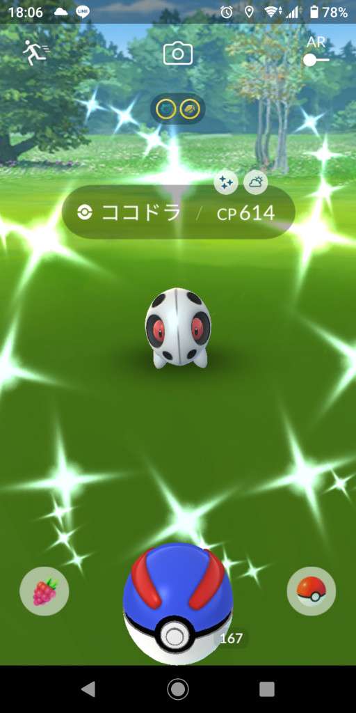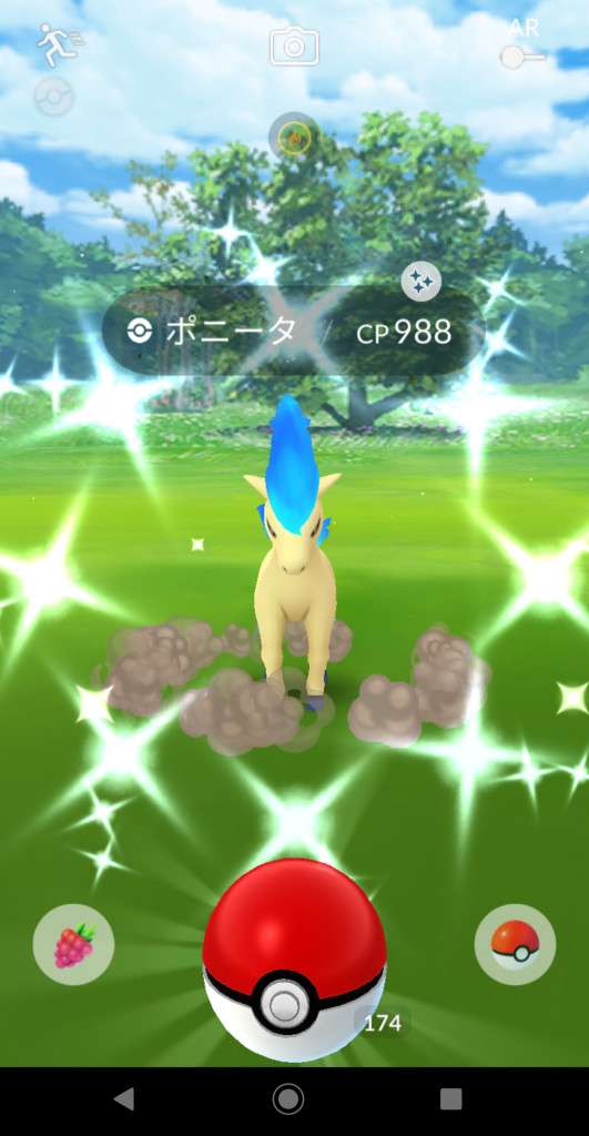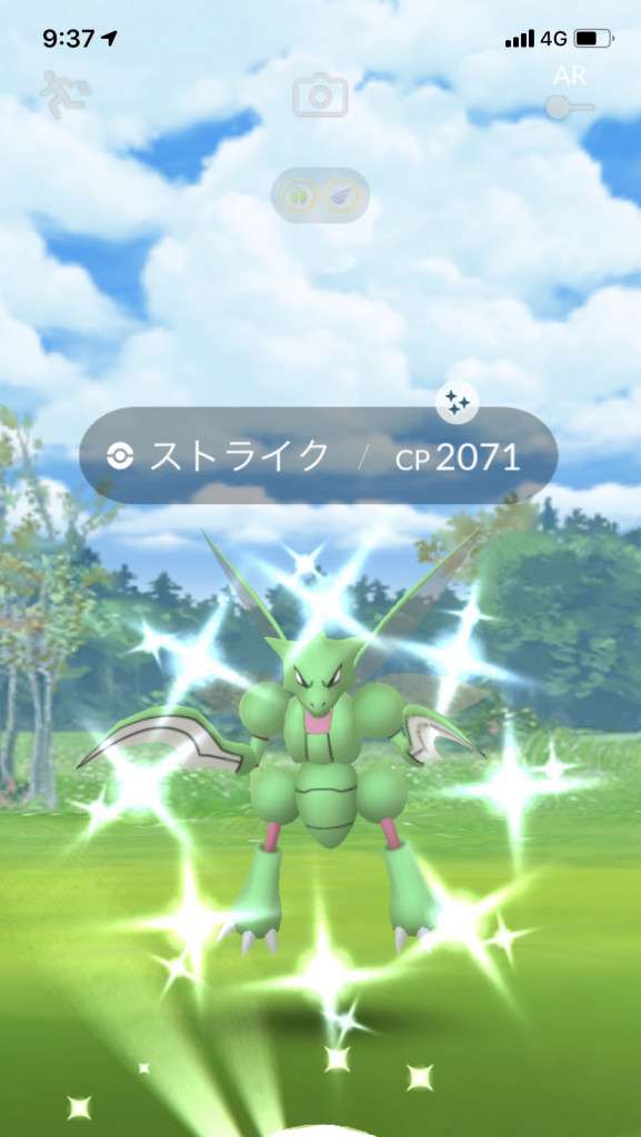 ・色違い出現したら、右上「AR+」のON・OFF切り替えで、タイミング良く写るまで何回も挑戦