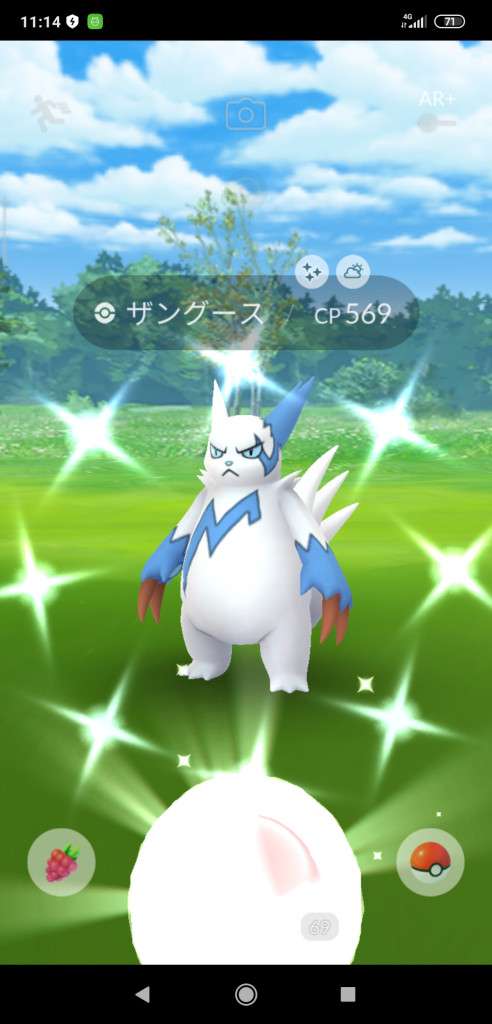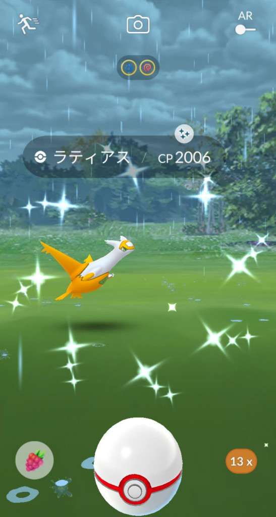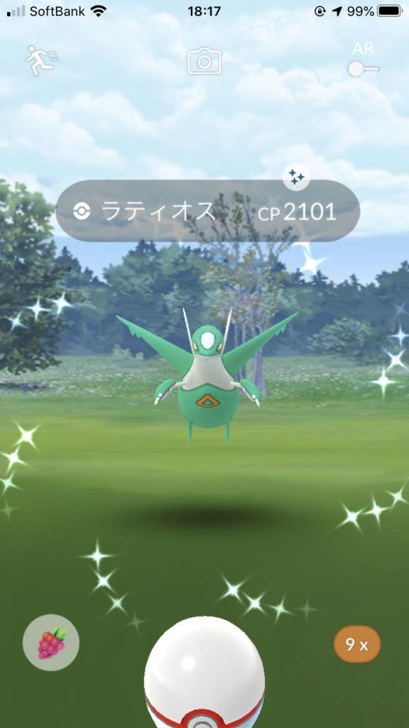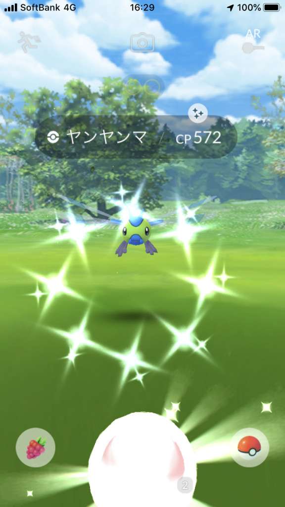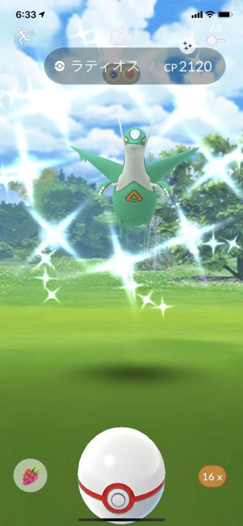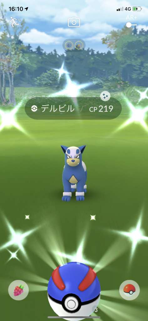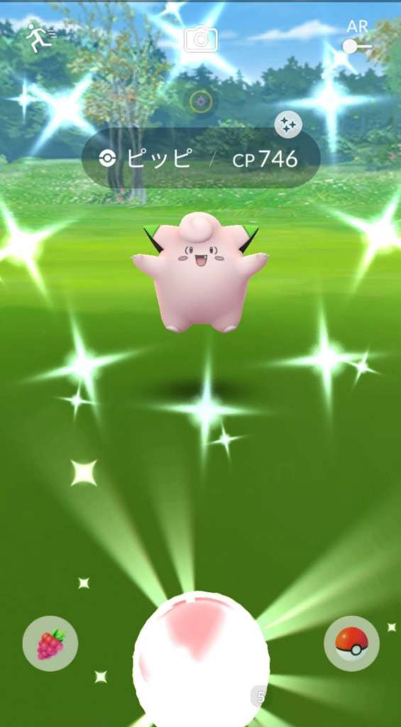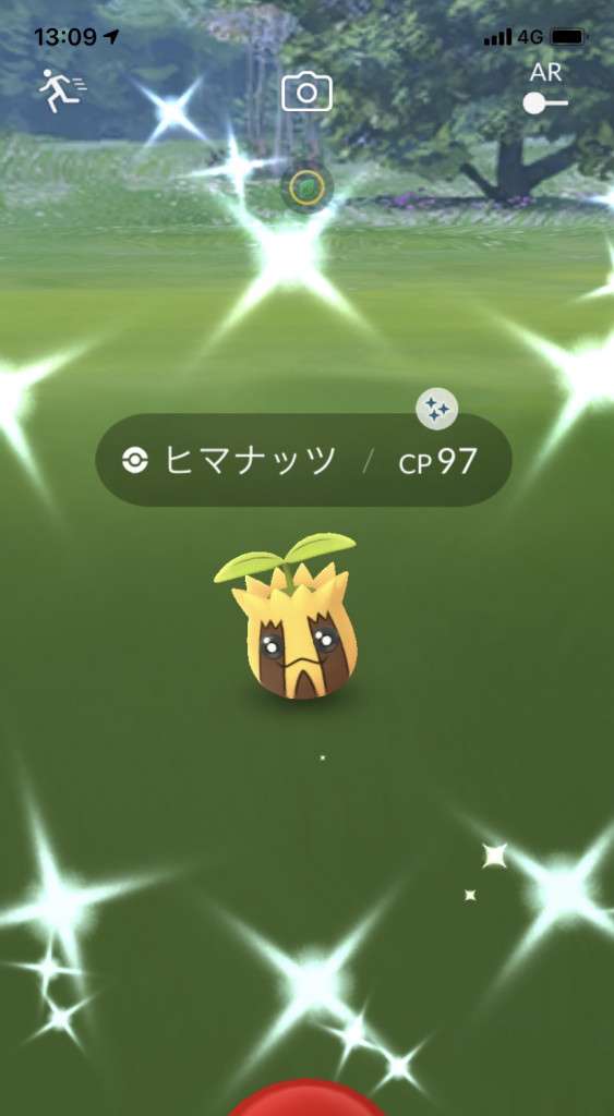 ・色違い出現したら、右上「AR+」のON・OFF切り替えで、タイミング良く写るまで何回も挑戦