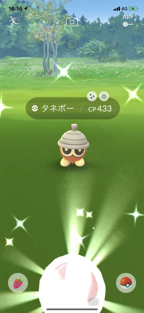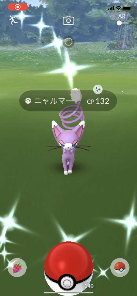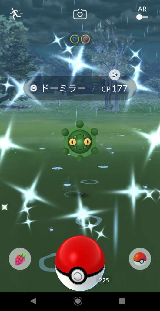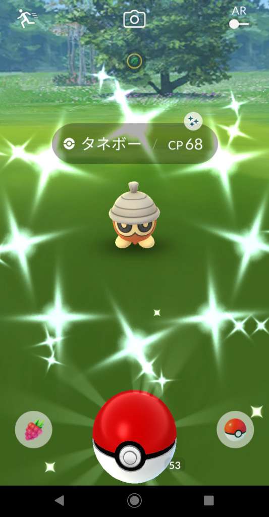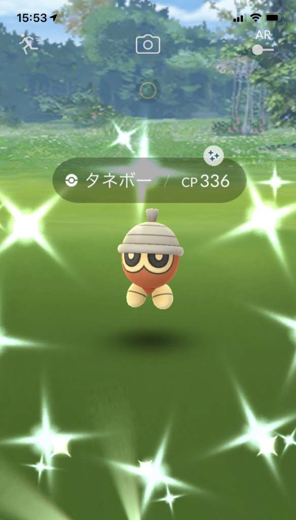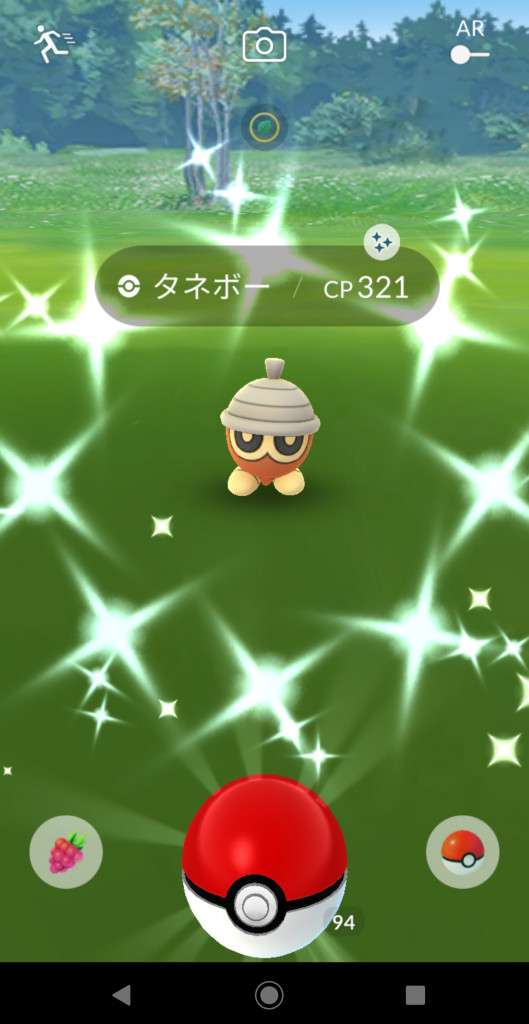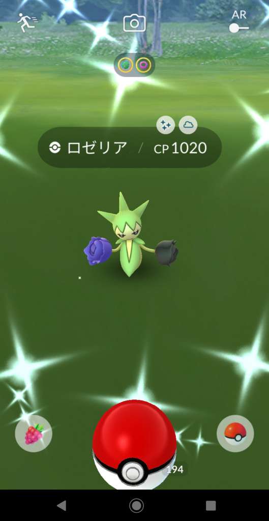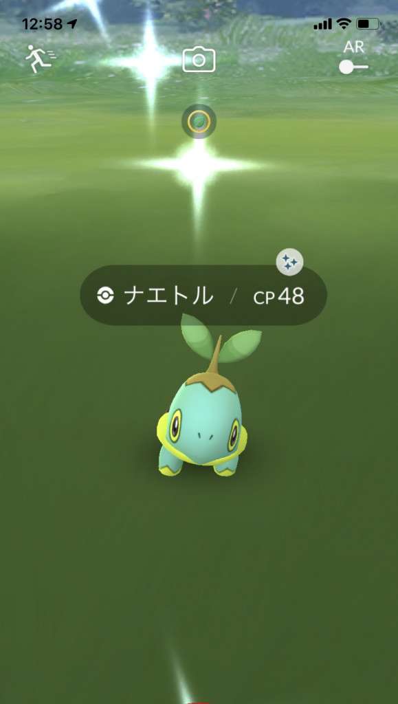 ・色違い出現したら、右上「AR+」のON・OFF切り替えで、タイミング良く写るまで何回も挑戦