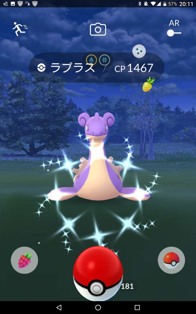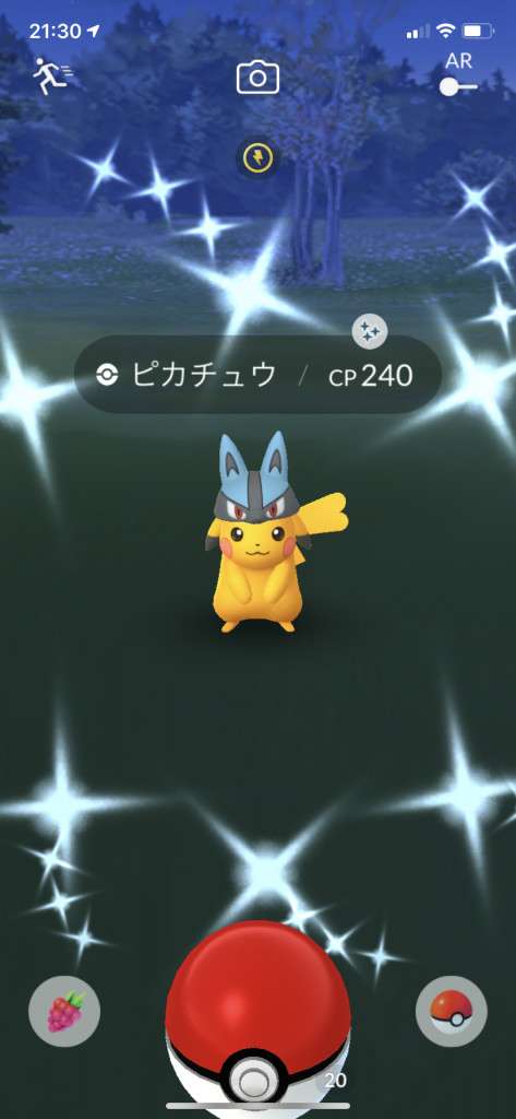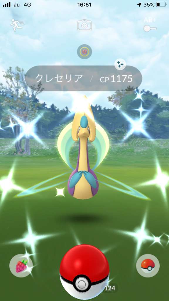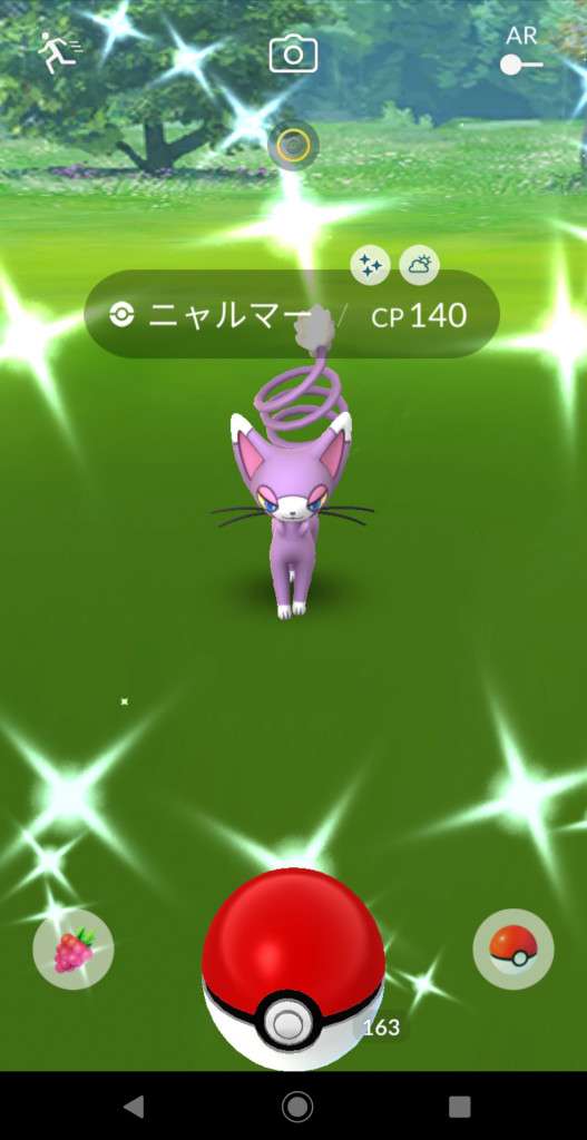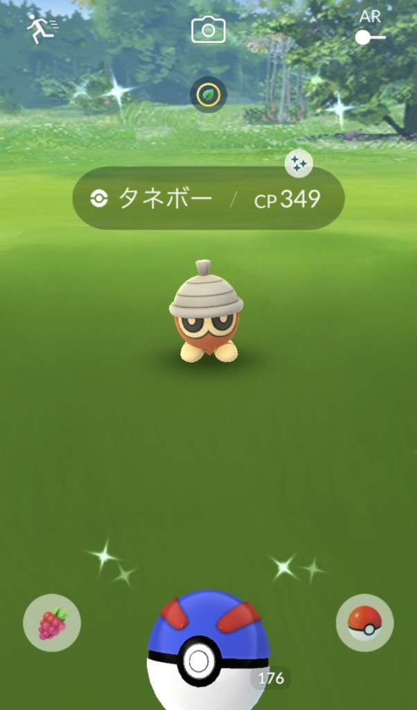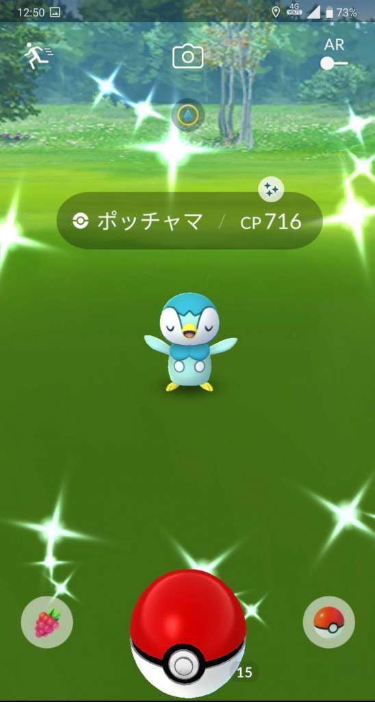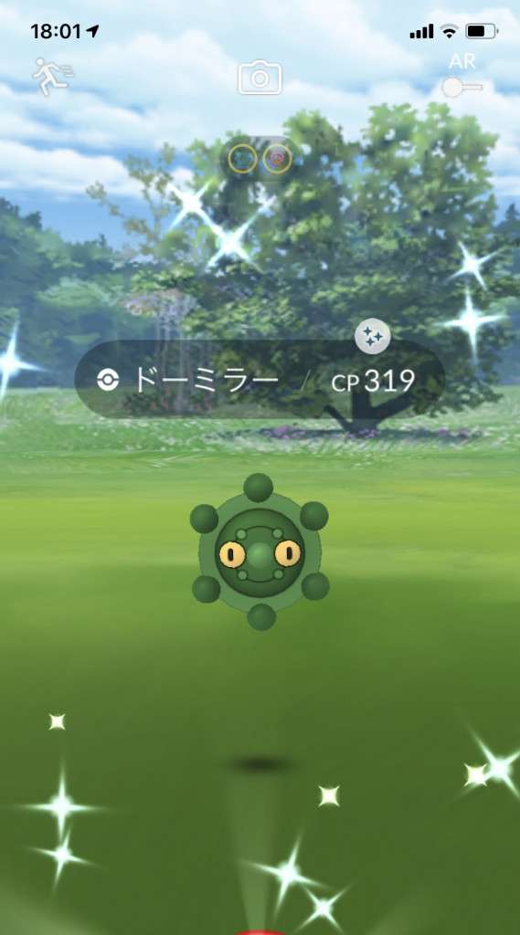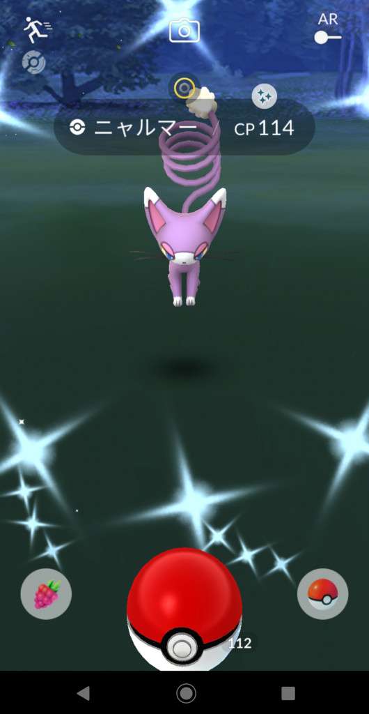・色違い出現したら、右上「AR+」のON・OFF切り替えで、タイミング良く写るまで何回も挑戦