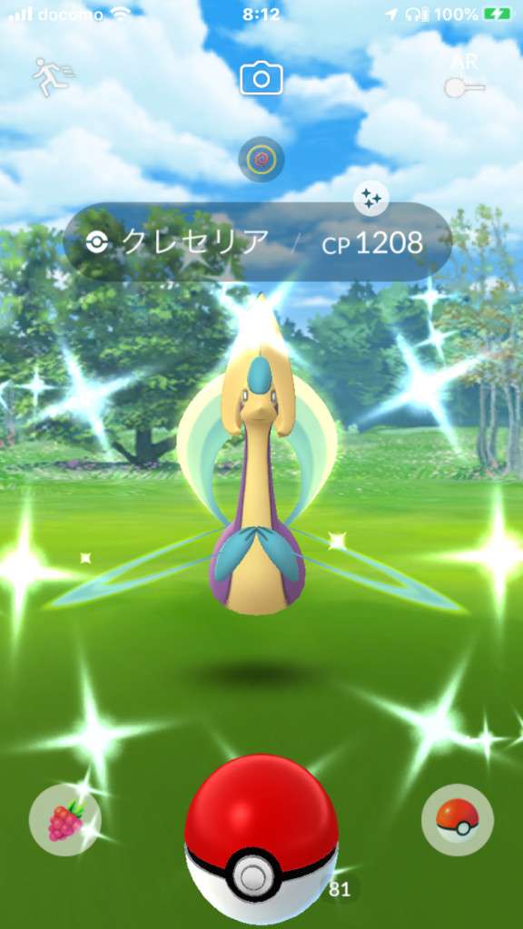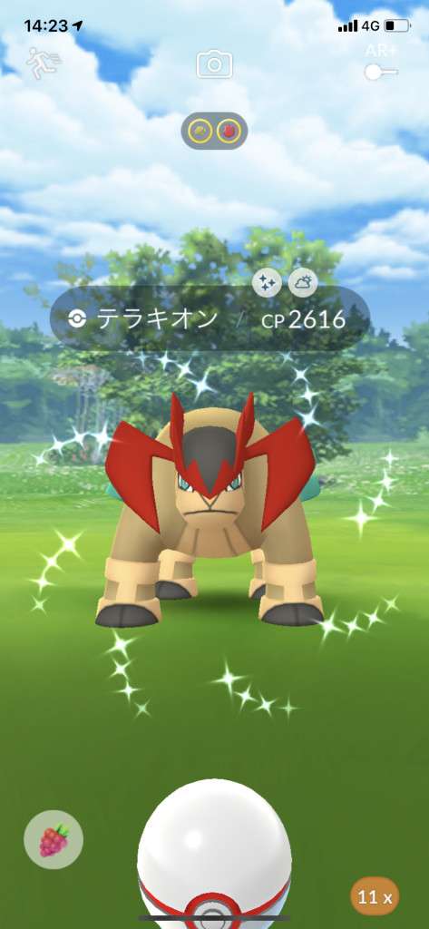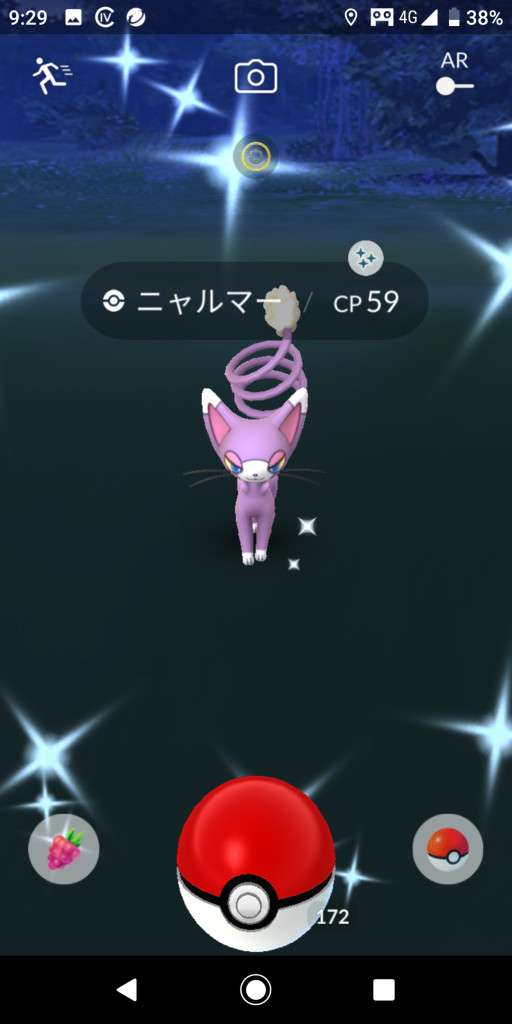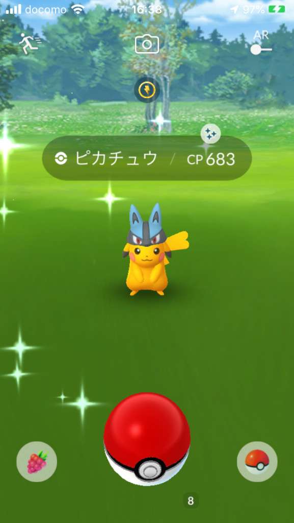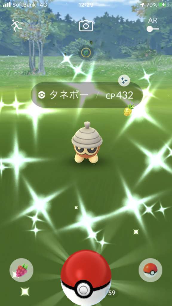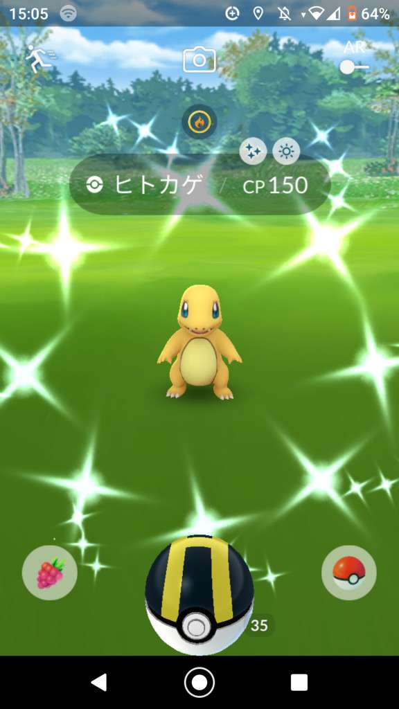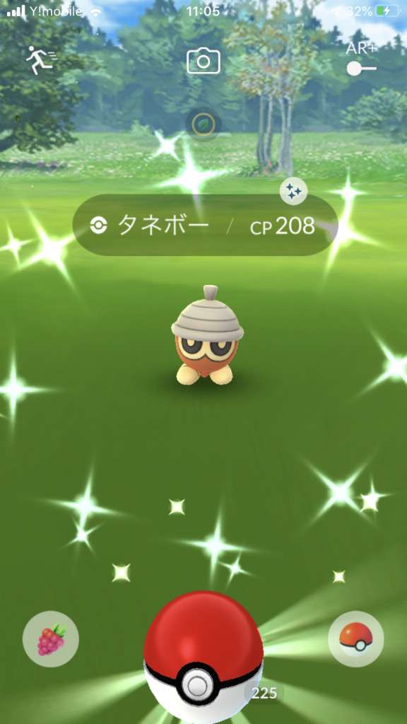 ・色違い出現したら、右上「AR+」のON・OFF切り替えで、タイミング良く写るまで何回も挑戦