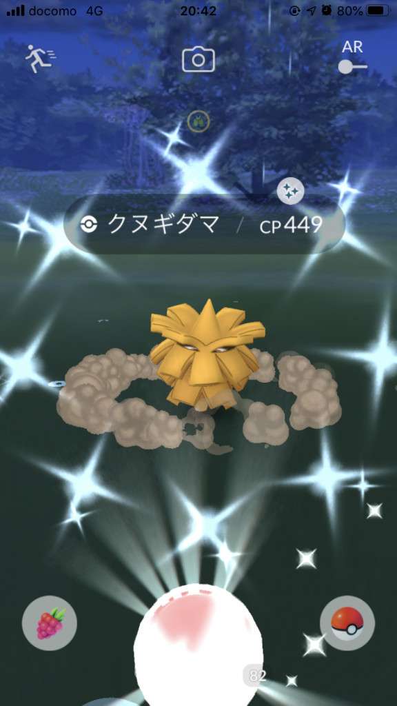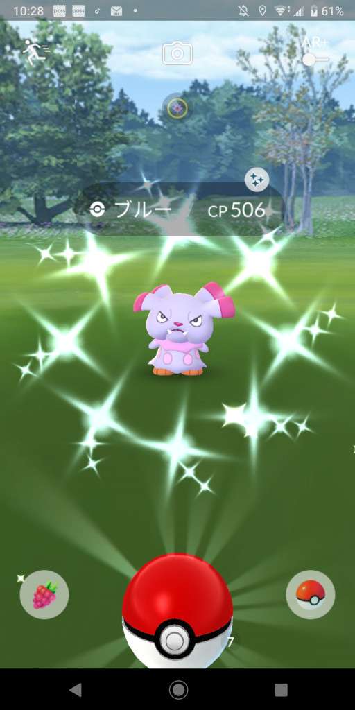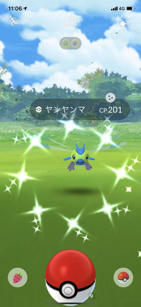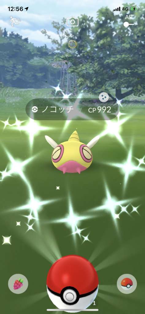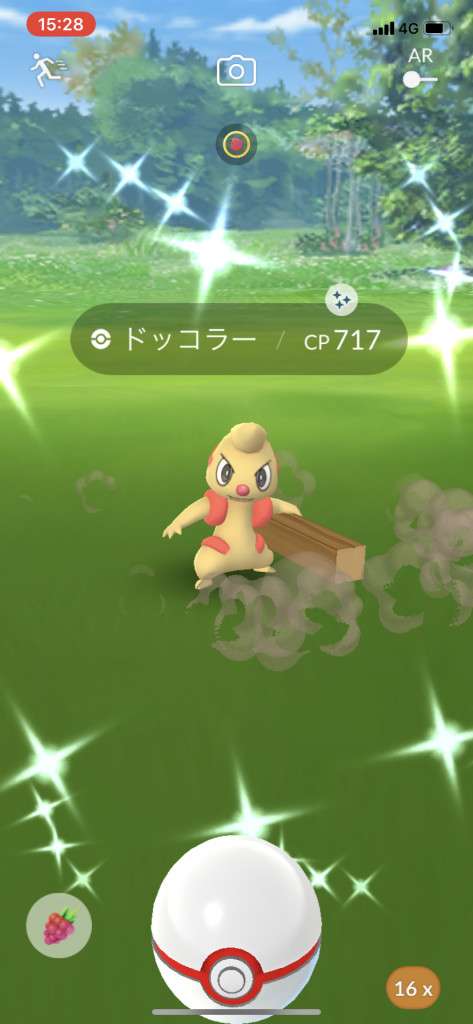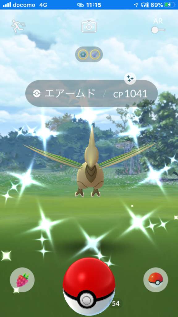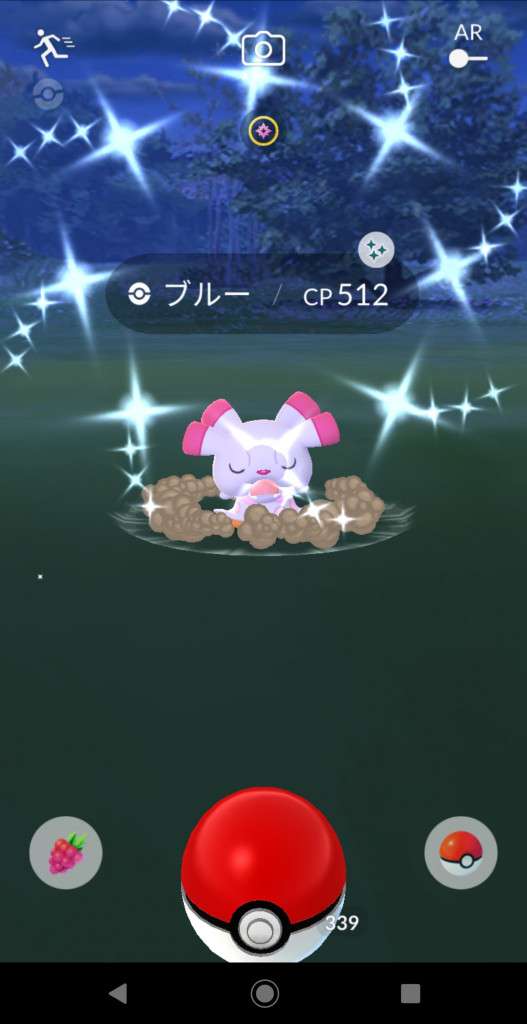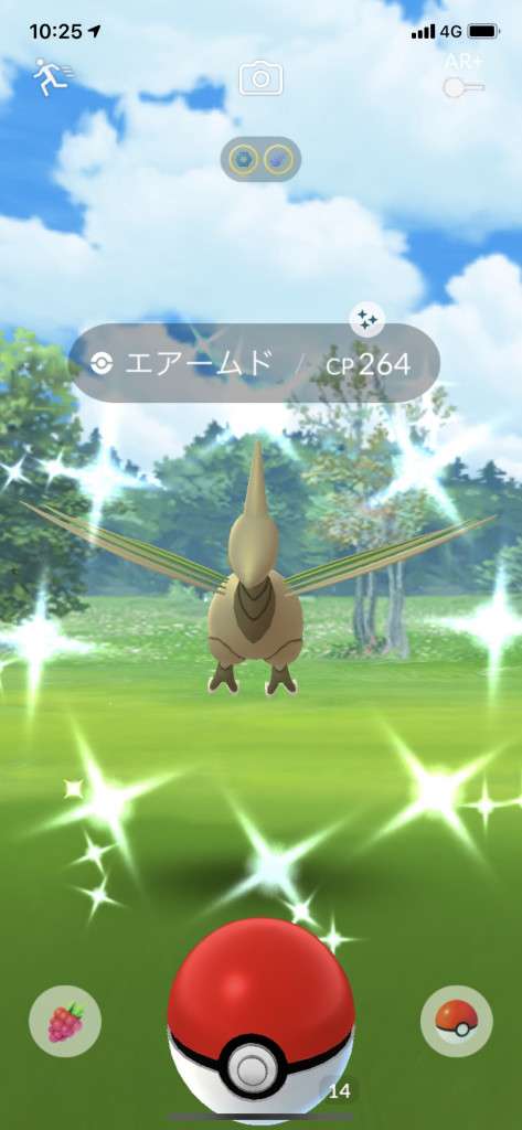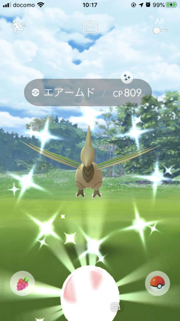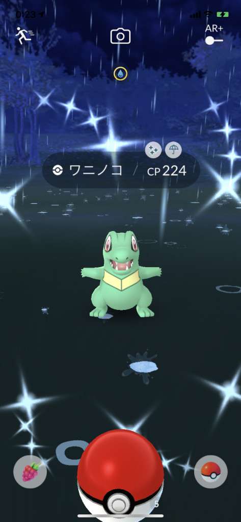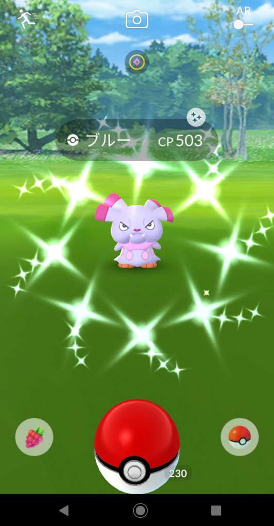 ・色違い出現したら、右上「AR+」のON・OFF切り替えで、タイミング良く写るまで何回も挑戦