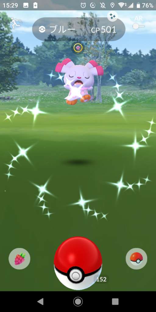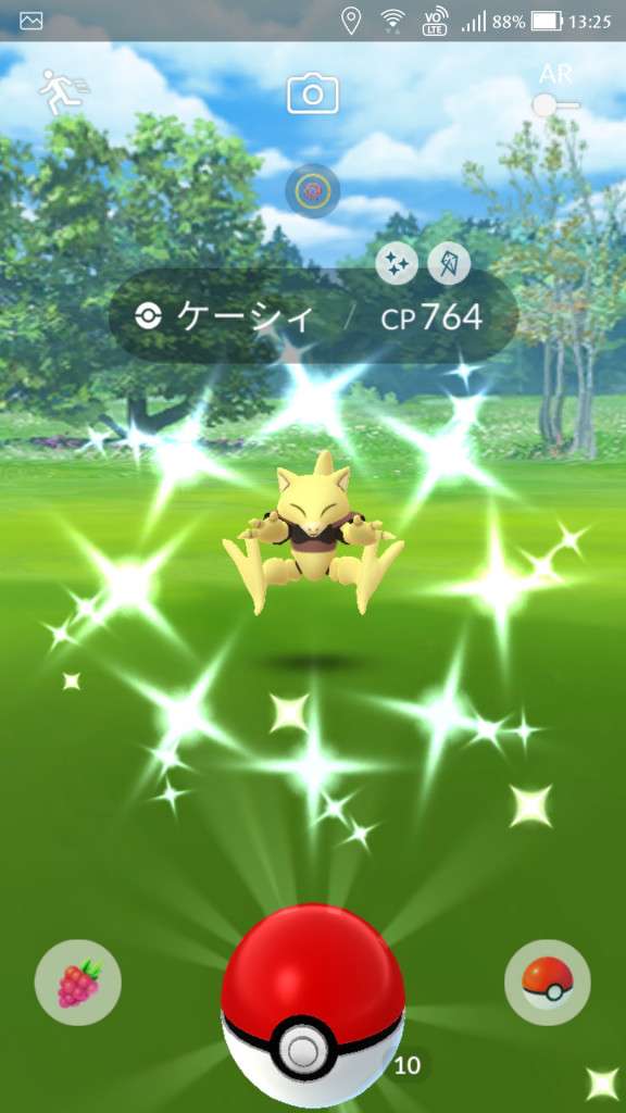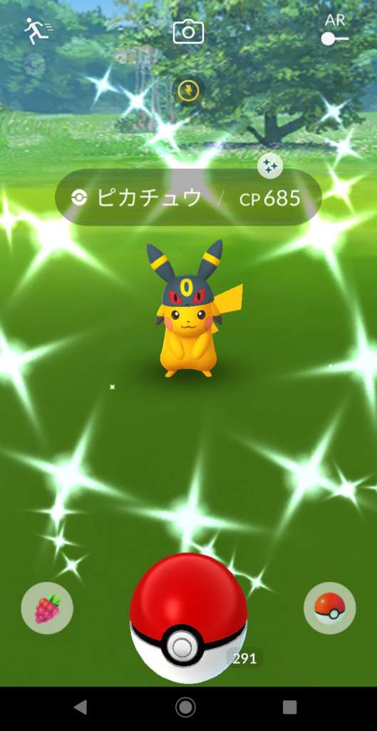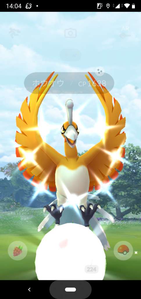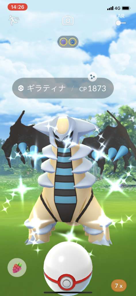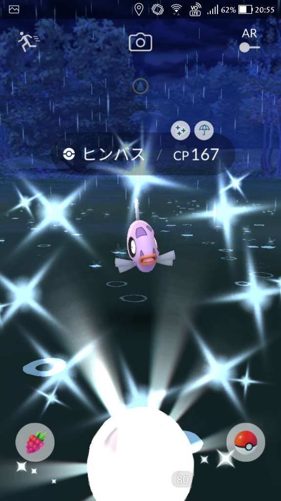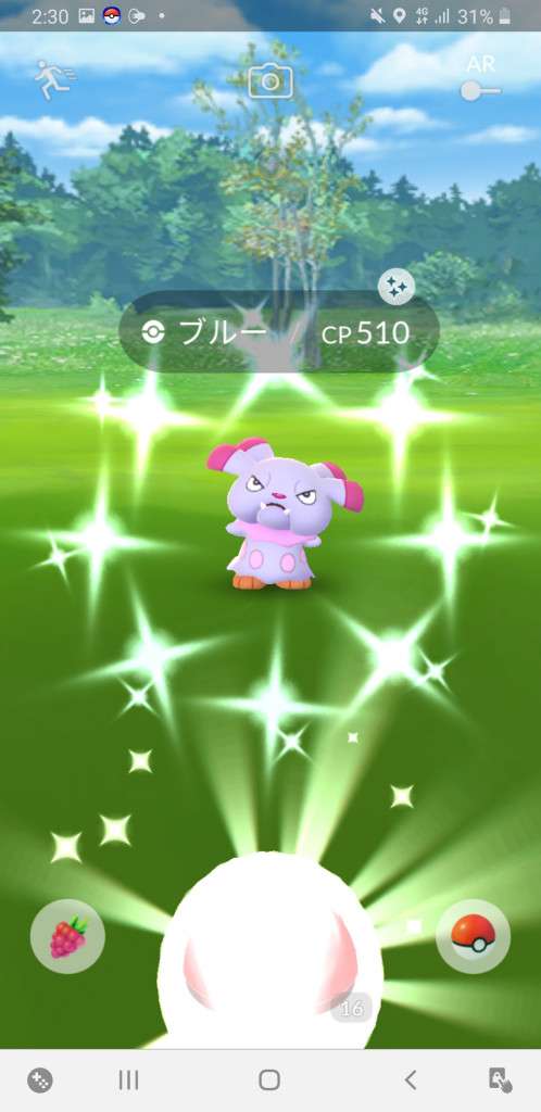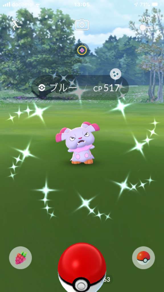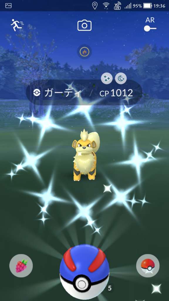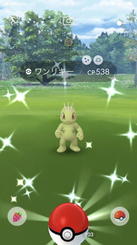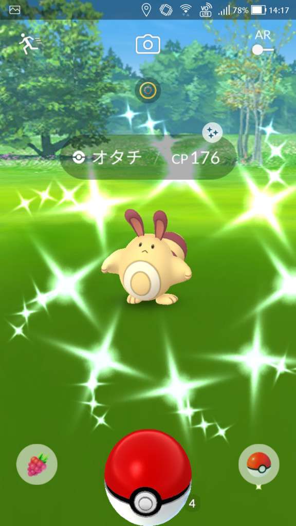 ・色違い出現したら、右上「AR+」のON・OFF切り替えで、タイミング良く写るまで何回も挑戦