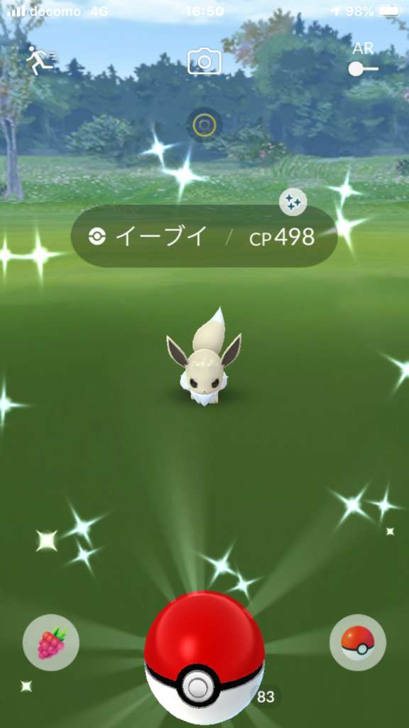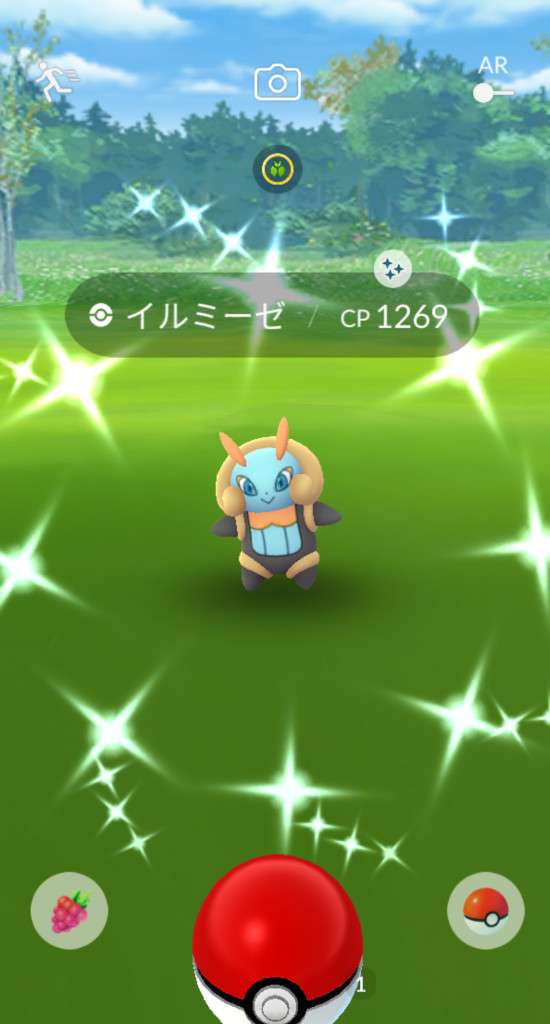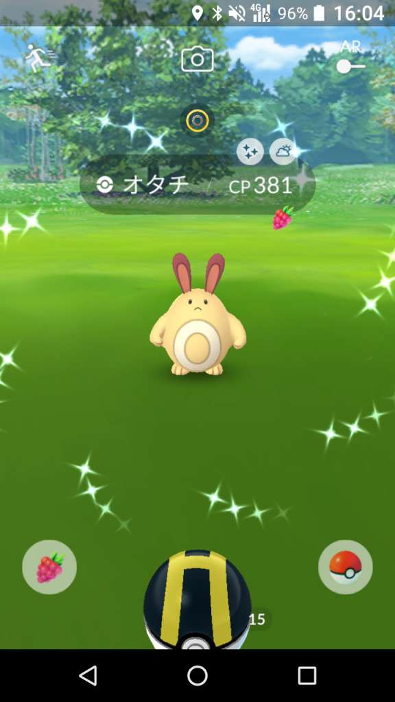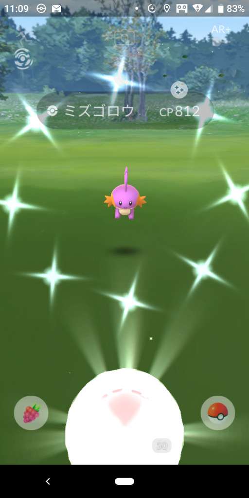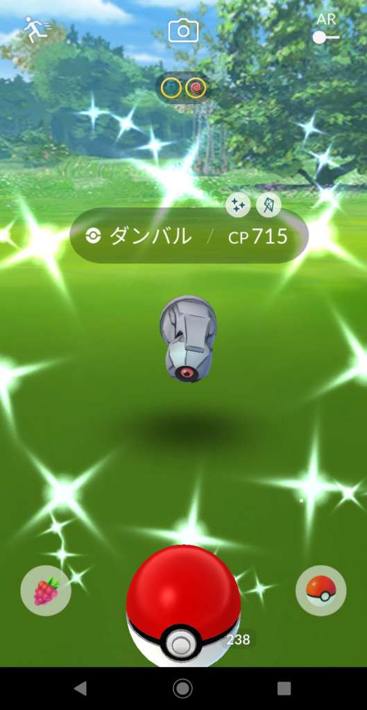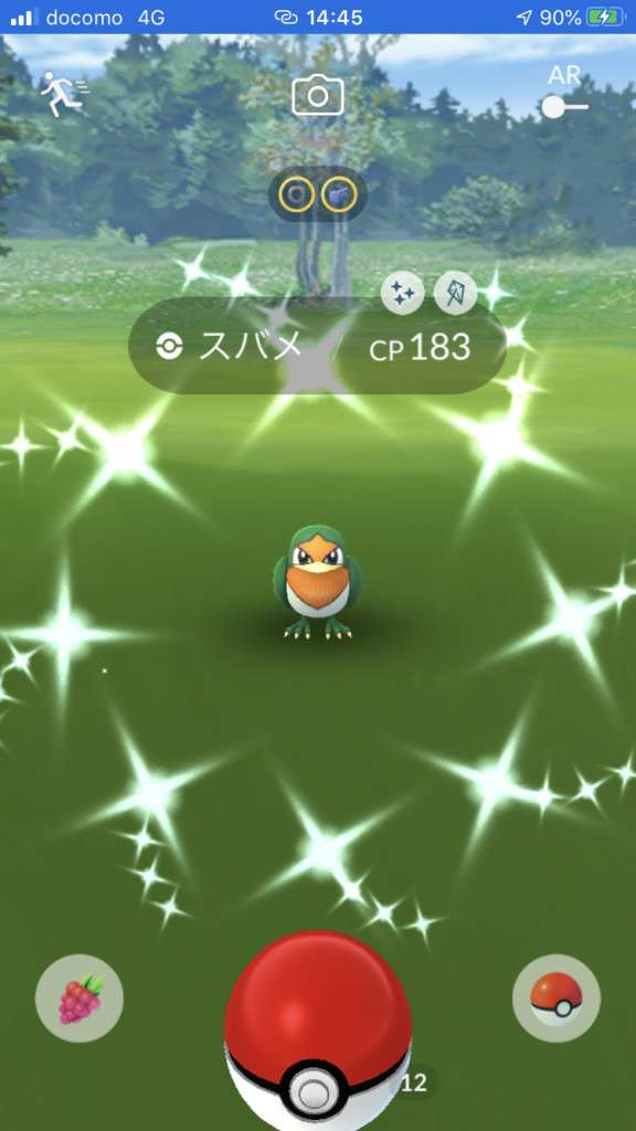 ・色違い出現したら、右上「AR+」のON・OFF切り替えで、タイミング良く写るまで何回も挑戦