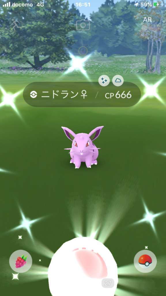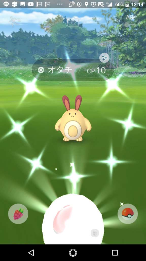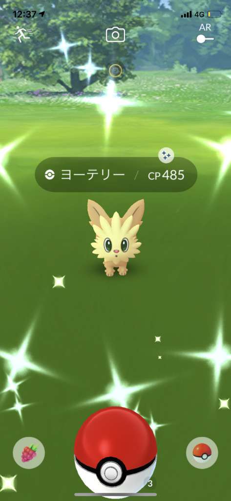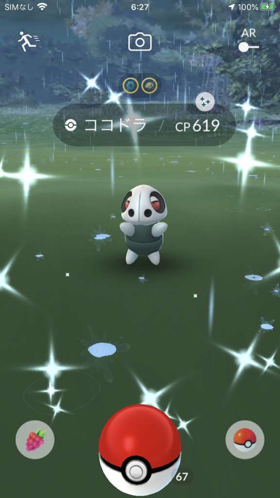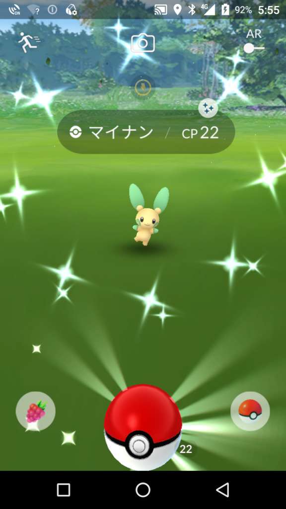 ・色違い出現したら、右上「AR+」のON・OFF切り替えで、タイミング良く写るまで何回も挑戦